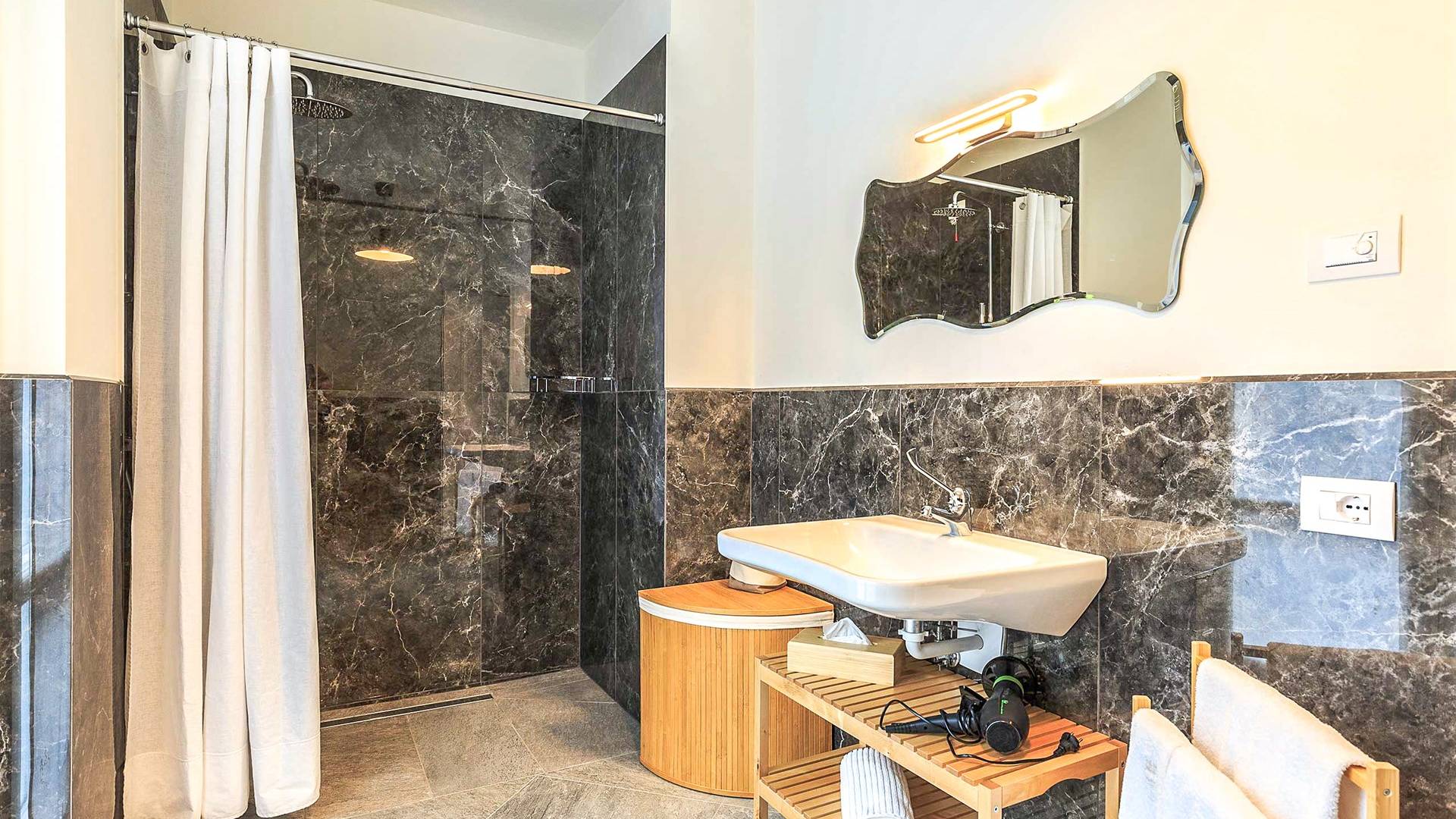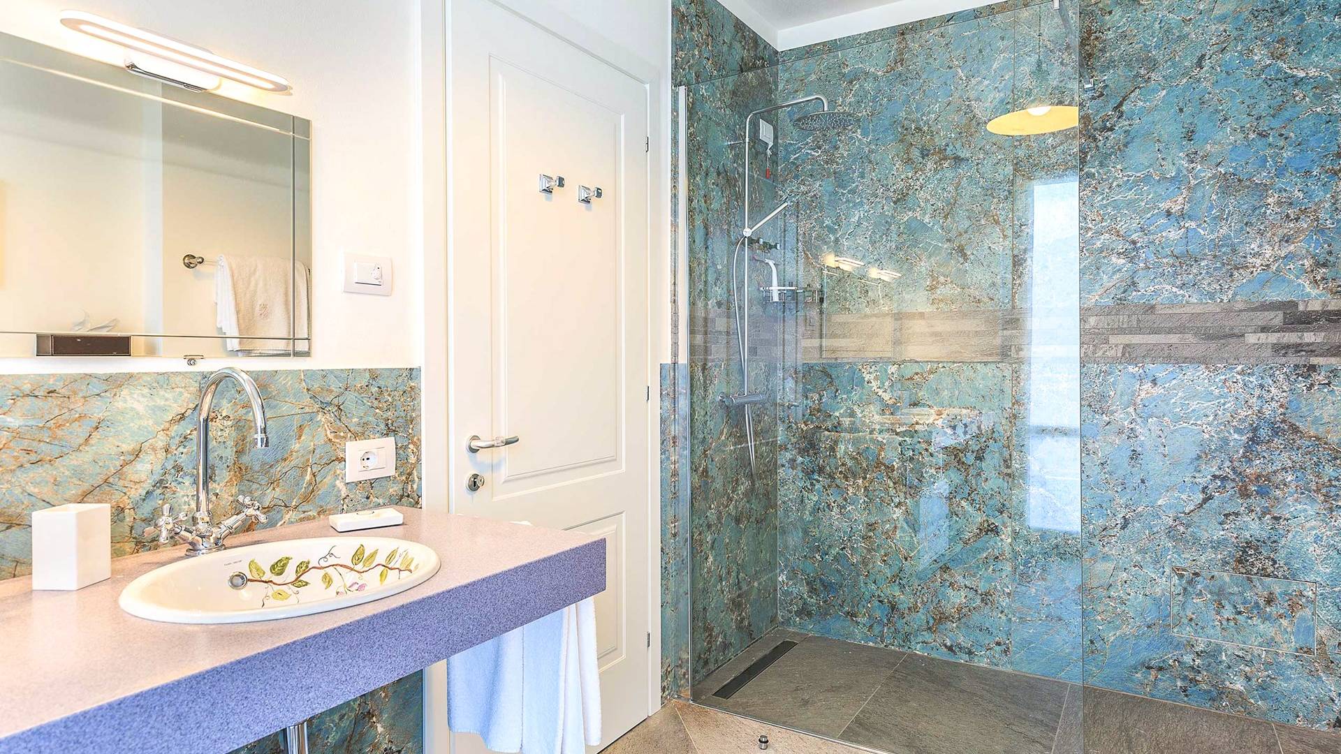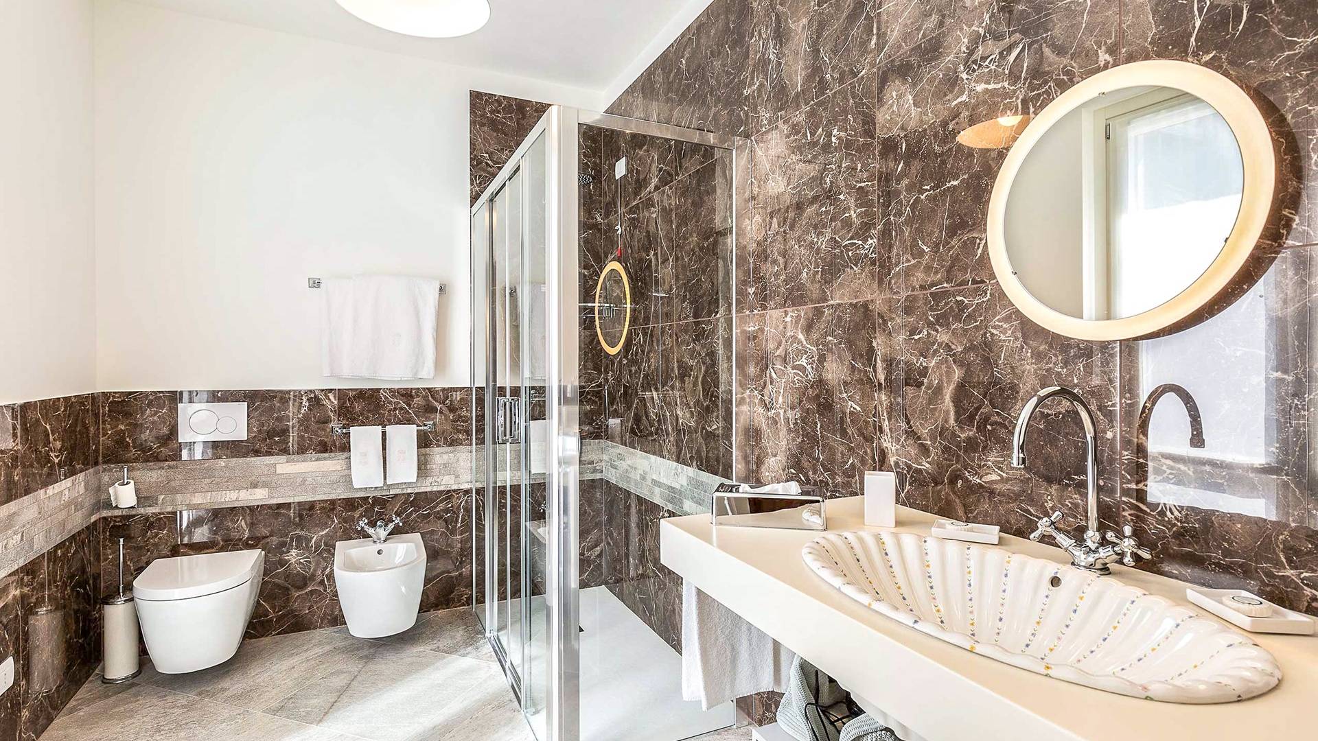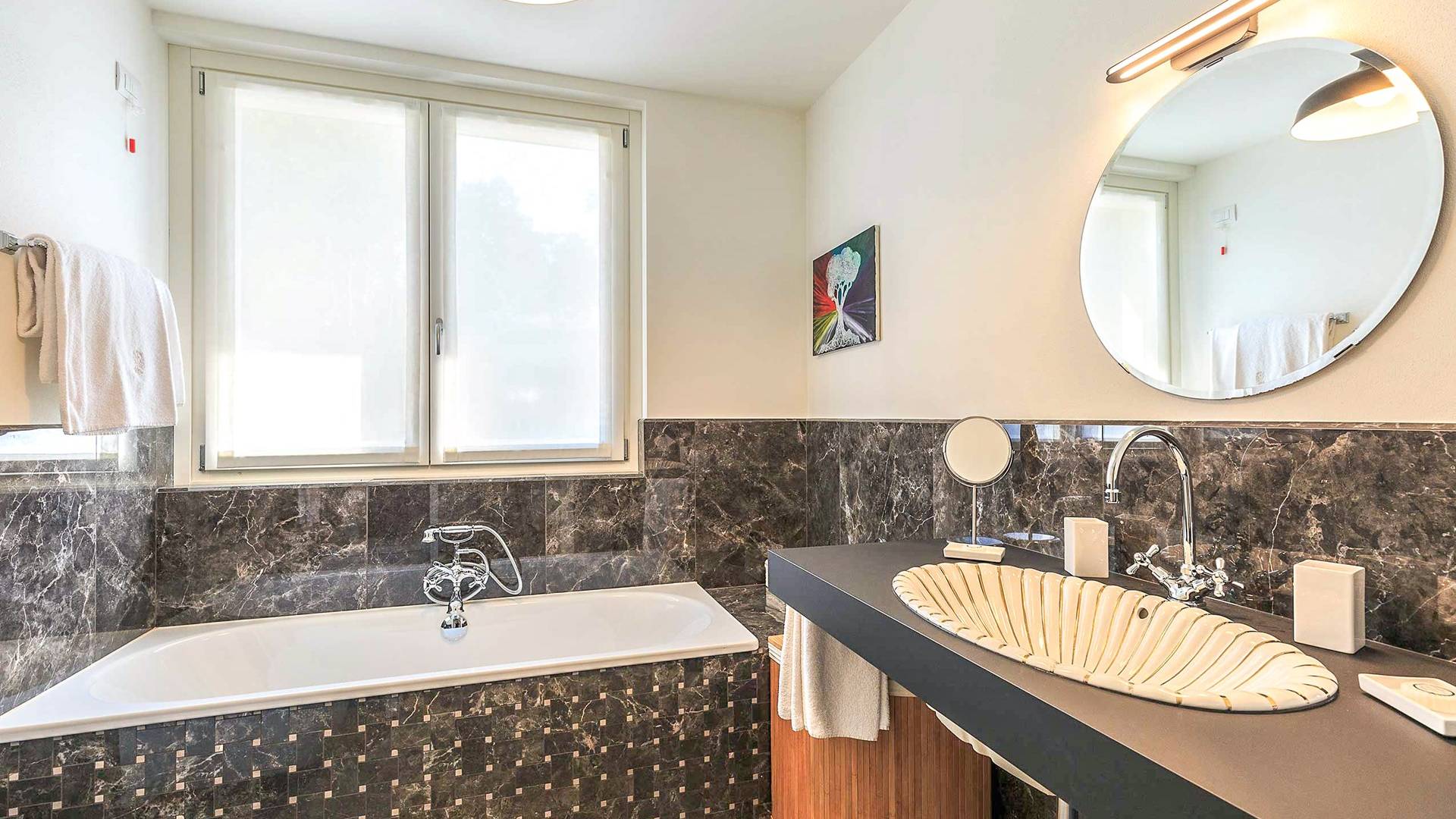 La Villa Angelina peut accueillir 12 + 2 personnes dans 6 chambres doubles avec 6 salles de bain privées et une chambre supplémentaire pour le personnel avec une salle de bain dédiée. La villa avec son intérieur spacieux est la maison de vacances idéale pour les grandes fêtes, composée de deux étages (250 m² chacun) et d'un sous-sol (200 m²) avec buanderie