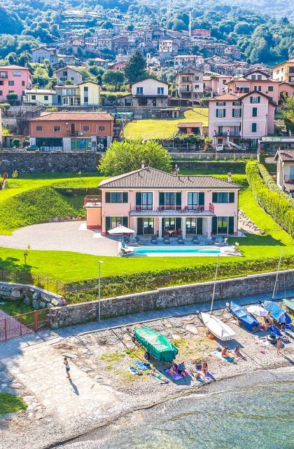 La Villa Angelina est située directement sur la rive du lac, à quelques mètres d'une plage publique de galets. Dans le grand jardin privé (2500 m²) il y a une piscine, chauffée de mi-mai à mi-septembre (pendant les autres saisons, elle peut être chauffée moyennant un supplément).
