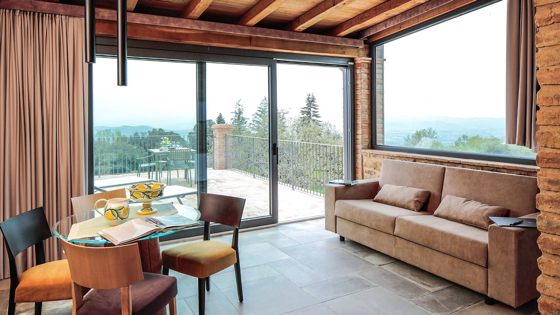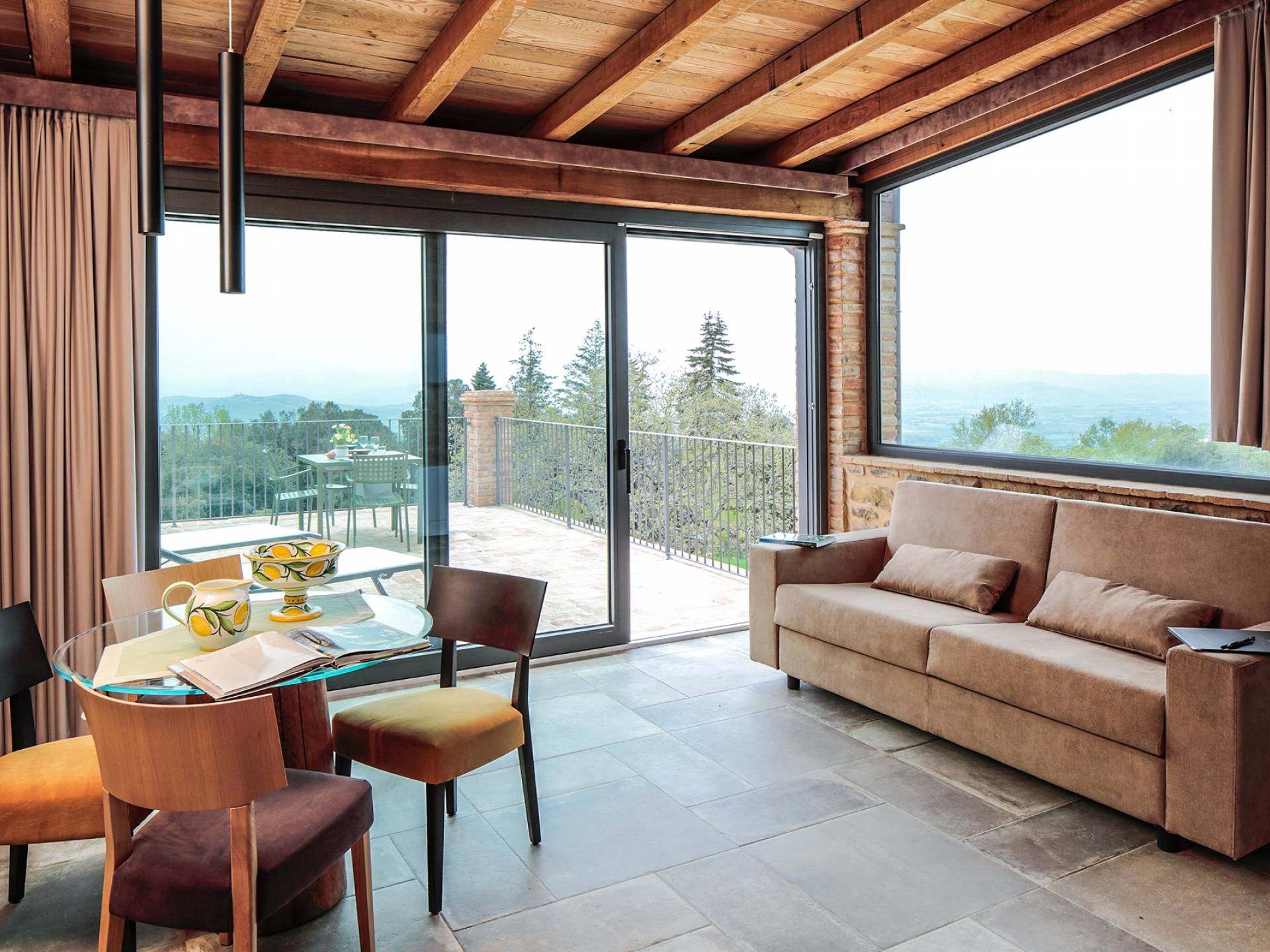 Chaque pièce de la maison a été conçue dans le but d'offrir des paysages inattendus, où le sentiment de bien-être, de calme et d'intimité est exalté tout en exprimant l'histoire fascinante dont la structure tire son nom. De petits aperçus de la beauté typique de l'Ombrie, du vert de la forêt aux couleurs douces des villages voisins aux collines lointaines d'où il est même possible d'apercevoir le lac Trasimène. En outre, la piscine exclusive où vous pourrez profiter de moments de détente absolue immergés dans le calme total de la nature.