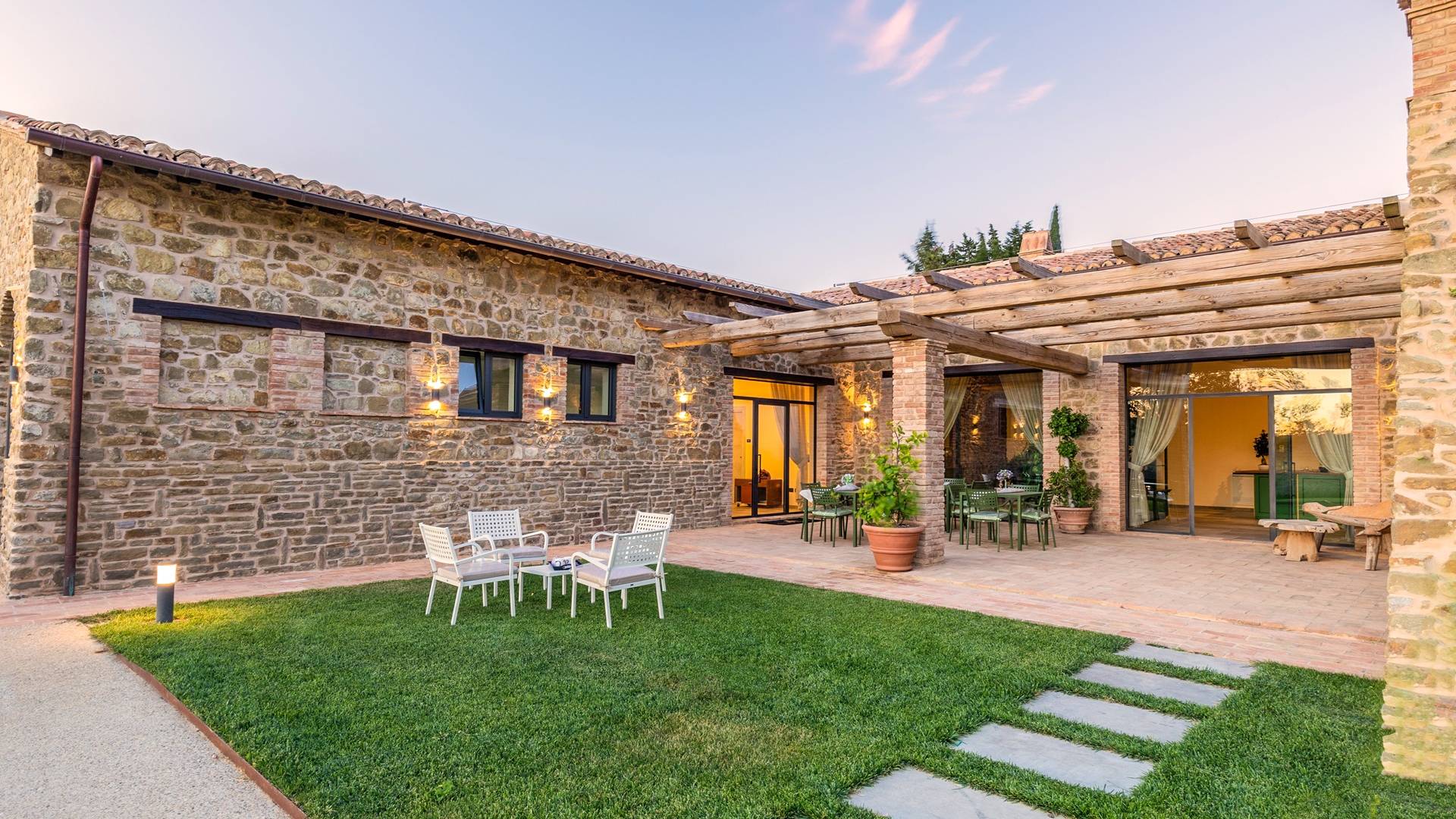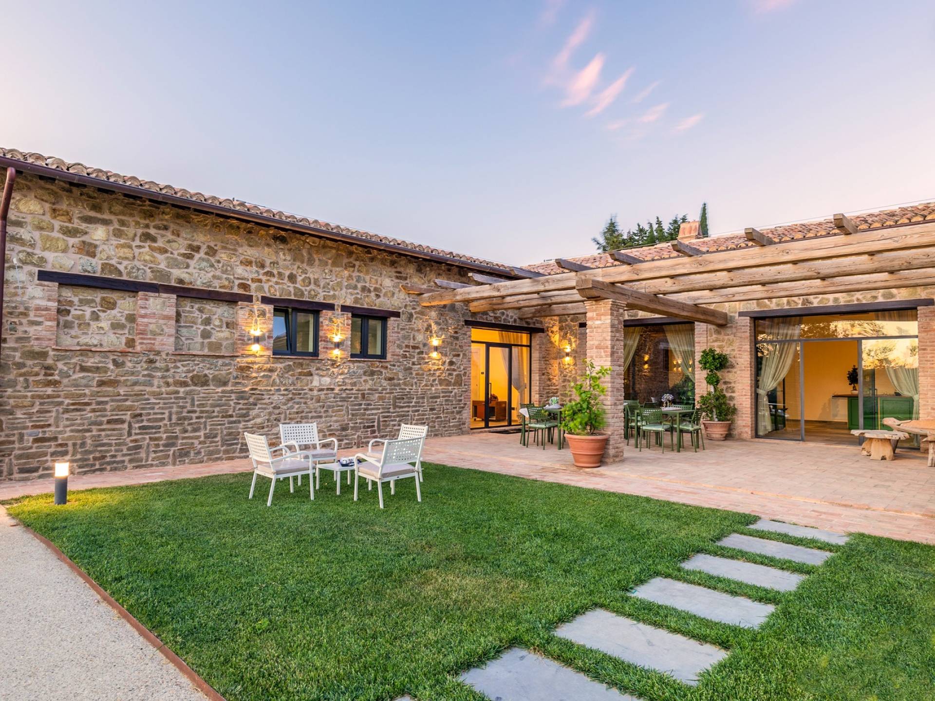L'histoire raconte que les anciens habitants de la ville de Pérouse ont fui vers ces régions après le siège et la destruction de leur ville par Octave. Les espaces intérieurs de la maison sont enrichis par des plafonds en poutres de châtaignier, de grandes pièces à vivre avec des cuisines parfaitement équipées, des ouvertures lumineuses surplombant, et même de confortables porches extérieurs. Dans le grand jardin, il y a aussi une piscine confortable avec plusieurs zones de bronzage.