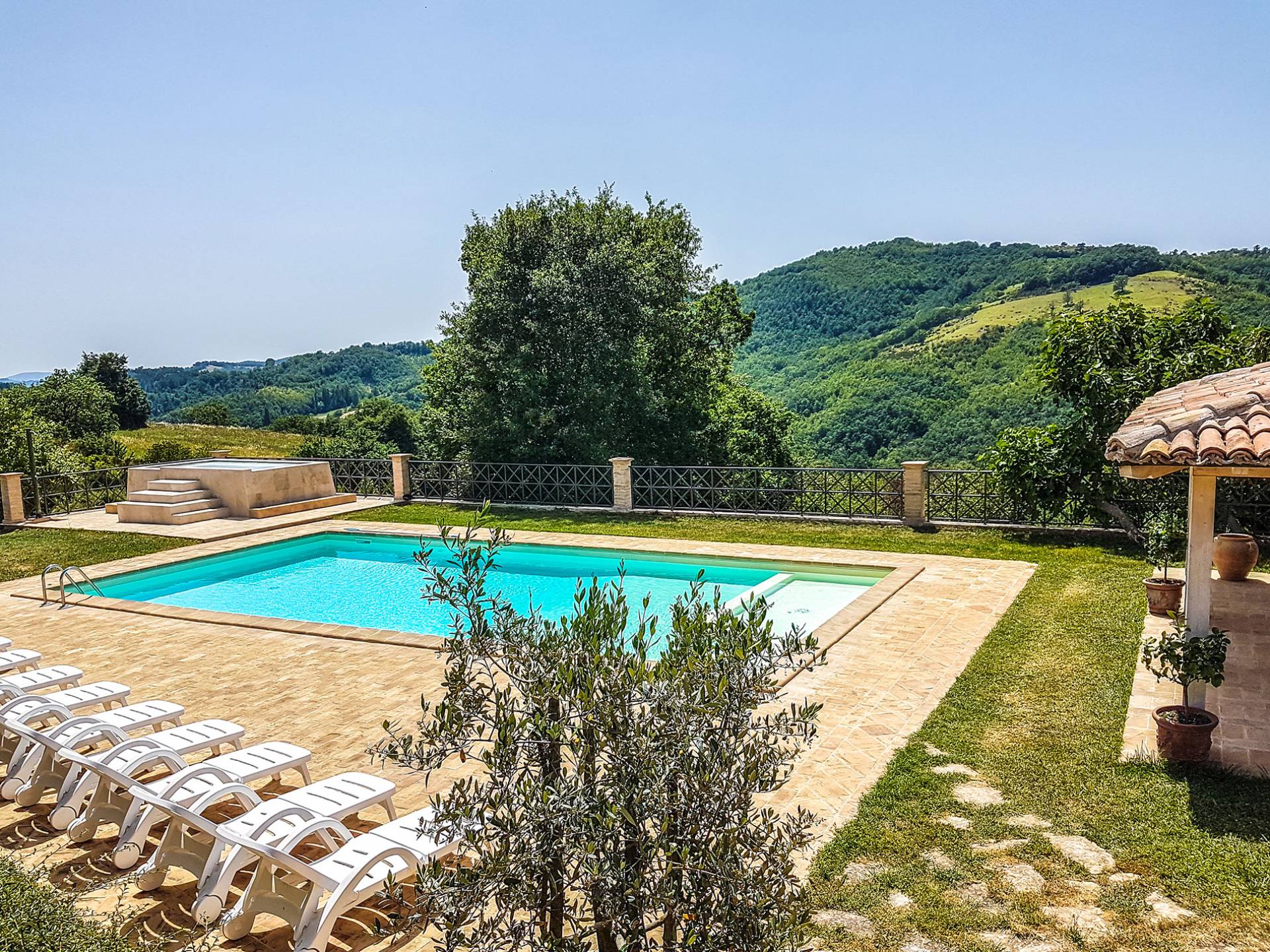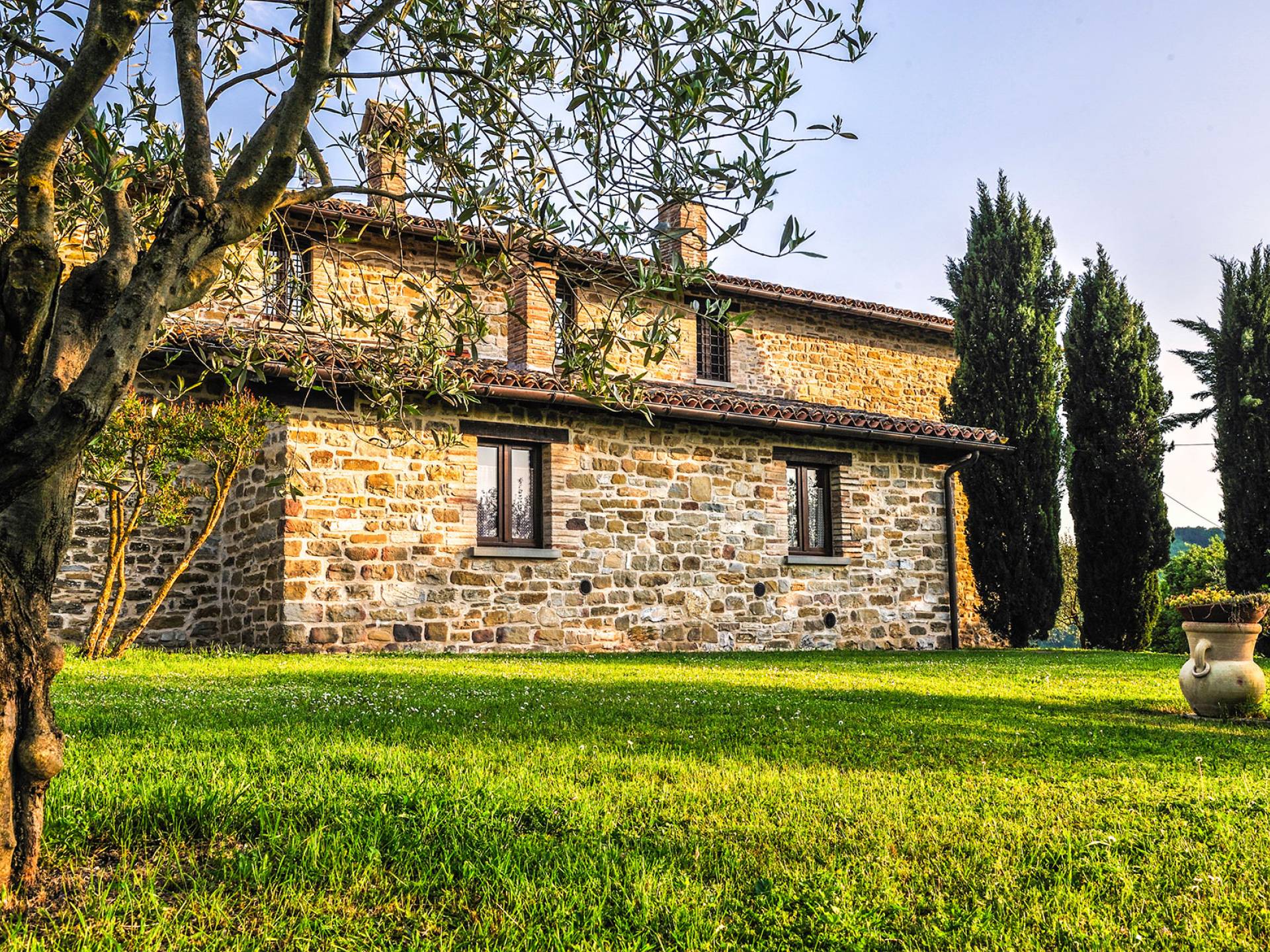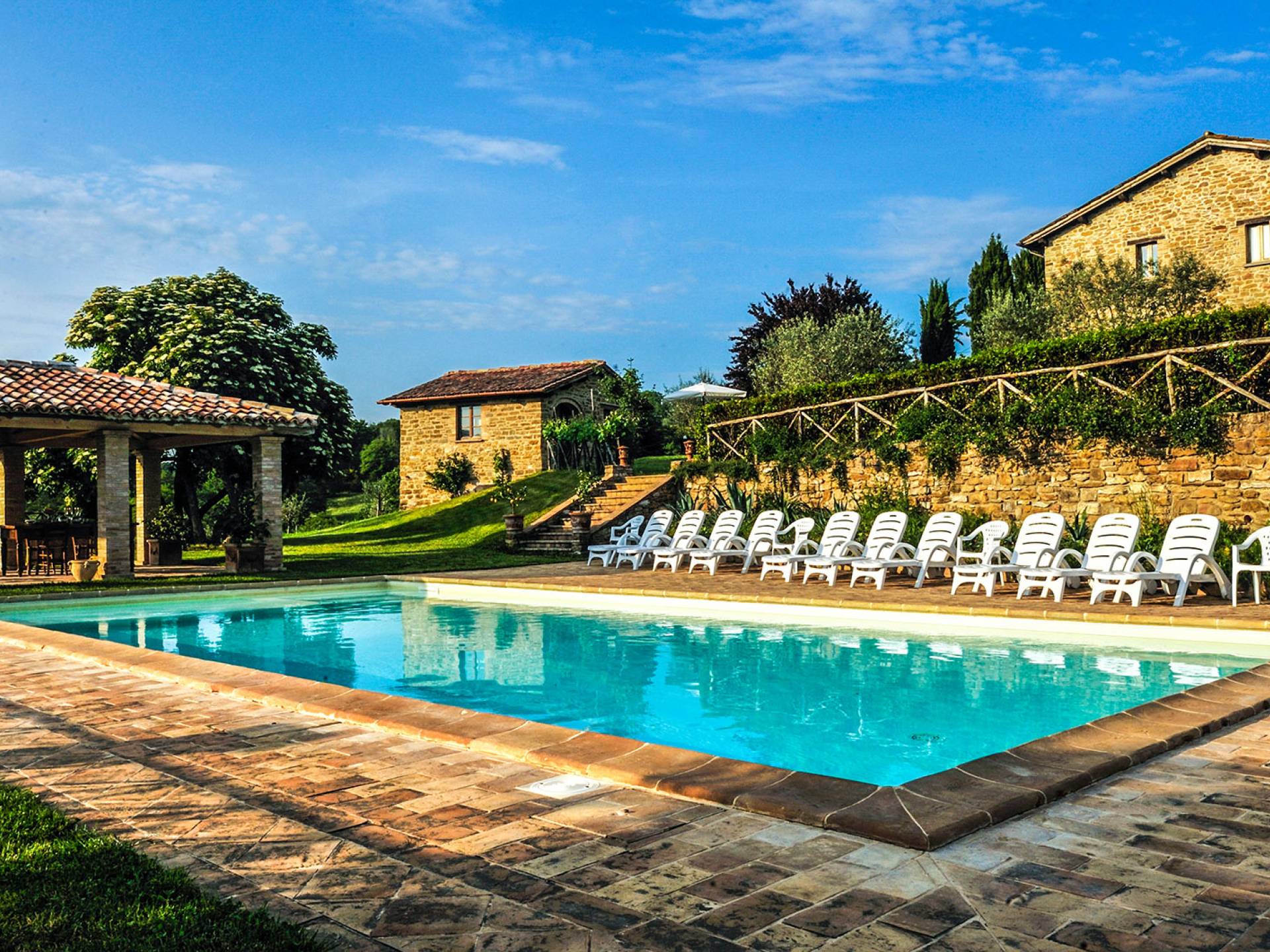 Villa Cardellini Ombrie est une location de villa de luxe avec 3 chambres et une piscine privée. La Villa Cardellini est une charmante maison de campagne du XVIIIe siècle, parfaitement restaurée dans sa splendeur antique par des mains habiles, qui s'intègre parfaitement au paysage rural environnant et vous laisse respirer le goût du passé. La Villa Cardellini est située dans les vertes collines de l'Ombrie à environ 650 mètres d'altitude, où les chaudes nuits d'été ne sont plus qu'un souvenir, et à une courte distance du charmant village de Pietralunga ou de la ville fascinante de Gubbio.