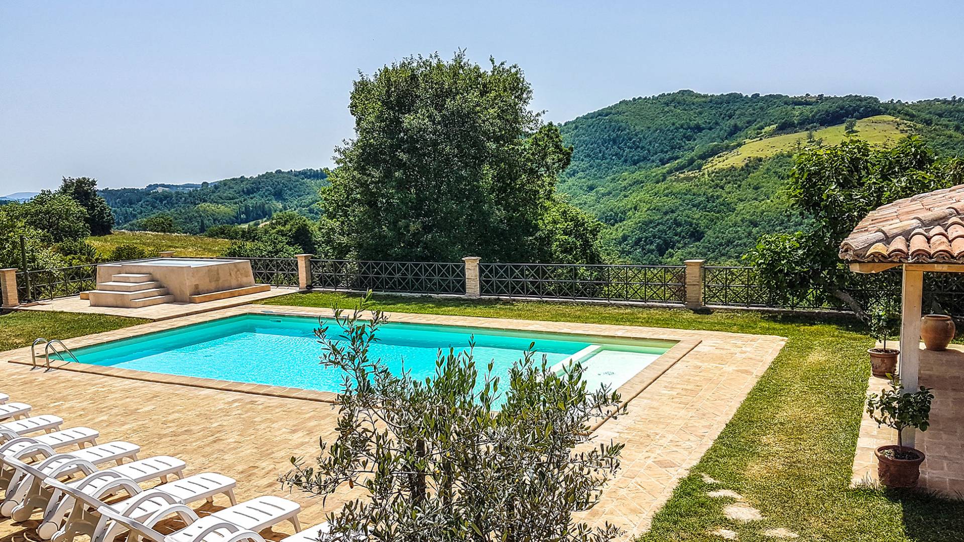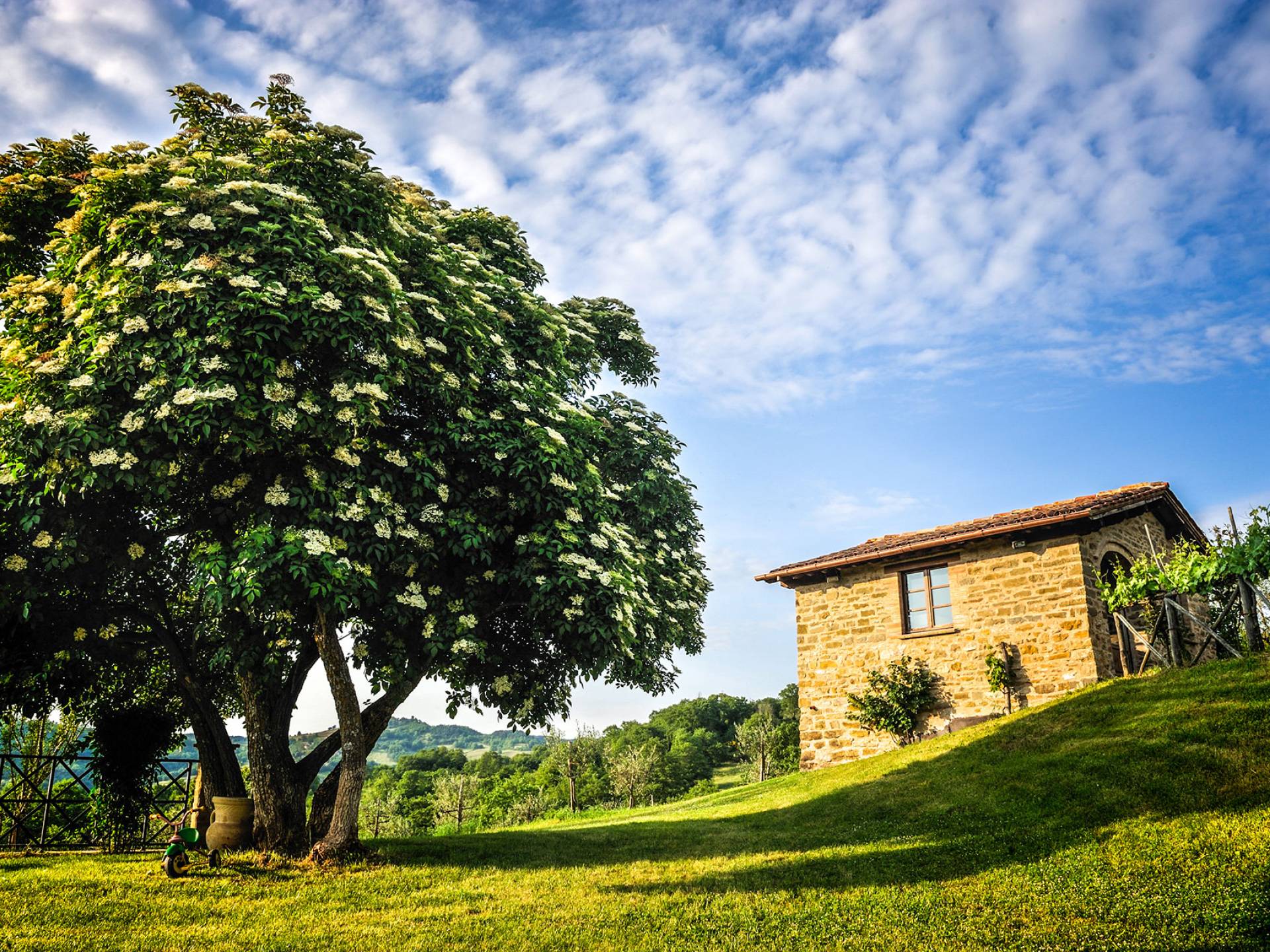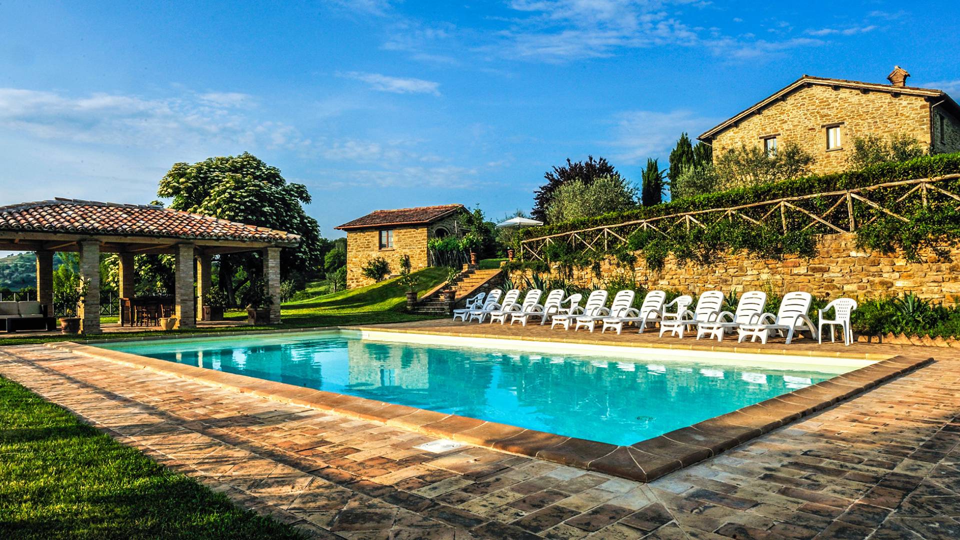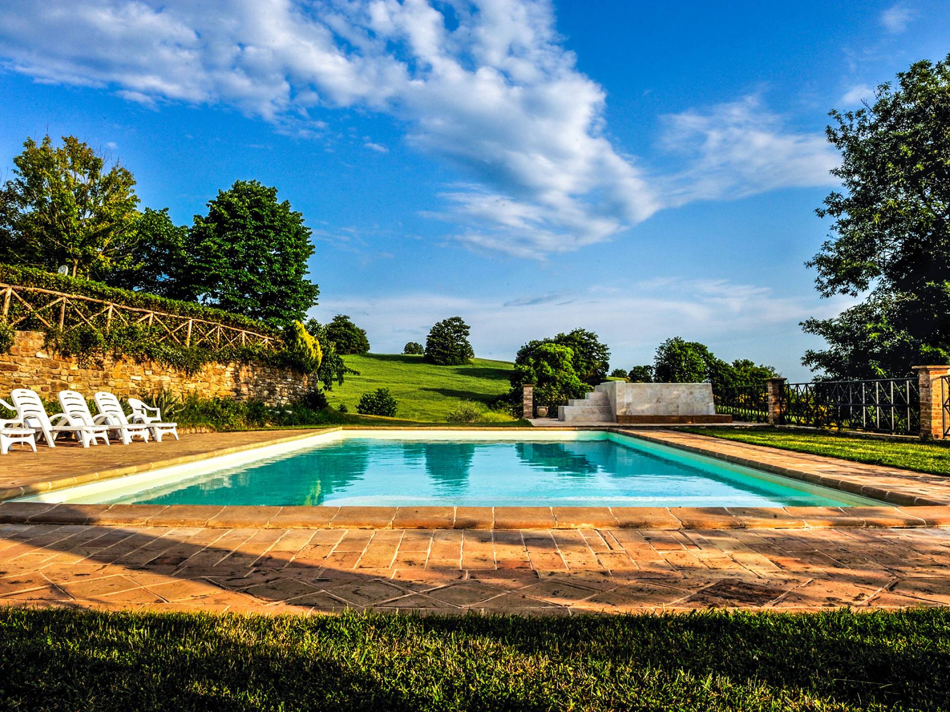 Villa Cardellini Ombrie est une location de villa de luxe avec 3 chambres et une piscine privée. La Villa Cardellini est une charmante maison de campagne du XVIIIe siècle, parfaitement restaurée dans sa splendeur antique par des mains habiles, qui s'intègre parfaitement au paysage rural environnant et vous laisse respirer le goût du passé. La Villa Cardellini est située dans les vertes collines de l'Ombrie à environ 650 mètres d'altitude, où les chaudes nuits d'été ne sont plus qu'un souvenir, et à une courte distance du charmant village de Pietralunga ou de la ville fascinante de Gubbio.