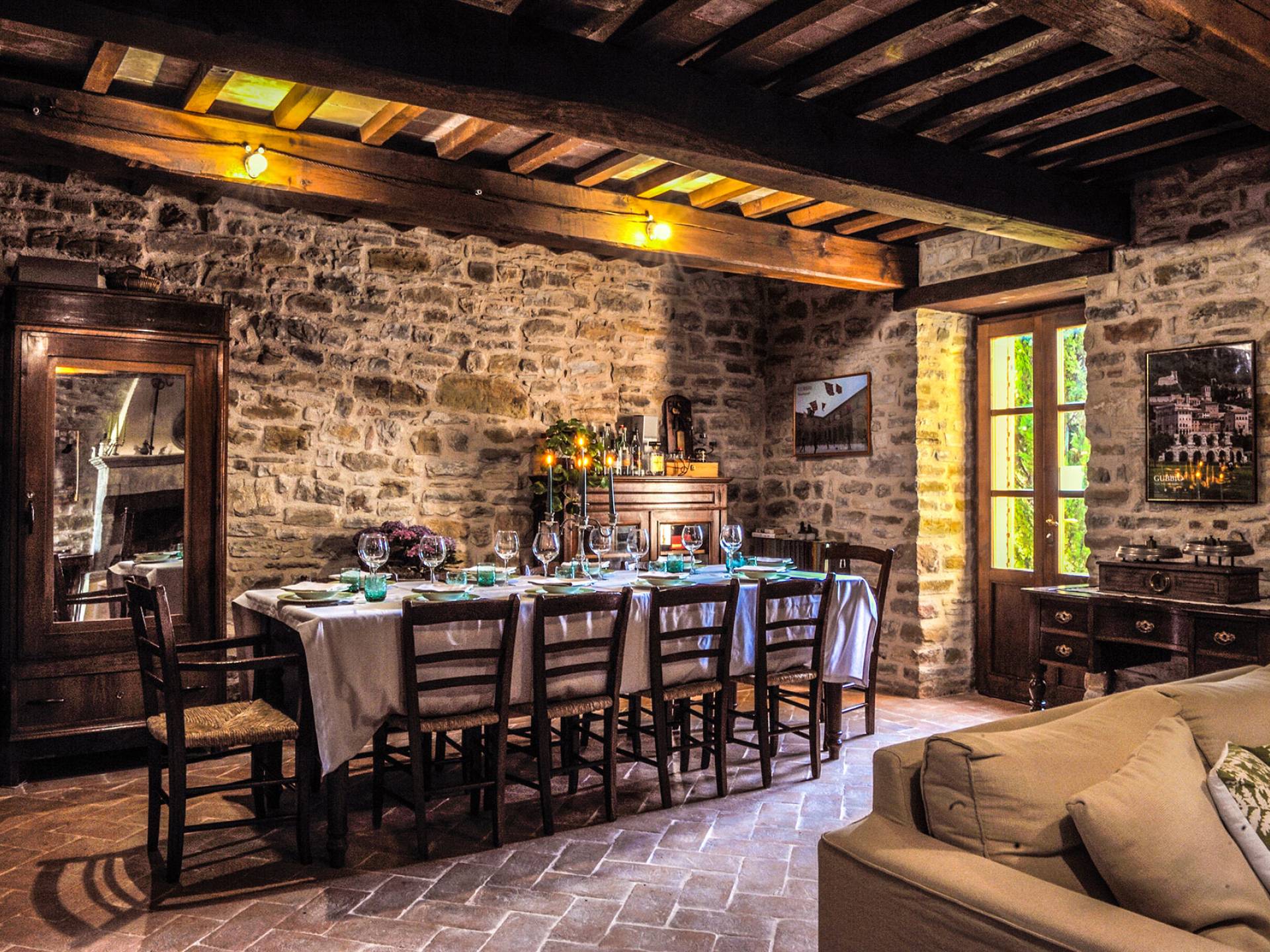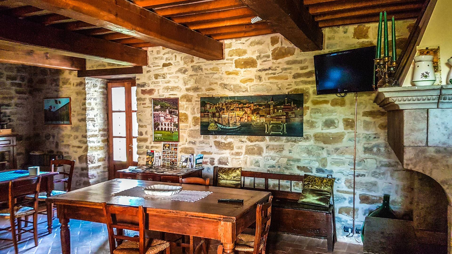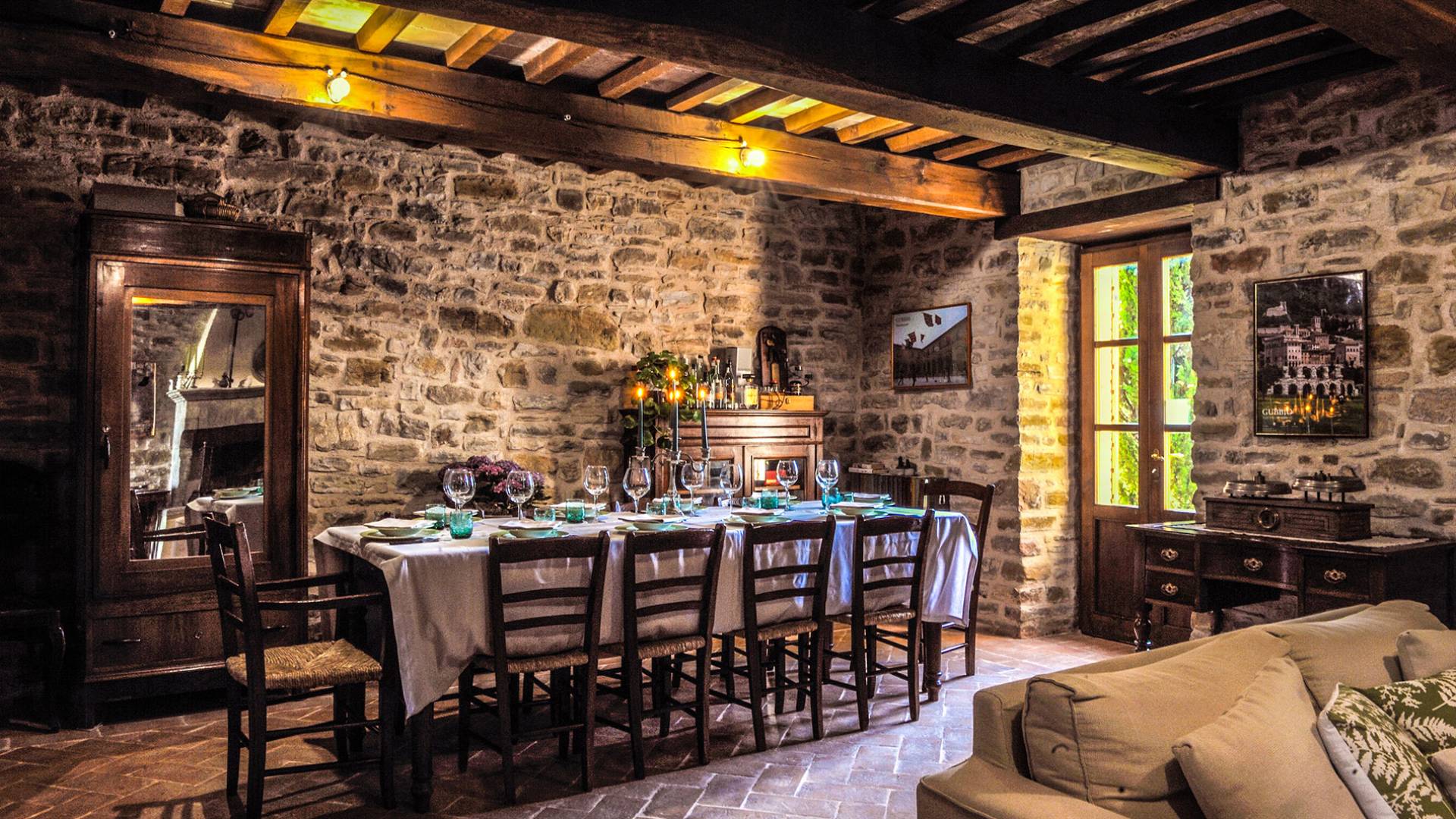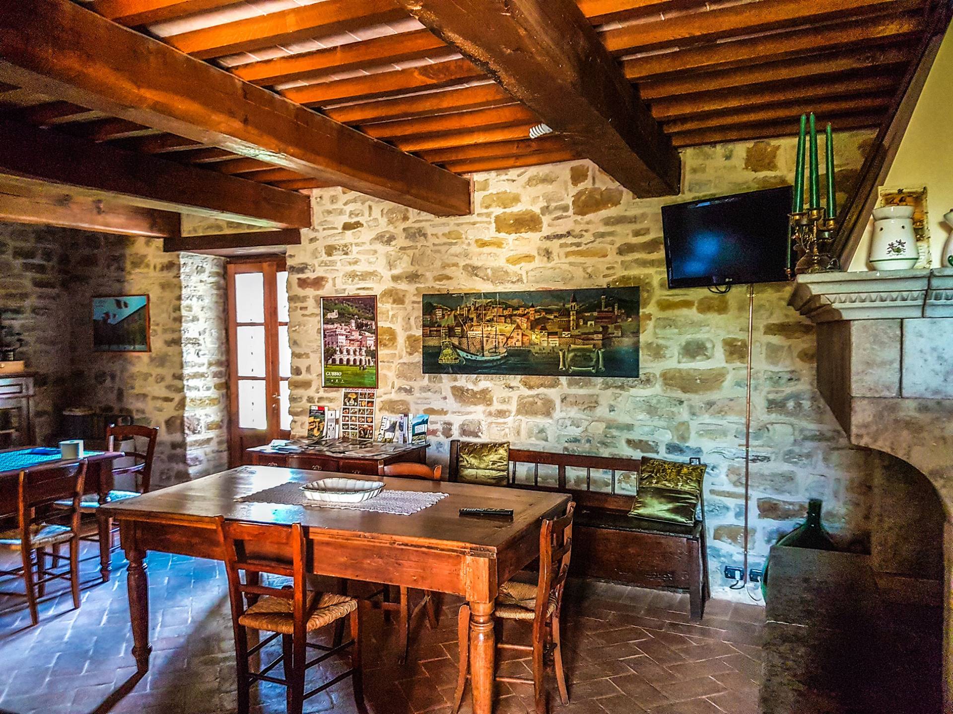 La Villa Cardellini Umbria est également dotée d'un espace extérieur avec des tables et un barbecue où vous pourrez dîner à la belle étoile ou siroter un bon verre de vin local. A l'intérieur de la Villa dispose d'un beau salon avec une cheminée qui peut être utilisé pour accueillir des réunions de famille. Ce domaine est un endroit idéal pour passer des journées dans une détente absolue loin de tout et de tout le monde, mais aussi une retraite hautement recommandée pour explorer les beaux endroits de l'Italie centrale.
