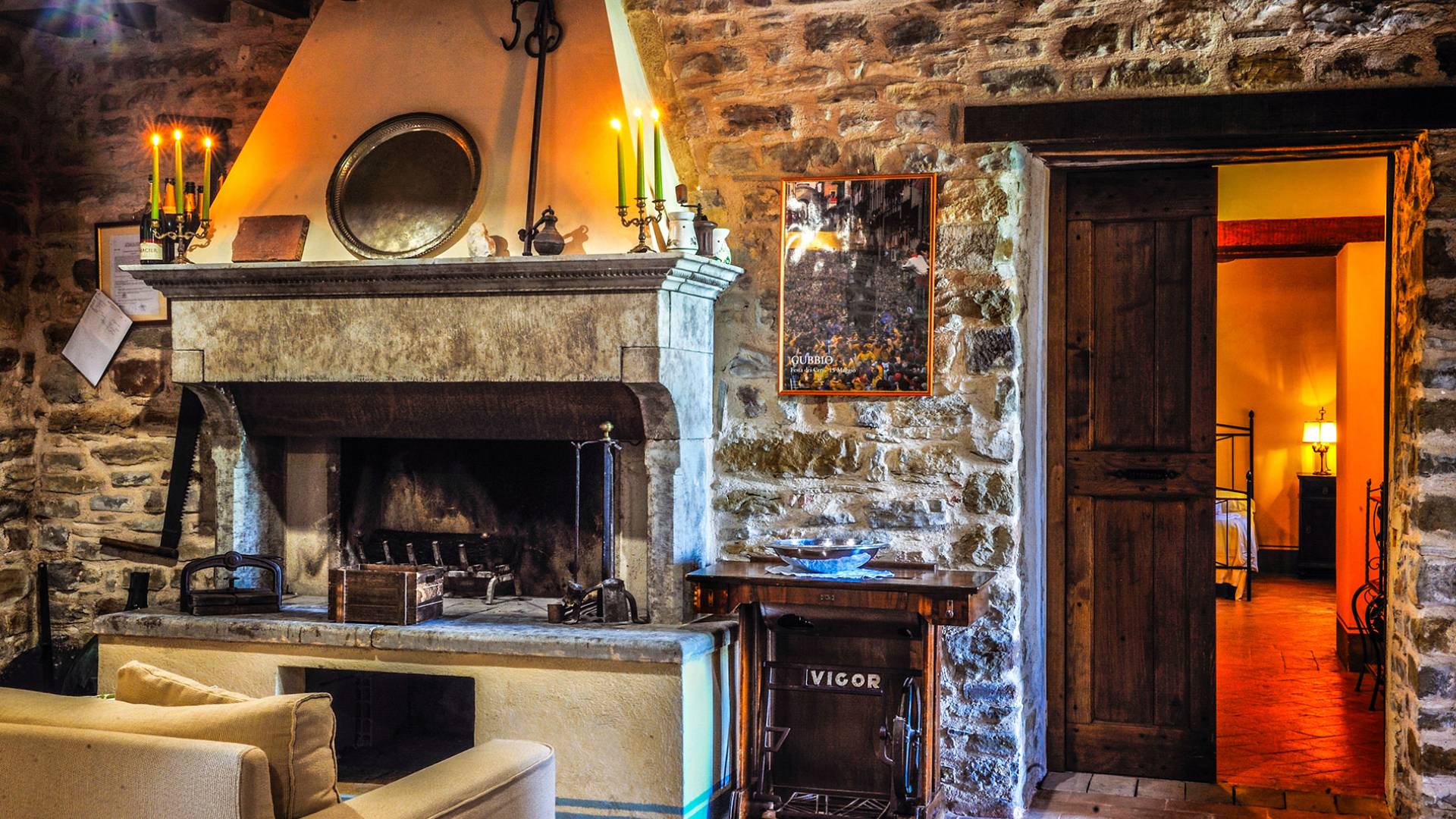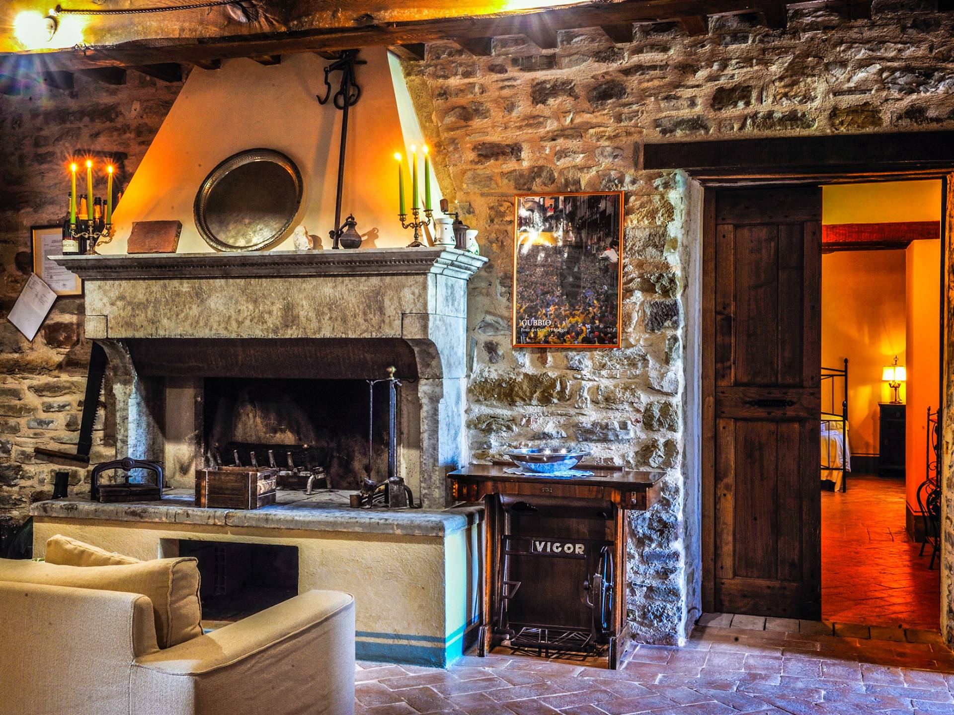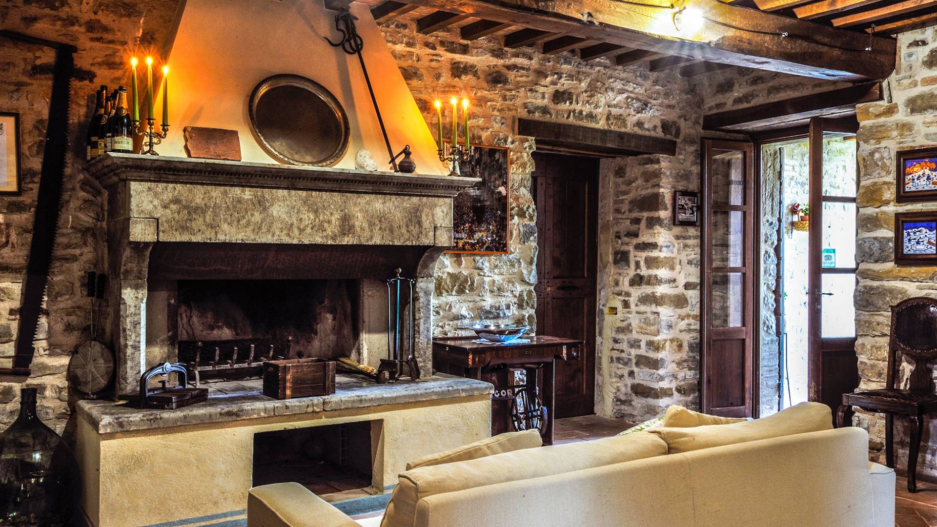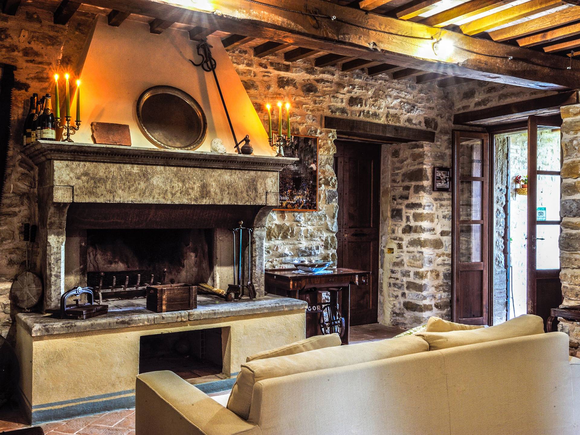 La Villa Cardellini Umbria est également dotée d'un espace extérieur avec des tables et un barbecue où vous pourrez dîner à la belle étoile ou siroter un bon verre de vin local. A l'intérieur de la Villa dispose d'un beau salon avec une cheminée qui peut être utilisé pour accueillir des réunions de famille. Ce domaine est un endroit idéal pour passer des journées dans une détente absolue loin de tout et de tout le monde, mais aussi une retraite hautement recommandée pour explorer les beaux endroits de l'Italie centrale.