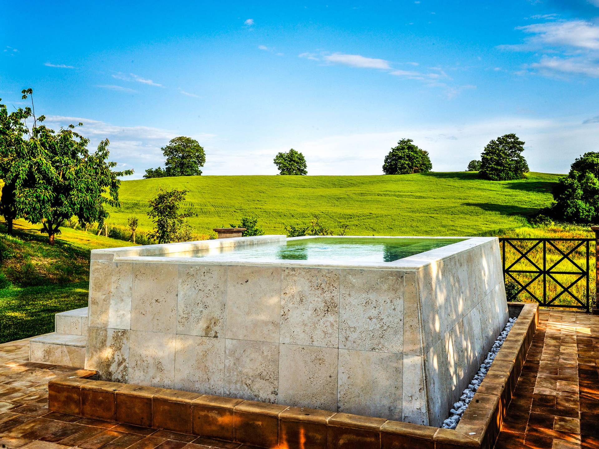 Les clients peuvent également profiter pleinement d'une belle piscine, avec un espace dédié à une profondeur réduite pour la sécurité de leurs enfants, et d'un jacuzzi très romantique à partir duquel il est possible de profiter du magnifique paysage environnant sur les collines tout en profitant du massage chaud du bain à remous.