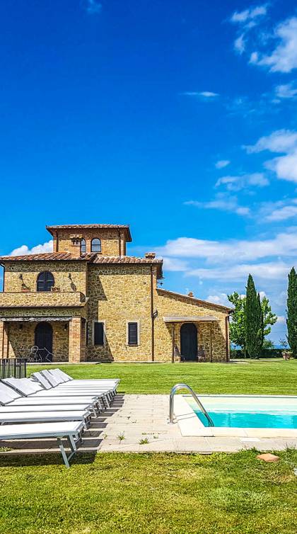 Villa Eterea Umbria est une location de villa de luxe avec 7 chambres et une piscine privée. Dans une atmosphère pittoresque, à seulement 5 kilomètres du lac Trasimène, Villa Eterea est un fabuleux cercueil niché parmi les vignes et les cyprès de la campagne ombrienne, dans une région pittoresque à la frontière avec la Toscane.