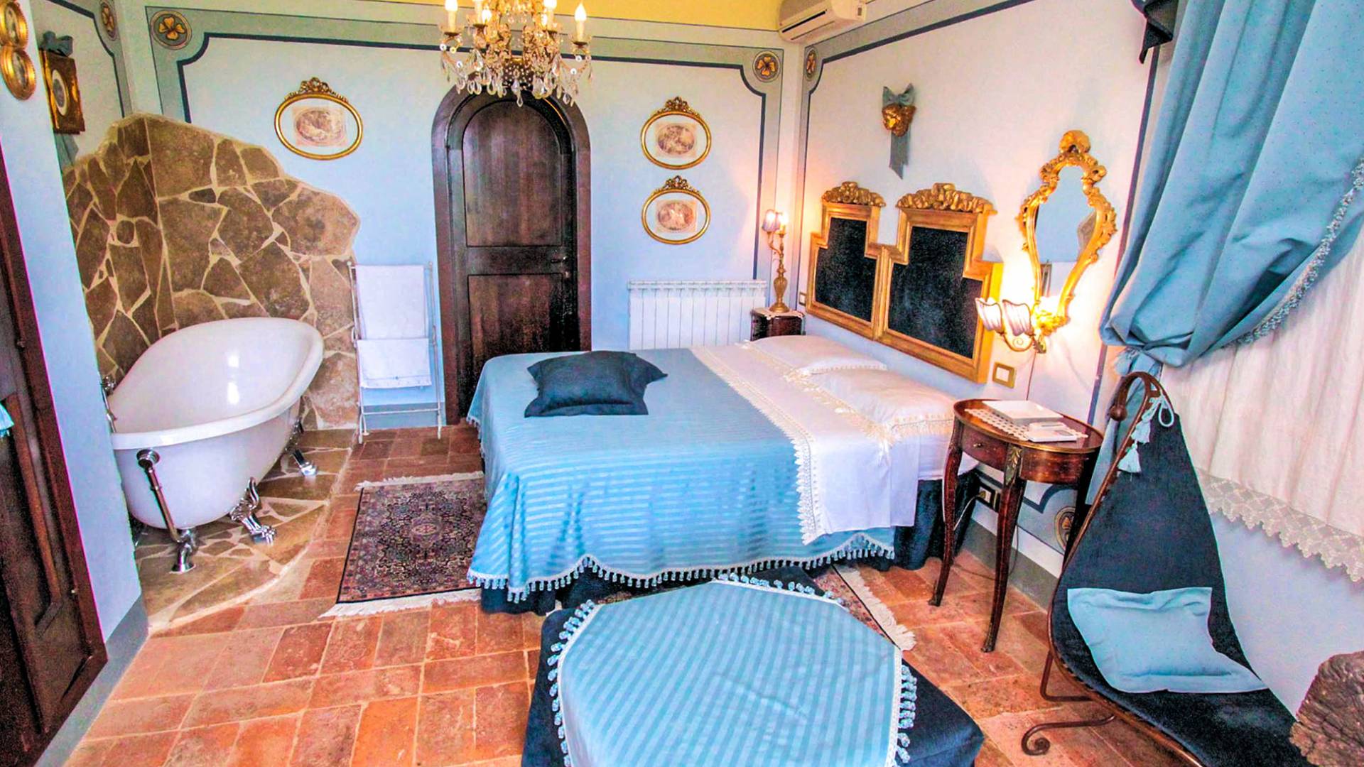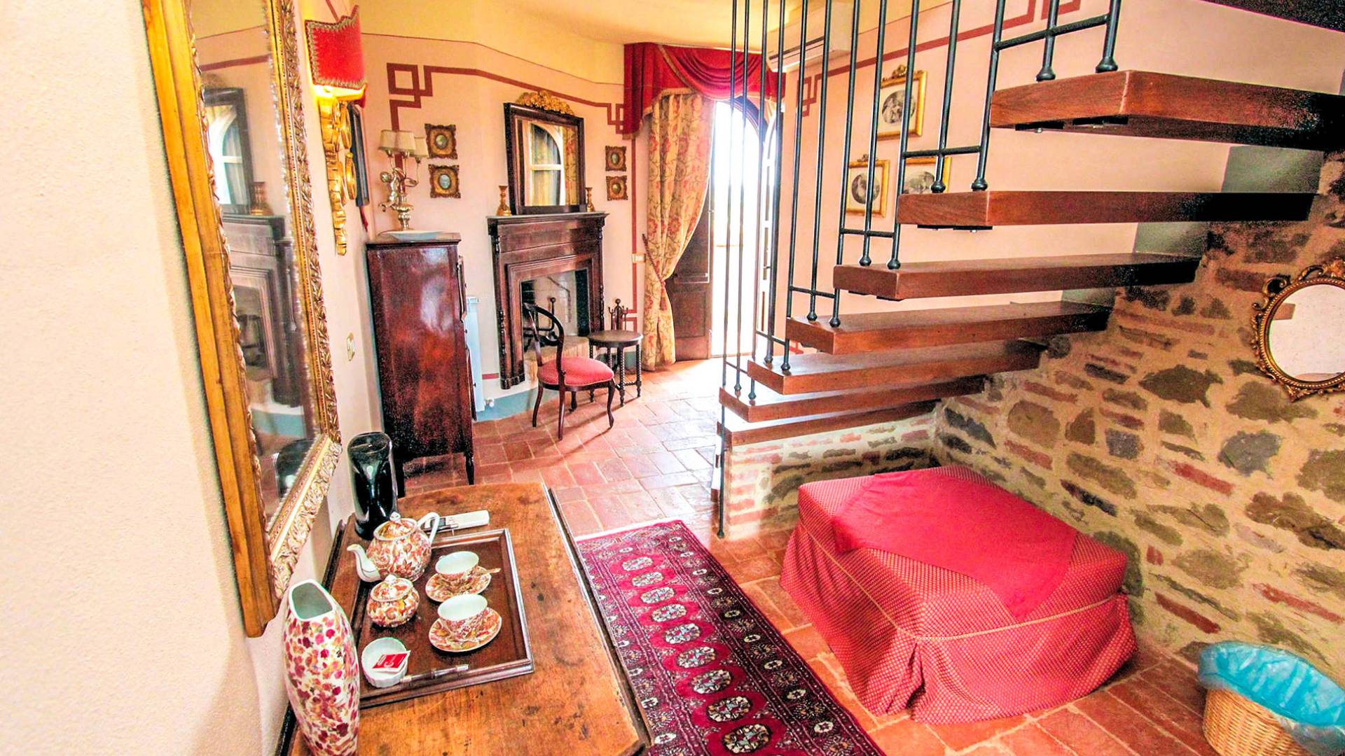 L'élégant manoir principal, entièrement en pierre, peut accueillir jusqu'à 18 personnes, les accueillant dans 7 chambres, disposées sur trois niveaux, toutes avec salle de bain indépendante, climatisation, TV et bien d'autres petites attentions capables de chouchouter les hôtes sur le rez de chaussée. Il y a aussi une kitchenette équipée d'un lave-vaisselle, d'un four, d'un micro-ondes, d'un réfrigérateur et d'une cafetière.