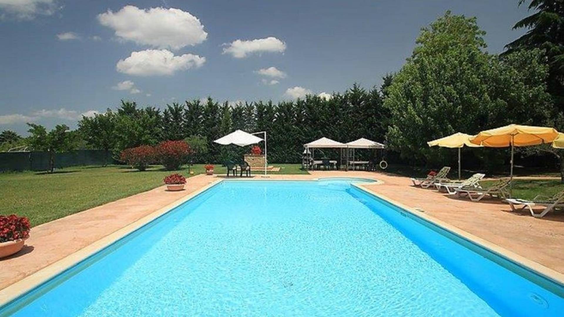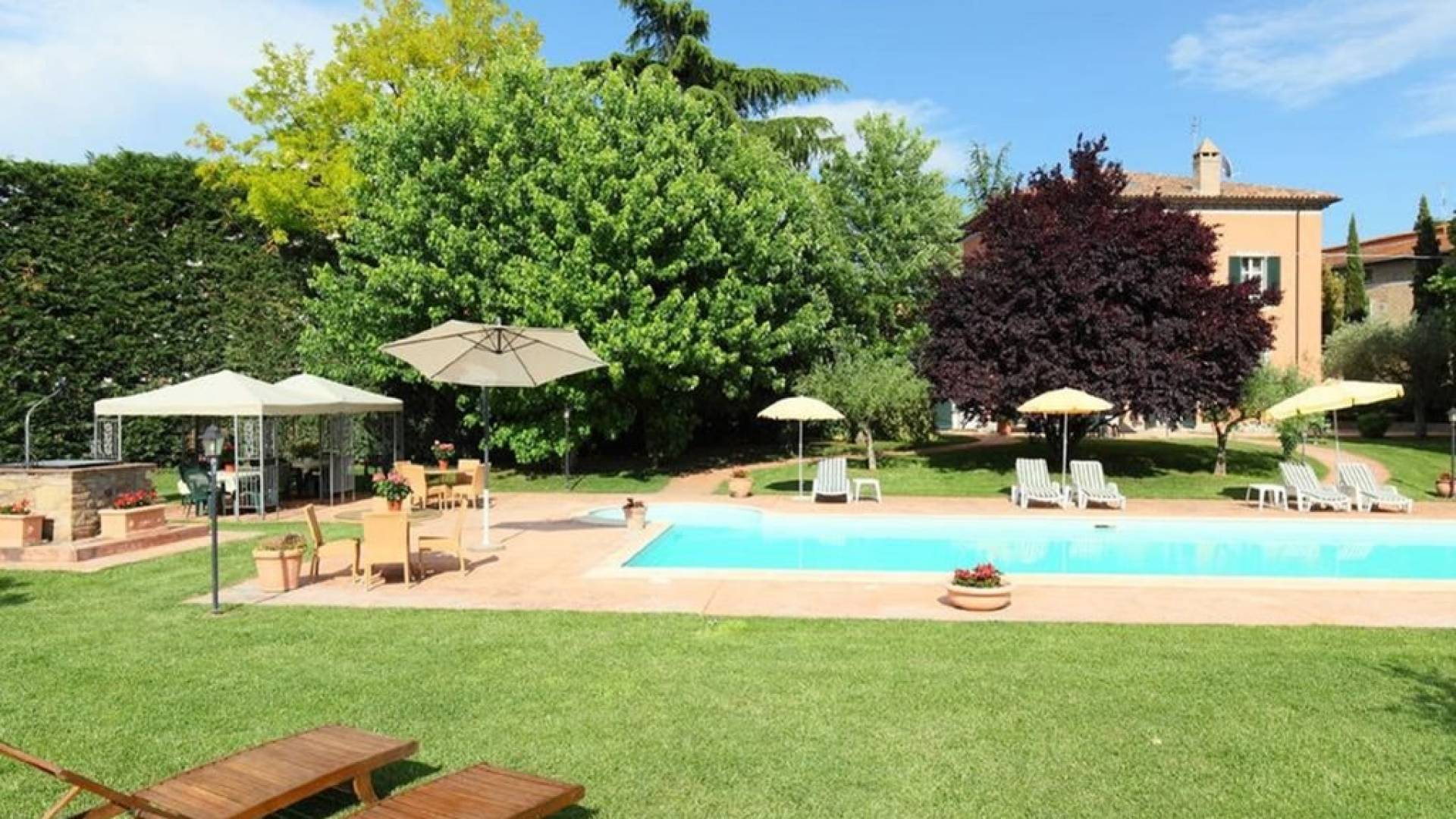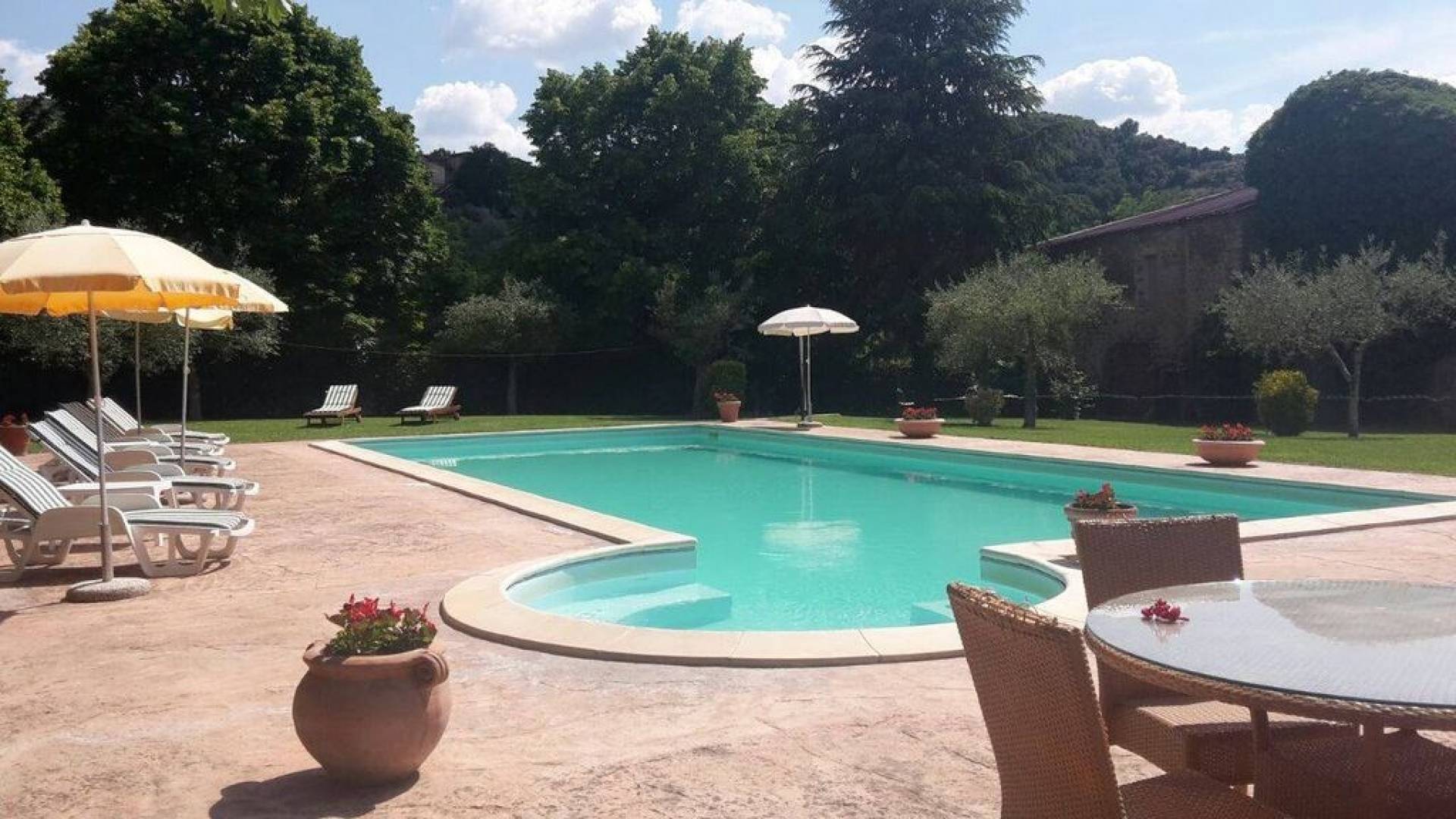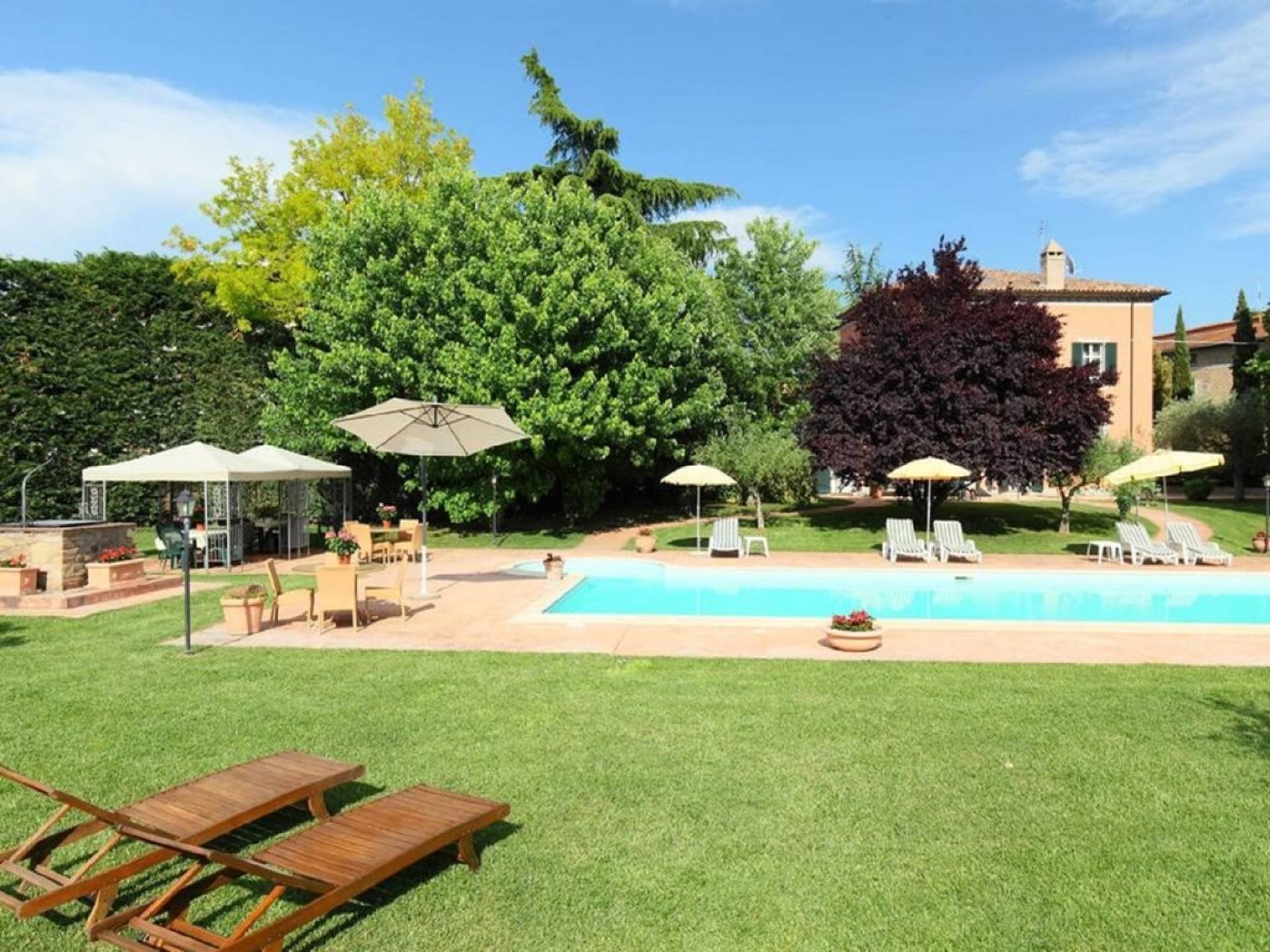 La Villa est entourée d'un grand jardin italien bien entretenu avec des oliviers et des plantes méditerranéennes qui abrite la piscine avec une péninsule de détente, équipée de chaises longues et d'un espace barbecue. L'endroit idéal pour passer des moments de détente dans les vertes collines de l'Ombrie. Villa il Pozzo est située près de Bettona, une ville imposante avec des murs, construite au sommet d'une colline d'oliviers et, comme une terrasse naturelle, s'ouvre à l'œil sur la verte vallée ombrienne. La villa est donc un paradis pour ceux qui recherchent la détente et la tranquillité alliées à une vue à couper le souffle.