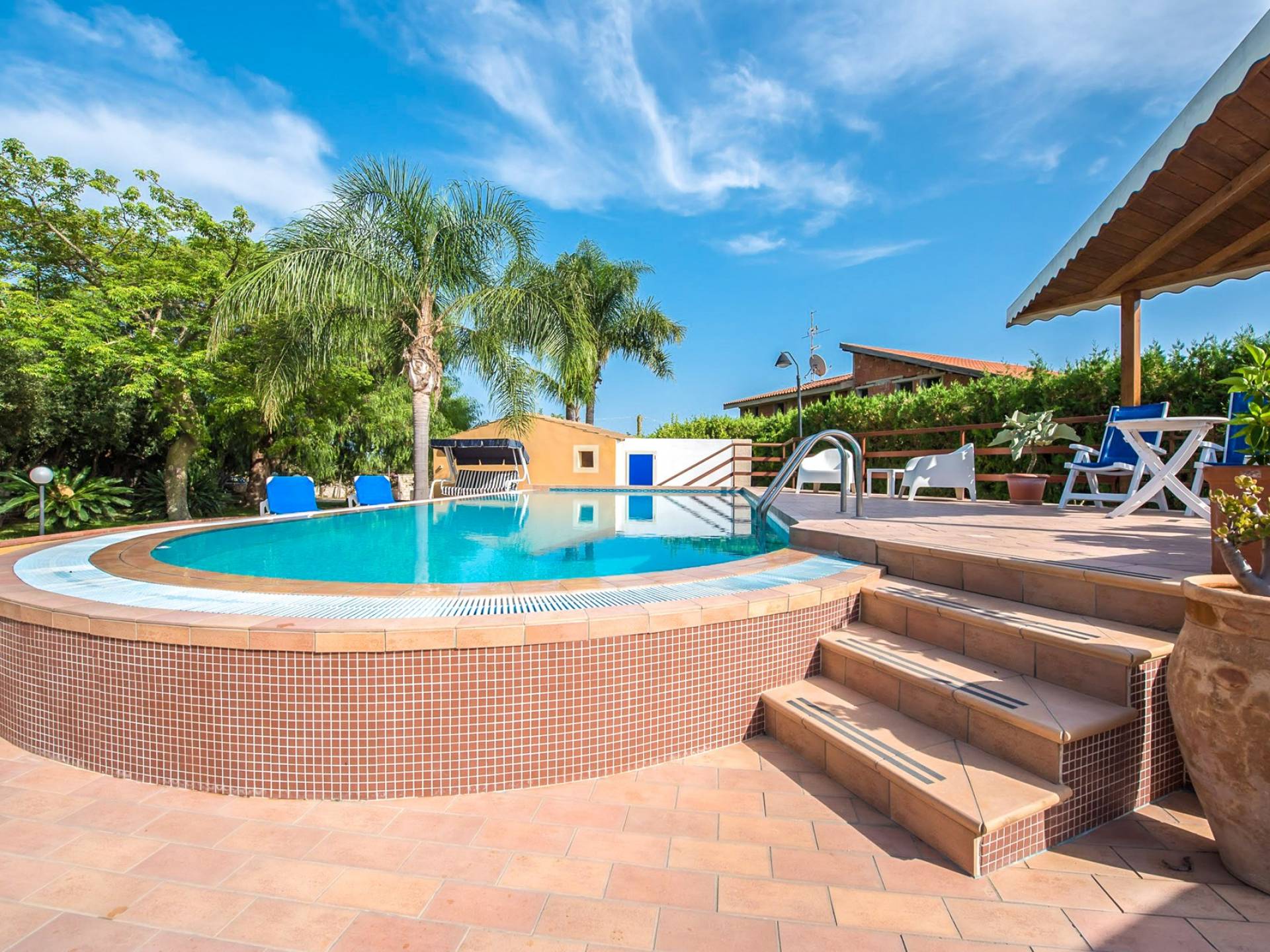 Villa Candiano Sicile peut accueillir jusqu'à 8 personnes dans 3 chambres doubles et 1 canapé-lit double. Une cuisine bien équipée mène à un salon de mariée qui s'ouvre sur la véranda. La cuisine extérieure, avec four et barbecue, est parfaite pour prendre vos repas dans la brise d'été tandis que le jardin et la piscine vous aideront à vous détendre au soleil ou à l'ombre d'un arbre.