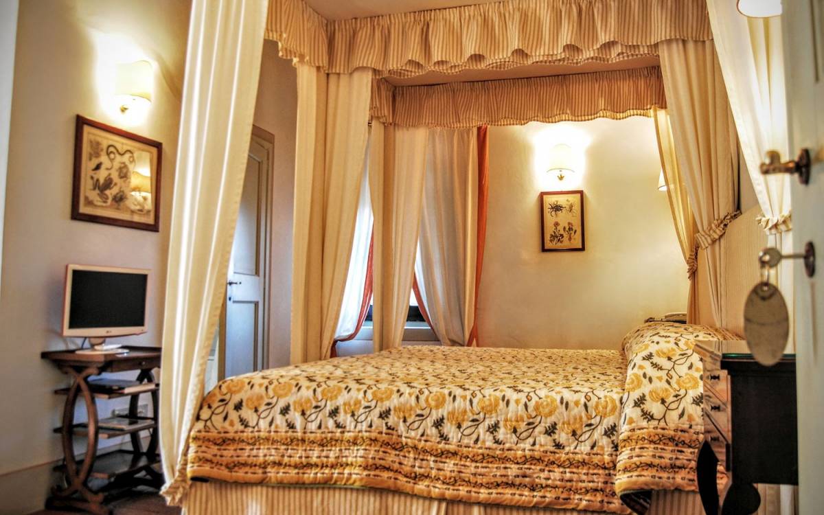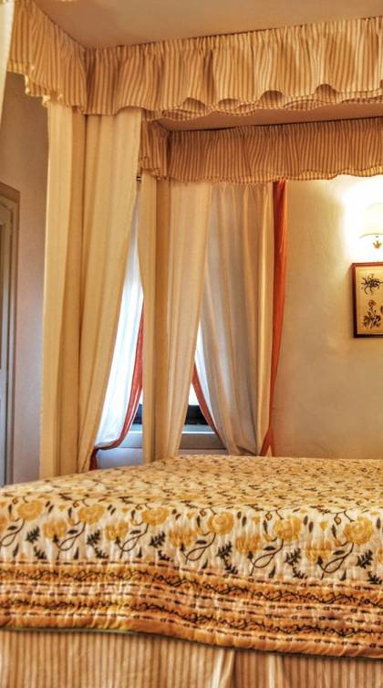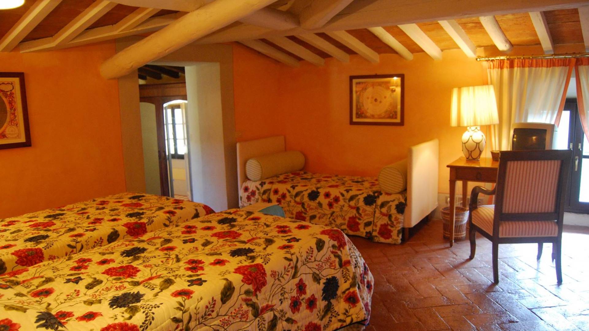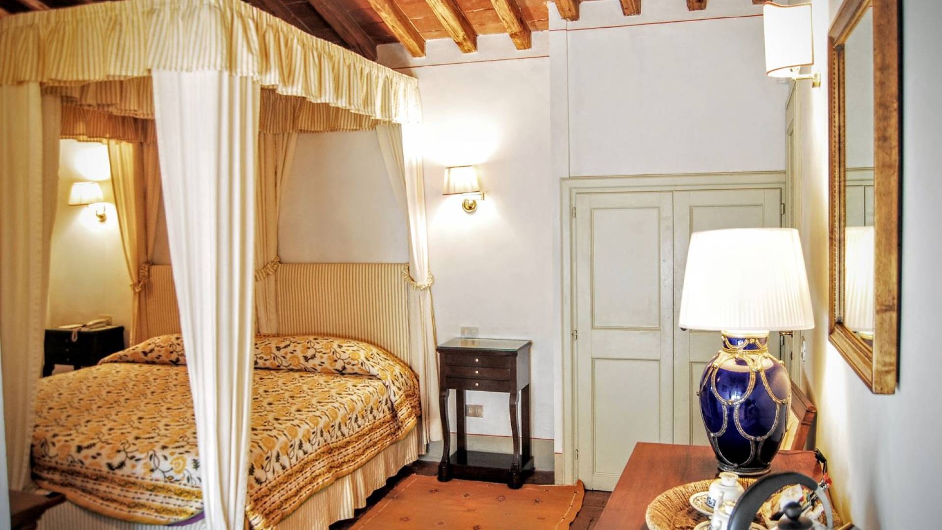 La décoration est ravissante (tapisseries en soie ou en coton épais, provenant d'un ancien tapis roulant toscan). Les salles de bains ont été décorées avec un soin particulier : elles ont toutes des carreaux faits à la main dans des tons pastel, tandis que certaines d'entre elles ont des plafonds et des murs peints. Toutes les chambres sont équipées de TV satellite, téléphone, prise ordinateur, coffre-fort, climatisation, frigo-bar et plateau petit-déjeuner. La connexion sans fil est disponible dans toute la villa ainsi que sous la loggia et le jardin avant