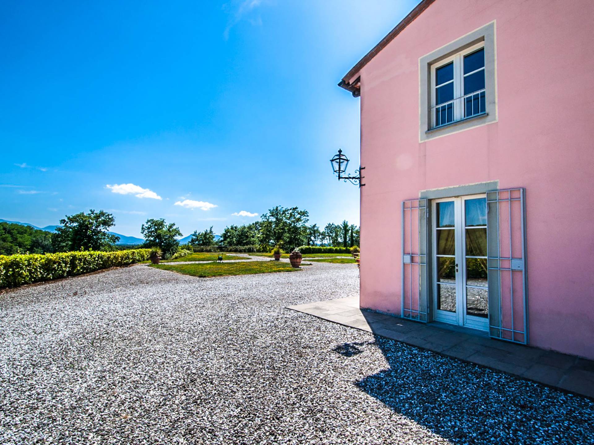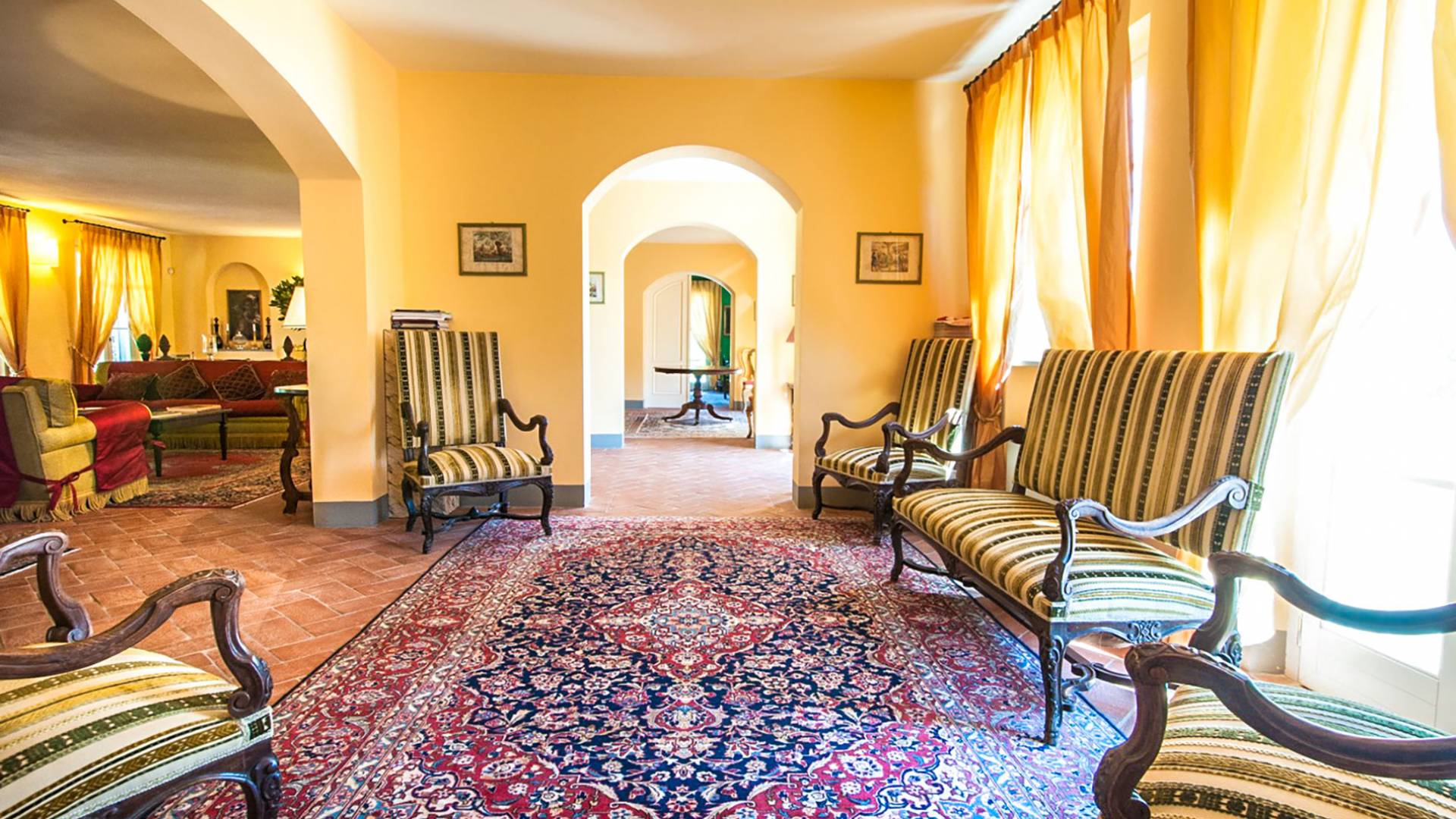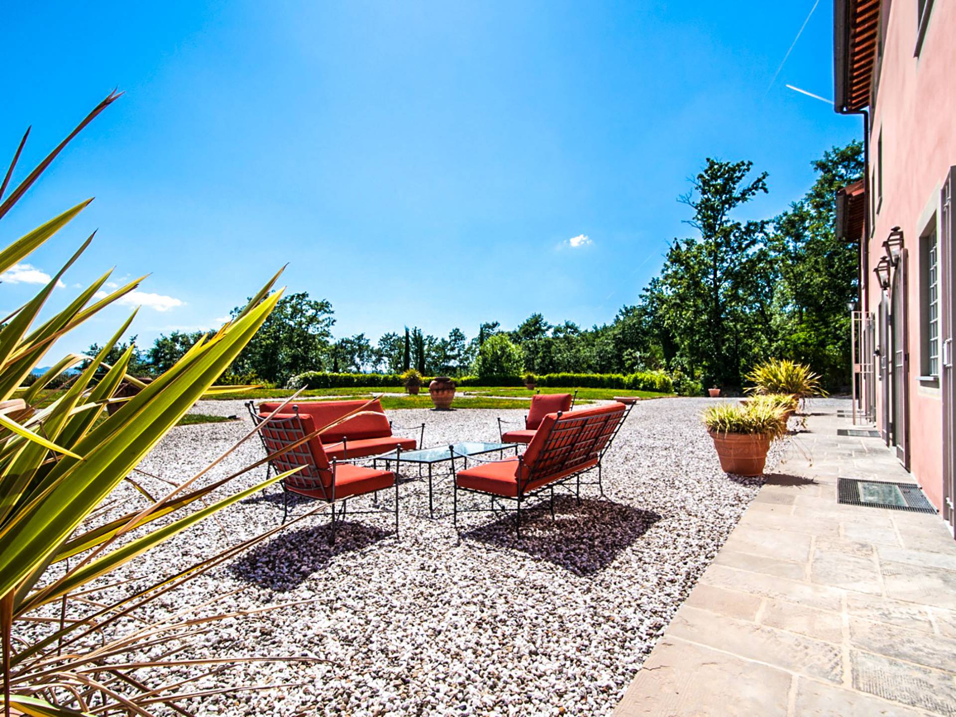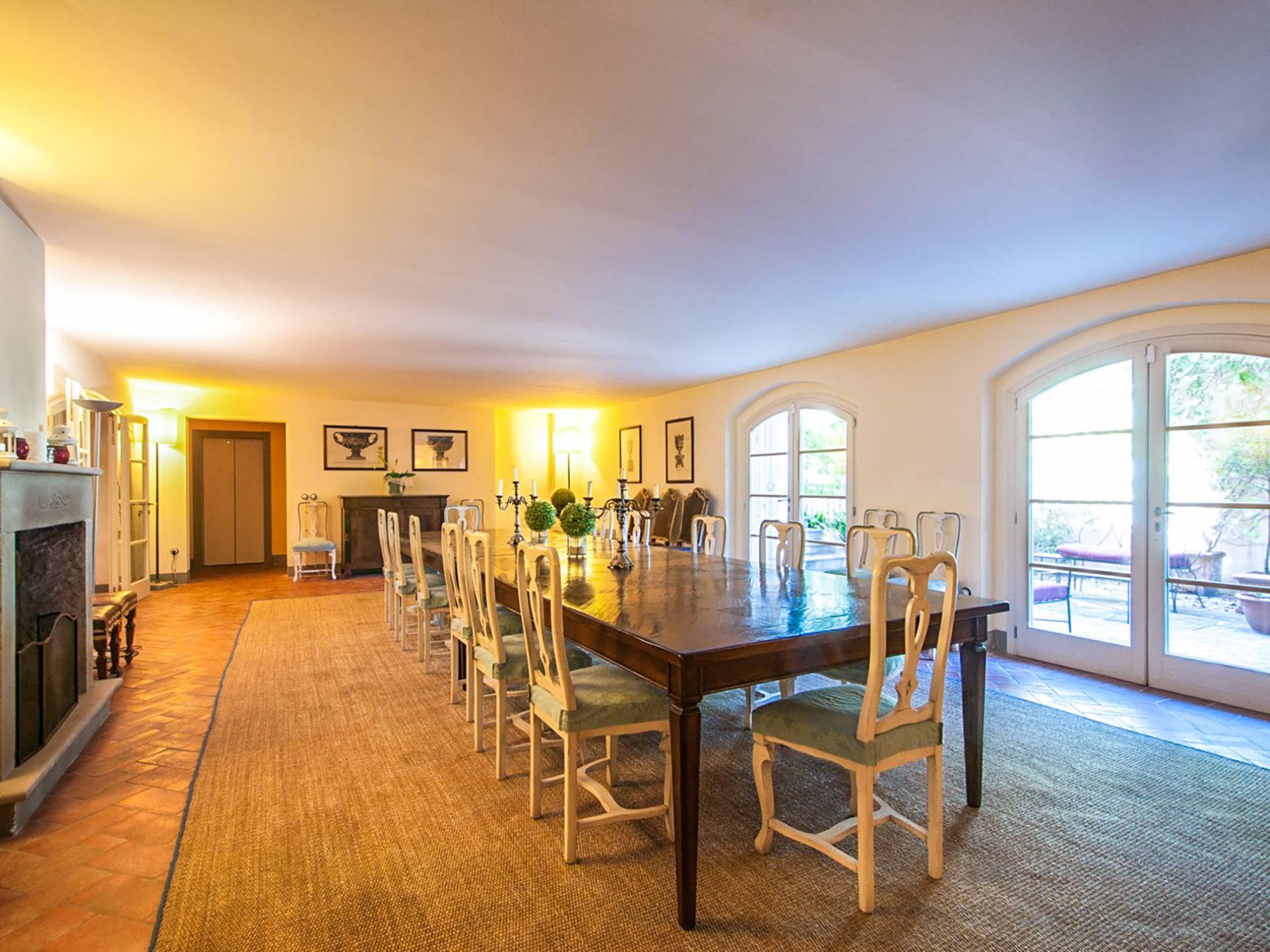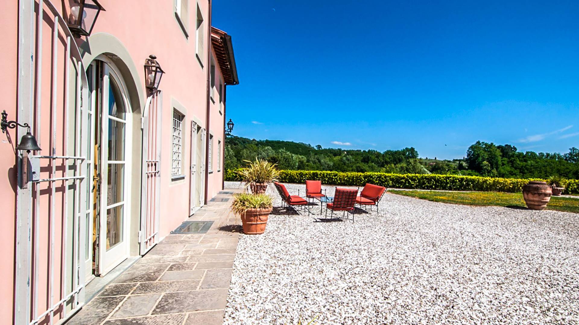 Bien que de style classique, la rénovation s'est accompagnée de matériaux contemporains, constituant une sorte de Versailles à l'échelle réduite, en Toscane. En raison de son architecture - longs couloirs avec de larges chambres en suite, grands espaces communs bien répartis dans toute la maison - cette maison est parfaite pour les grands groupes et en particulier les familles voyageant ensemble.