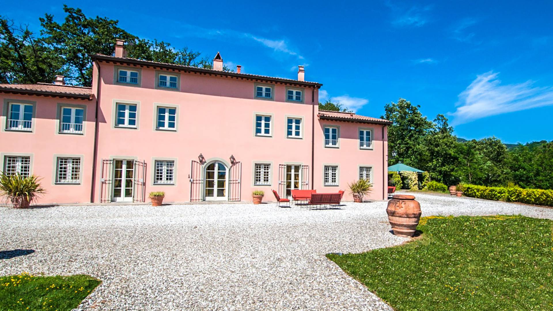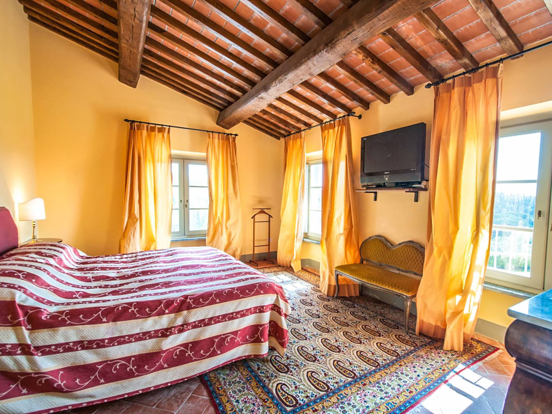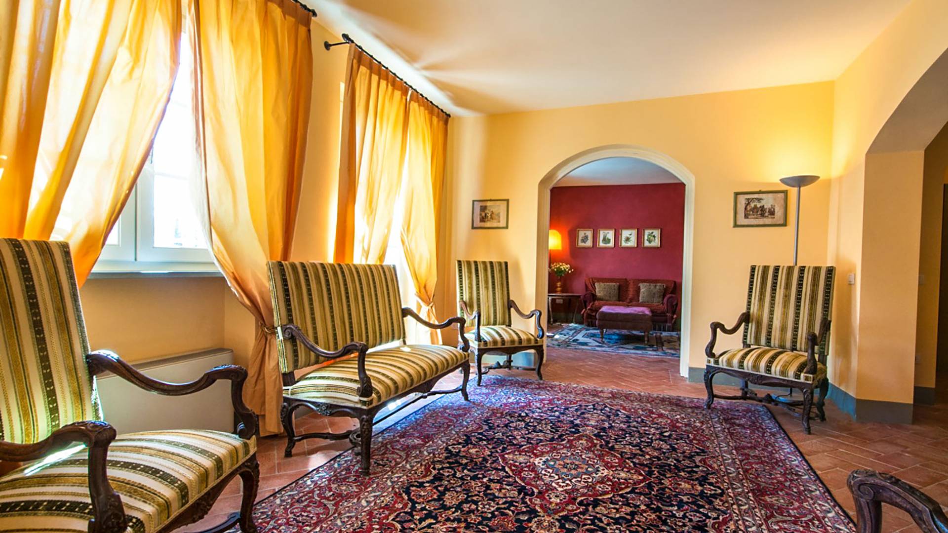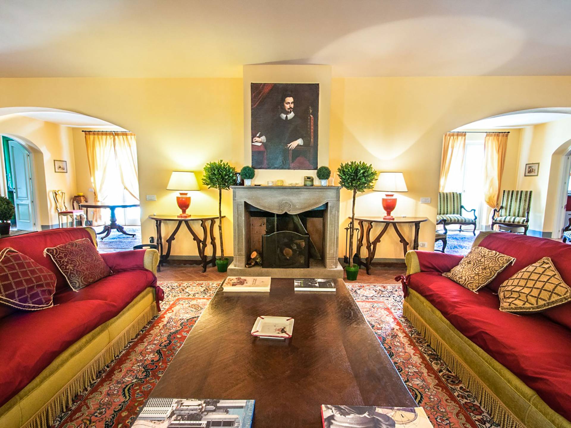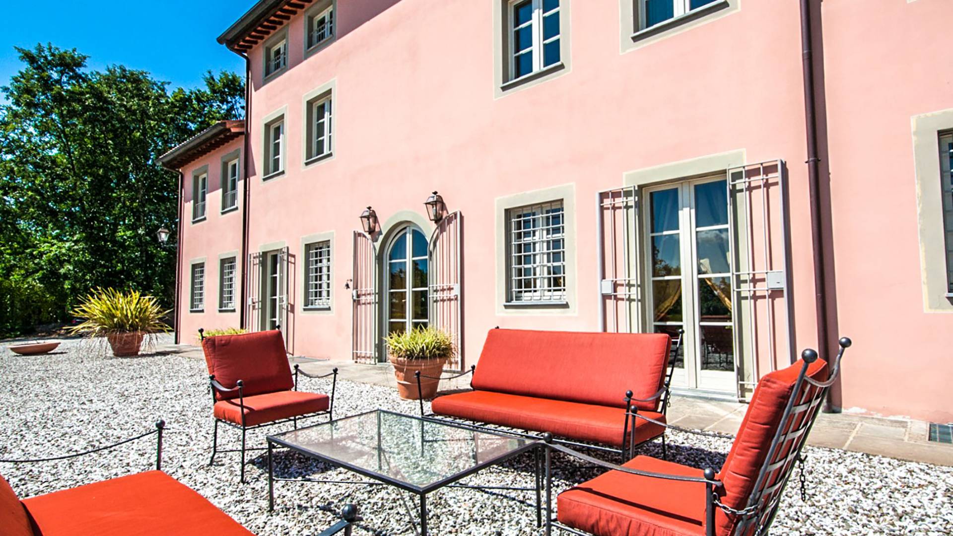 Bien que de style classique, la rénovation s'est accompagnée de matériaux contemporains, constituant une sorte de Versailles à l'échelle réduite, en Toscane. En raison de son architecture - longs couloirs avec de larges chambres en suite, grands espaces communs bien répartis dans toute la maison - cette maison est parfaite pour les grands groupes et en particulier les familles voyageant ensemble.