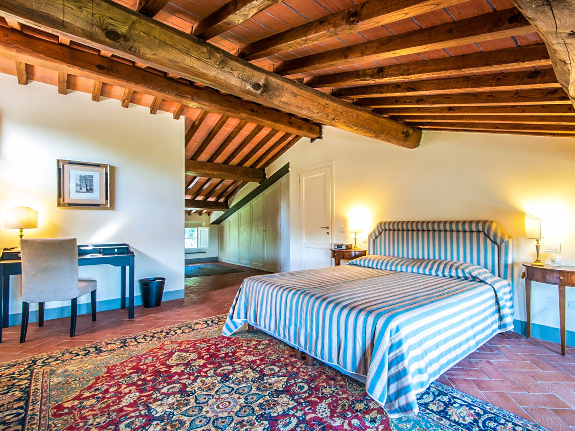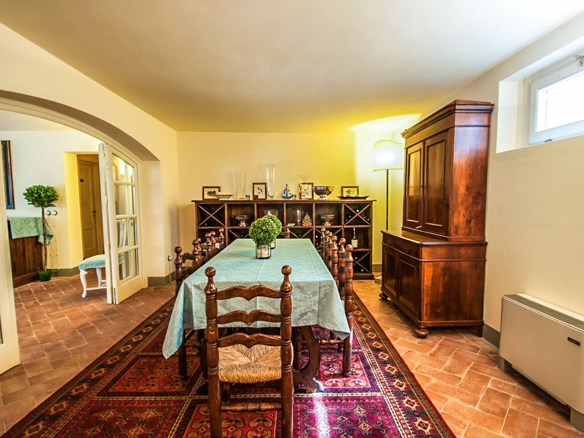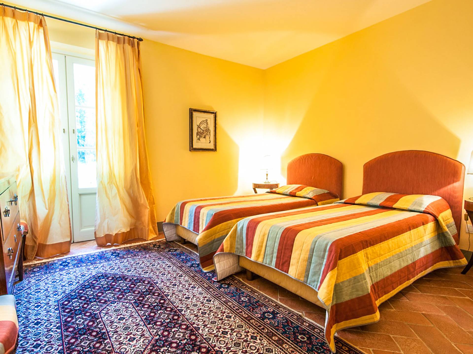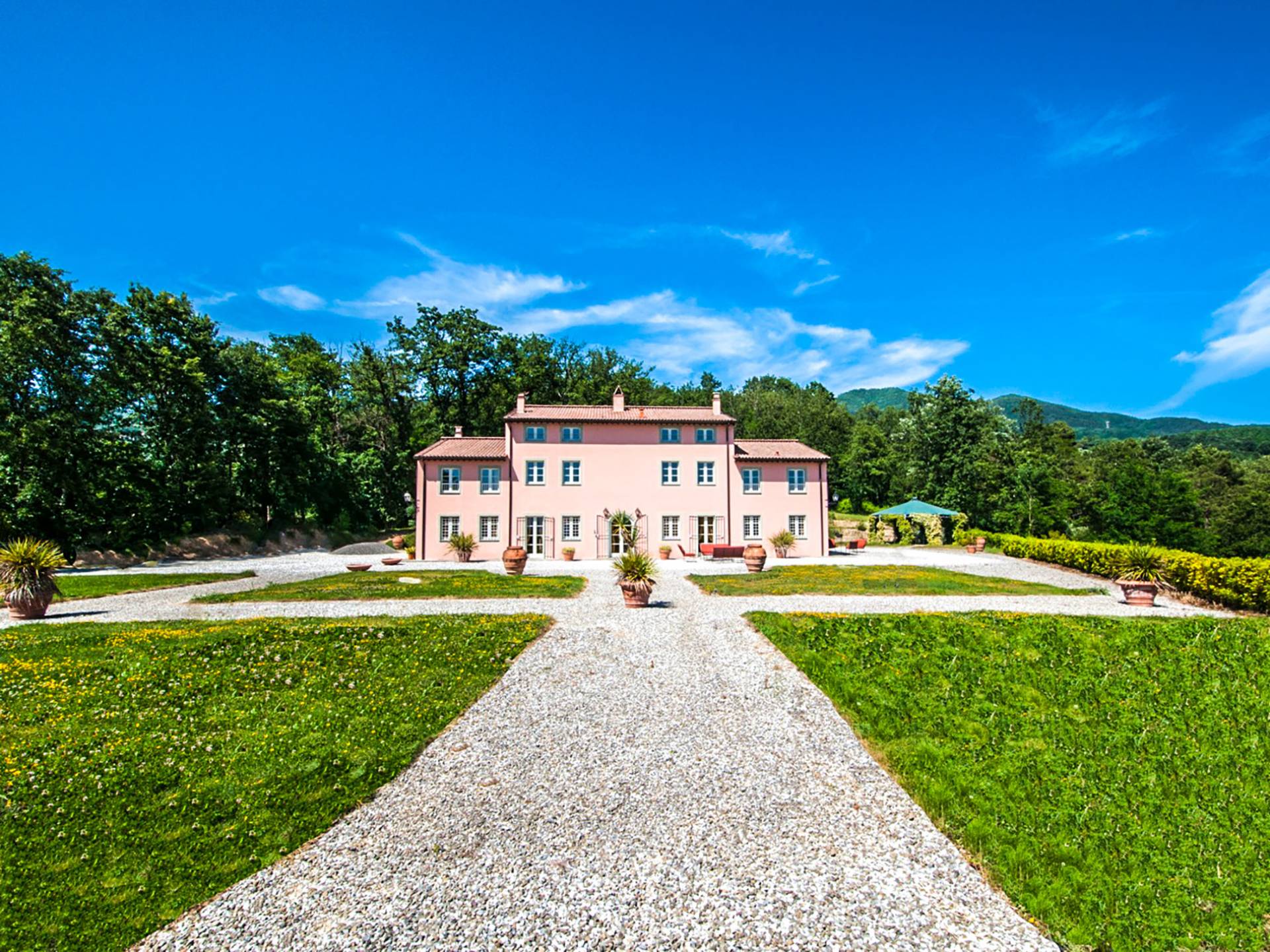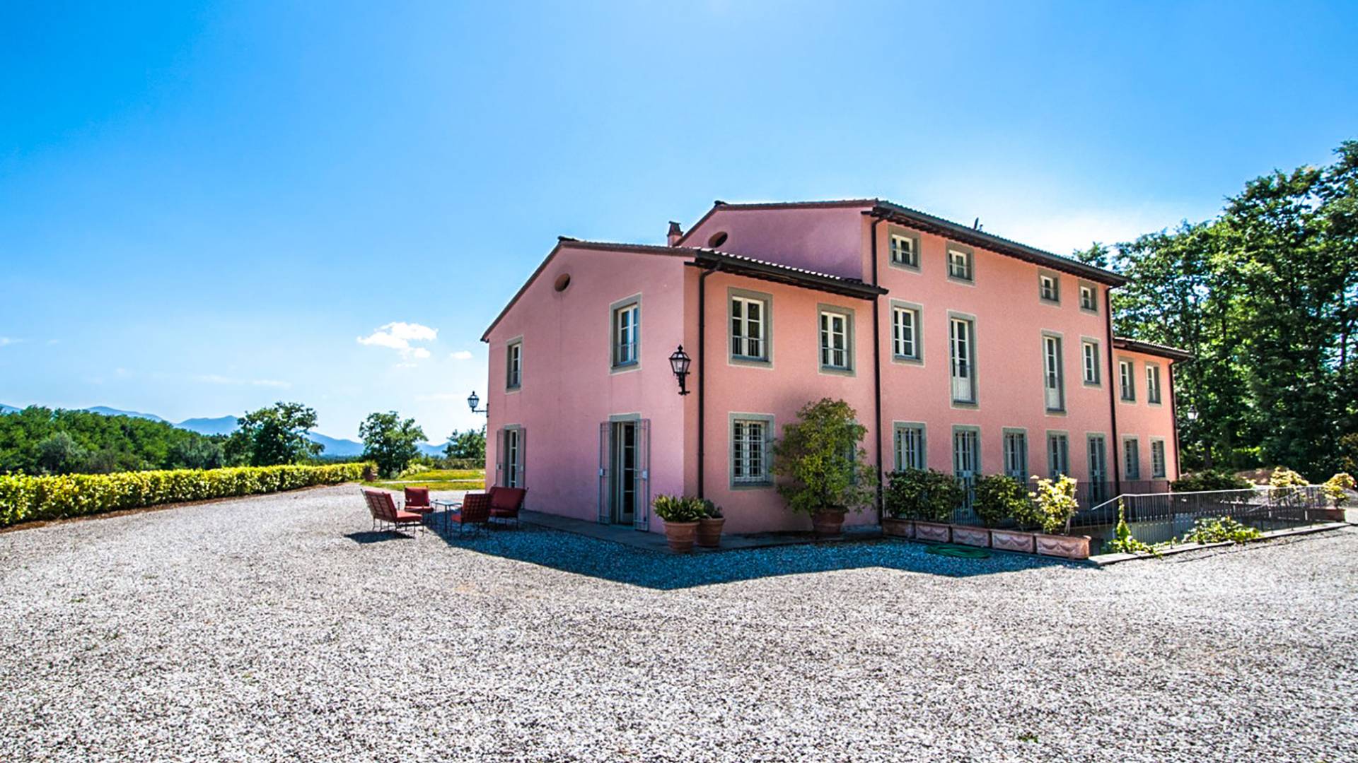 Bien que de style classique, la rénovation s'est accompagnée de matériaux contemporains, constituant une sorte de Versailles à l'échelle réduite, en Toscane. En raison de son architecture - longs couloirs avec de larges chambres en suite, grands espaces communs bien répartis dans toute la maison - cette maison est parfaite pour les grands groupes et en particulier les familles voyageant ensemble.