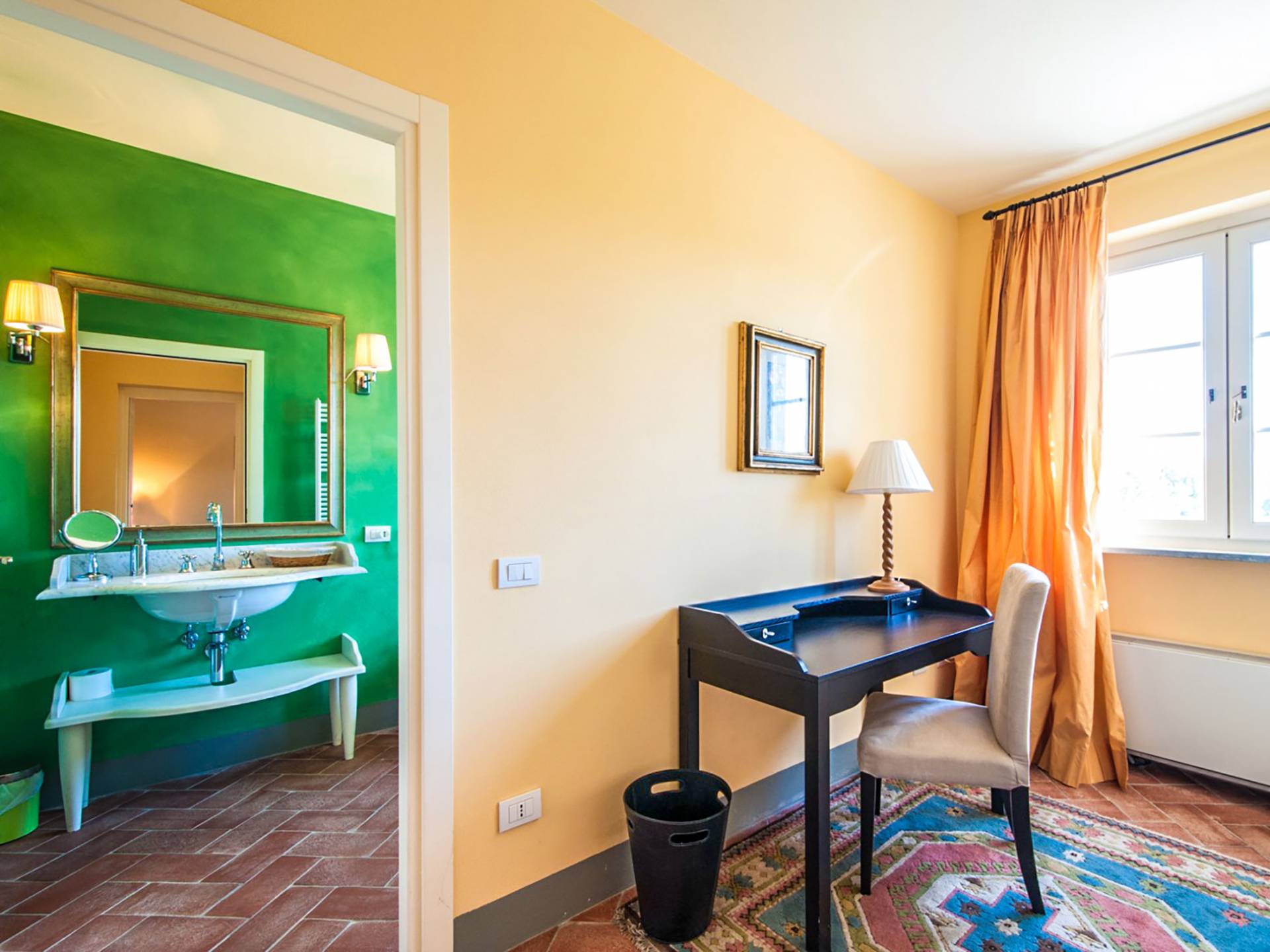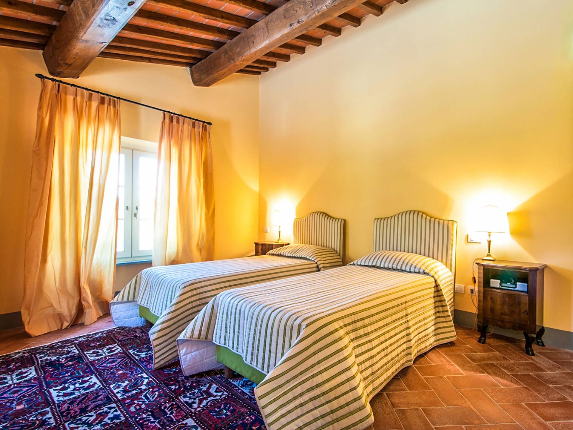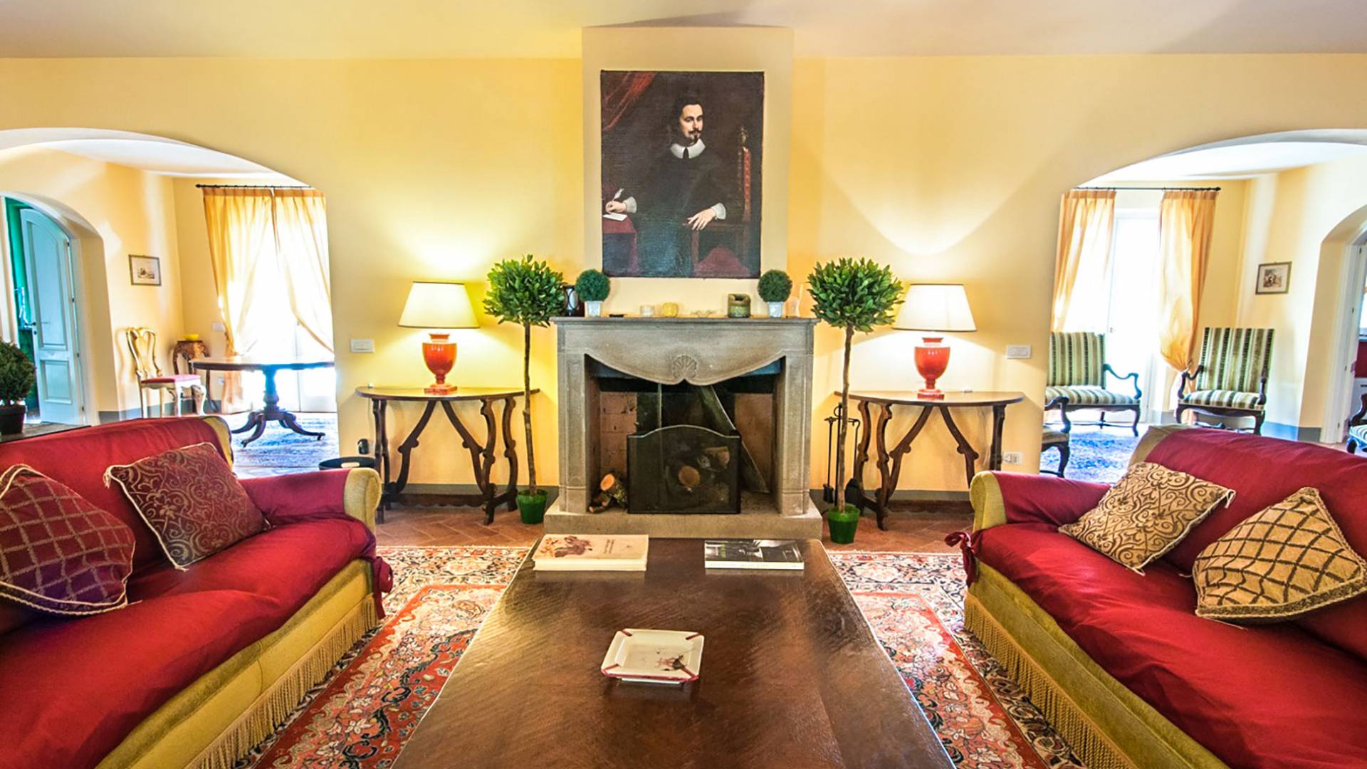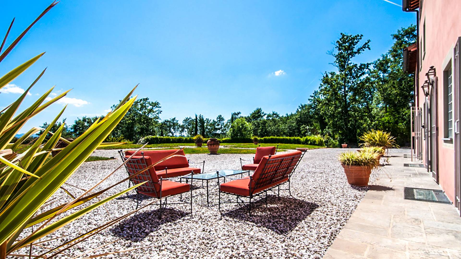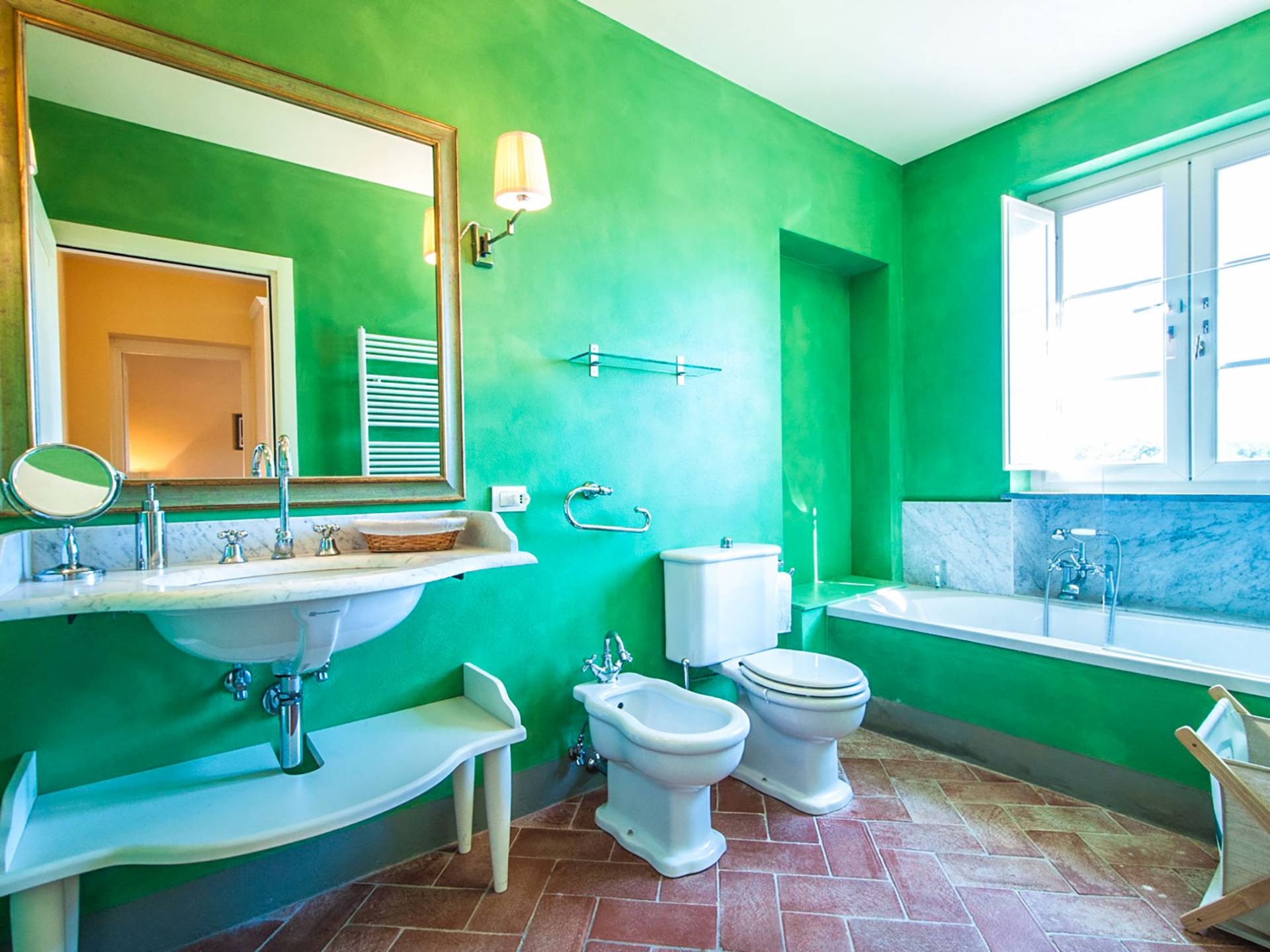 Bien que de style classique, la rénovation s'est accompagnée de matériaux contemporains, constituant une sorte de Versailles à l'échelle réduite, en Toscane. En raison de son architecture - longs couloirs avec de larges chambres en suite, grands espaces communs bien répartis dans toute la maison - cette maison est parfaite pour les grands groupes et en particulier les familles voyageant ensemble.