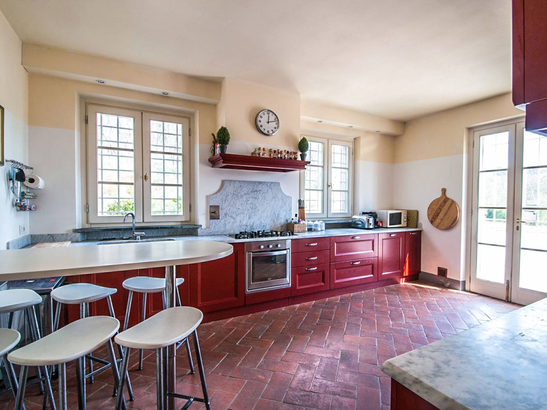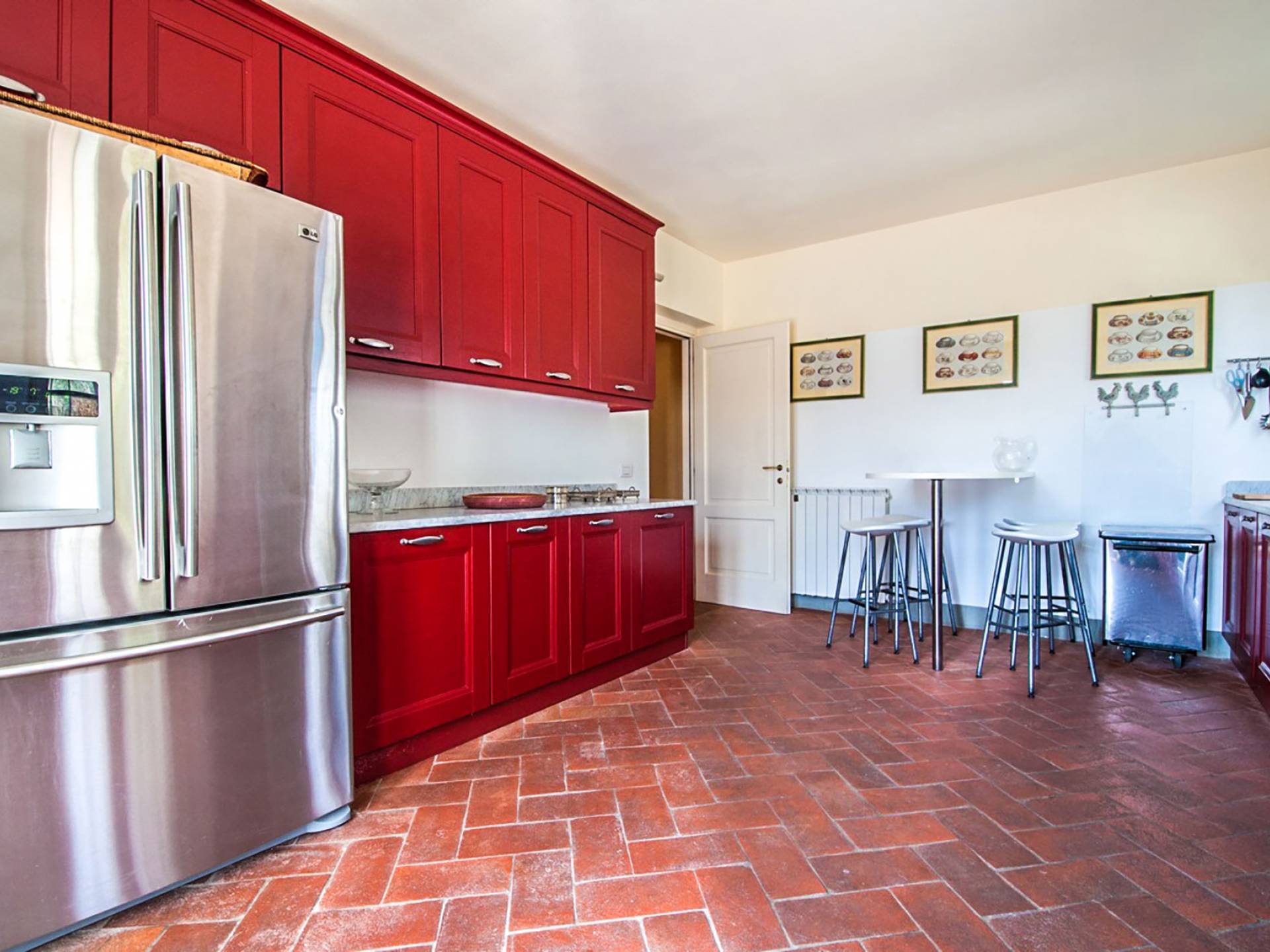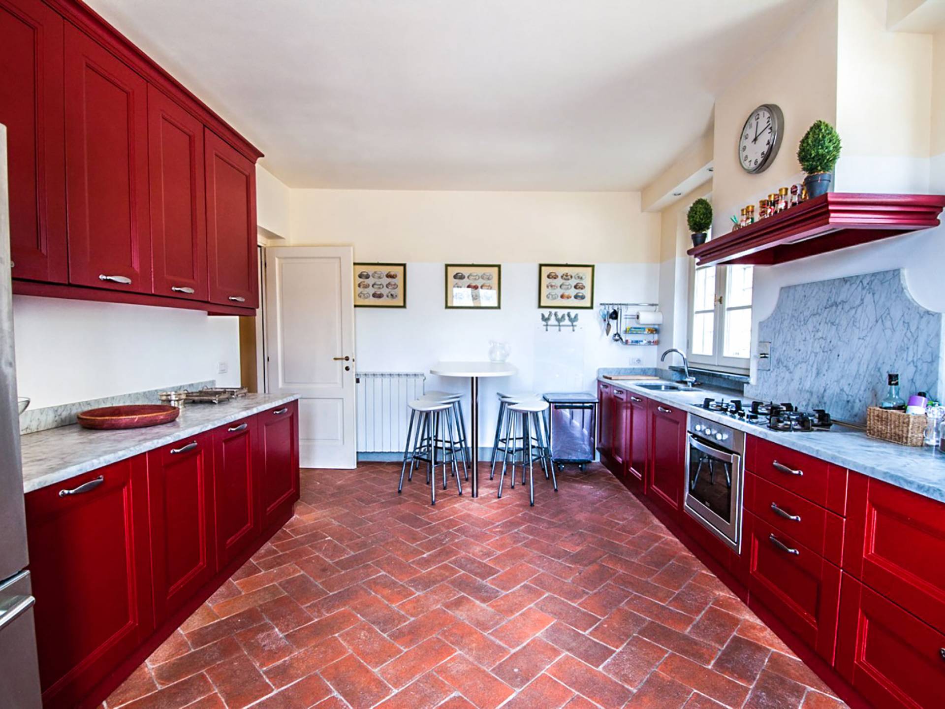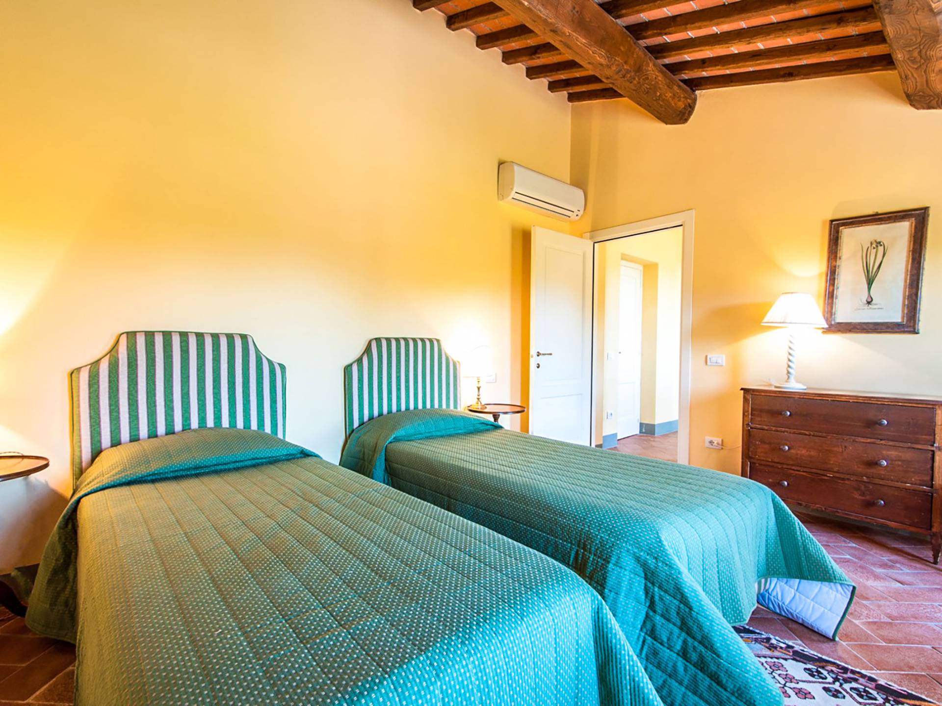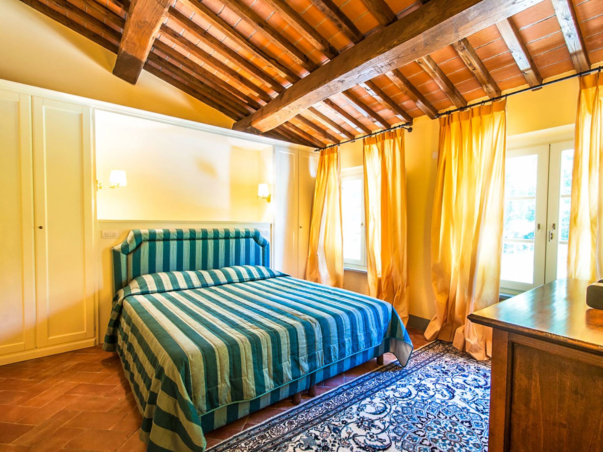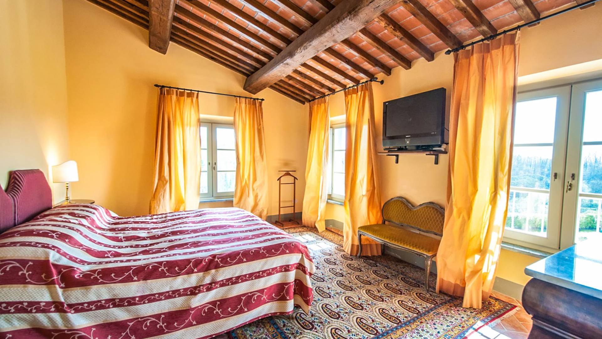 Bien que de style classique, la rénovation s'est accompagnée de matériaux contemporains, constituant une sorte de Versailles à l'échelle réduite, en Toscane. En raison de son architecture - longs couloirs avec de larges chambres en suite, grands espaces communs bien répartis dans toute la maison - cette maison est parfaite pour les grands groupes et en particulier les familles voyageant ensemble.
