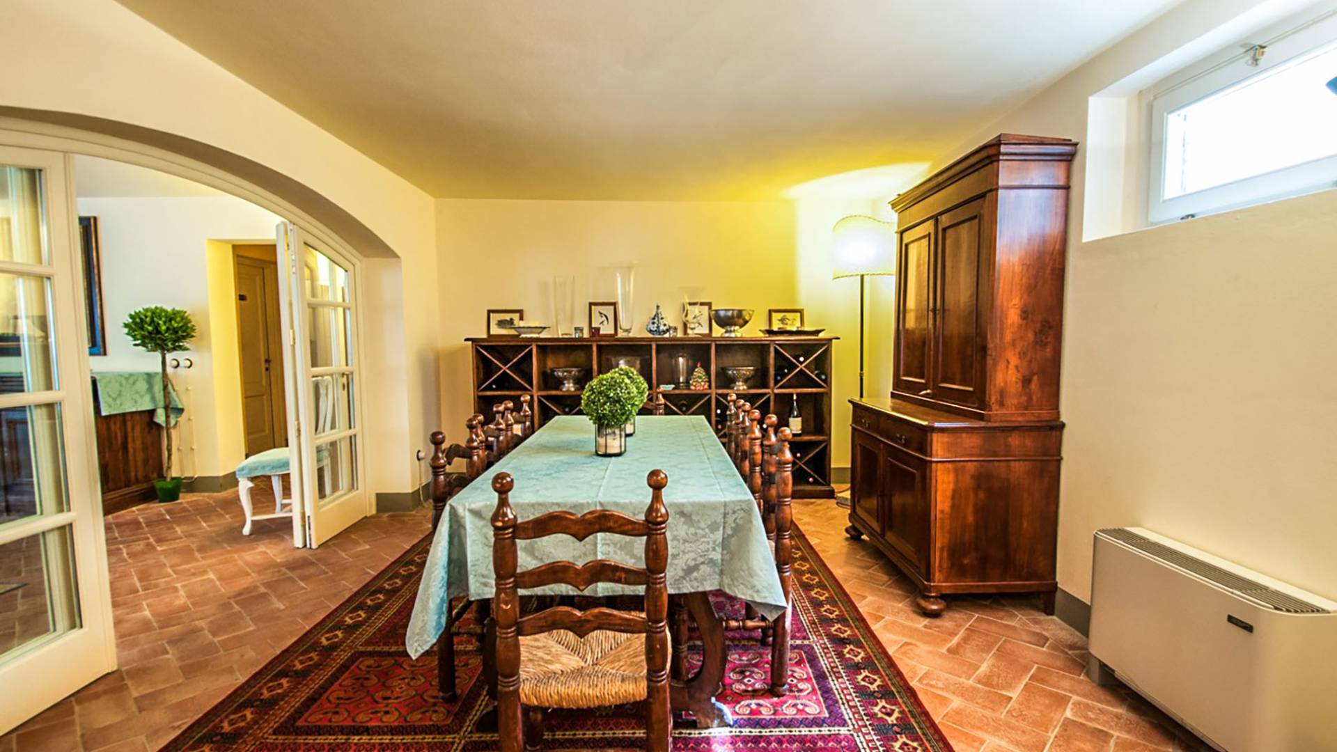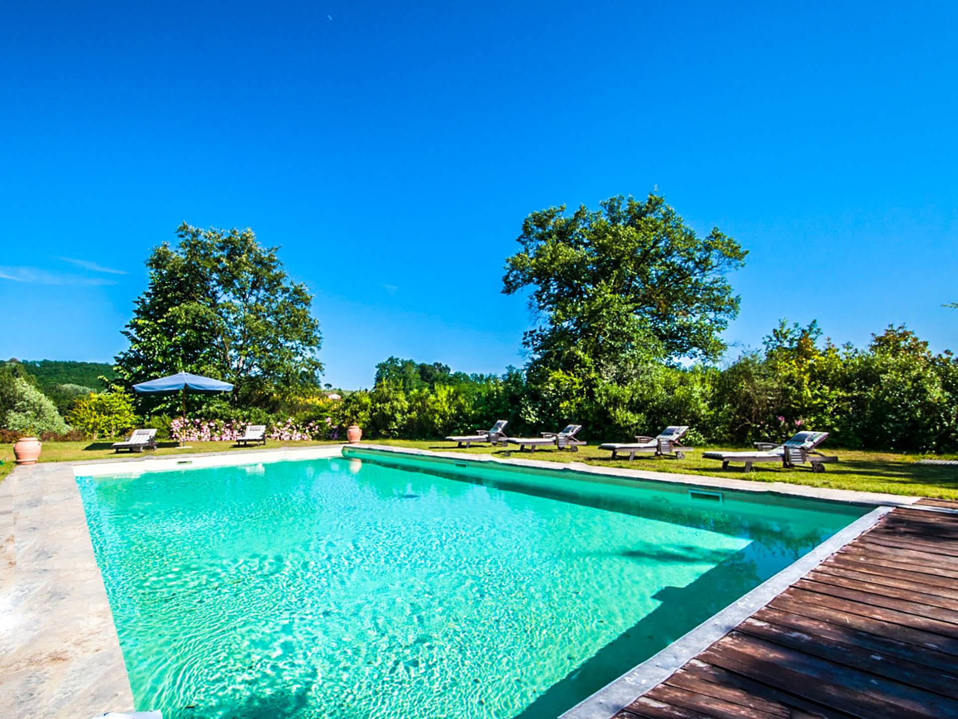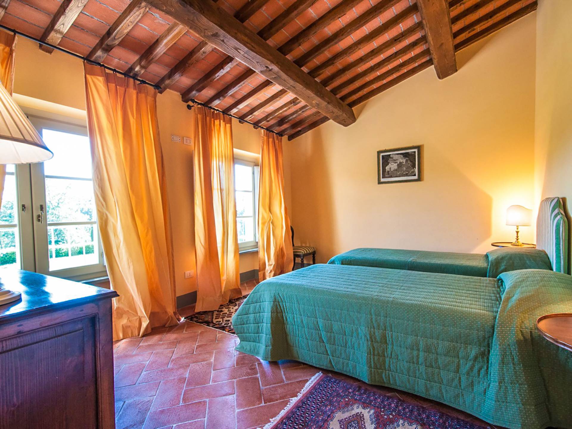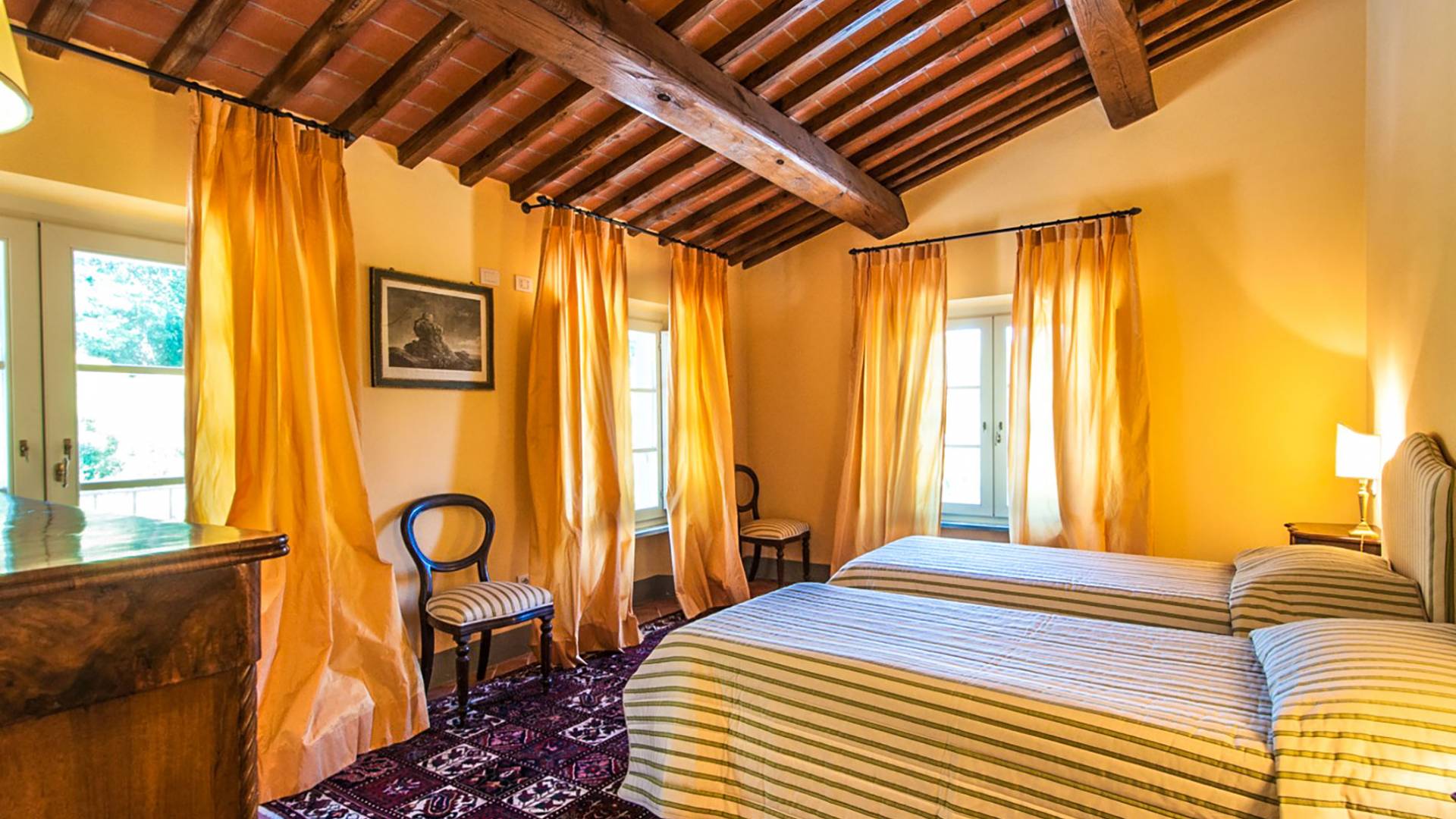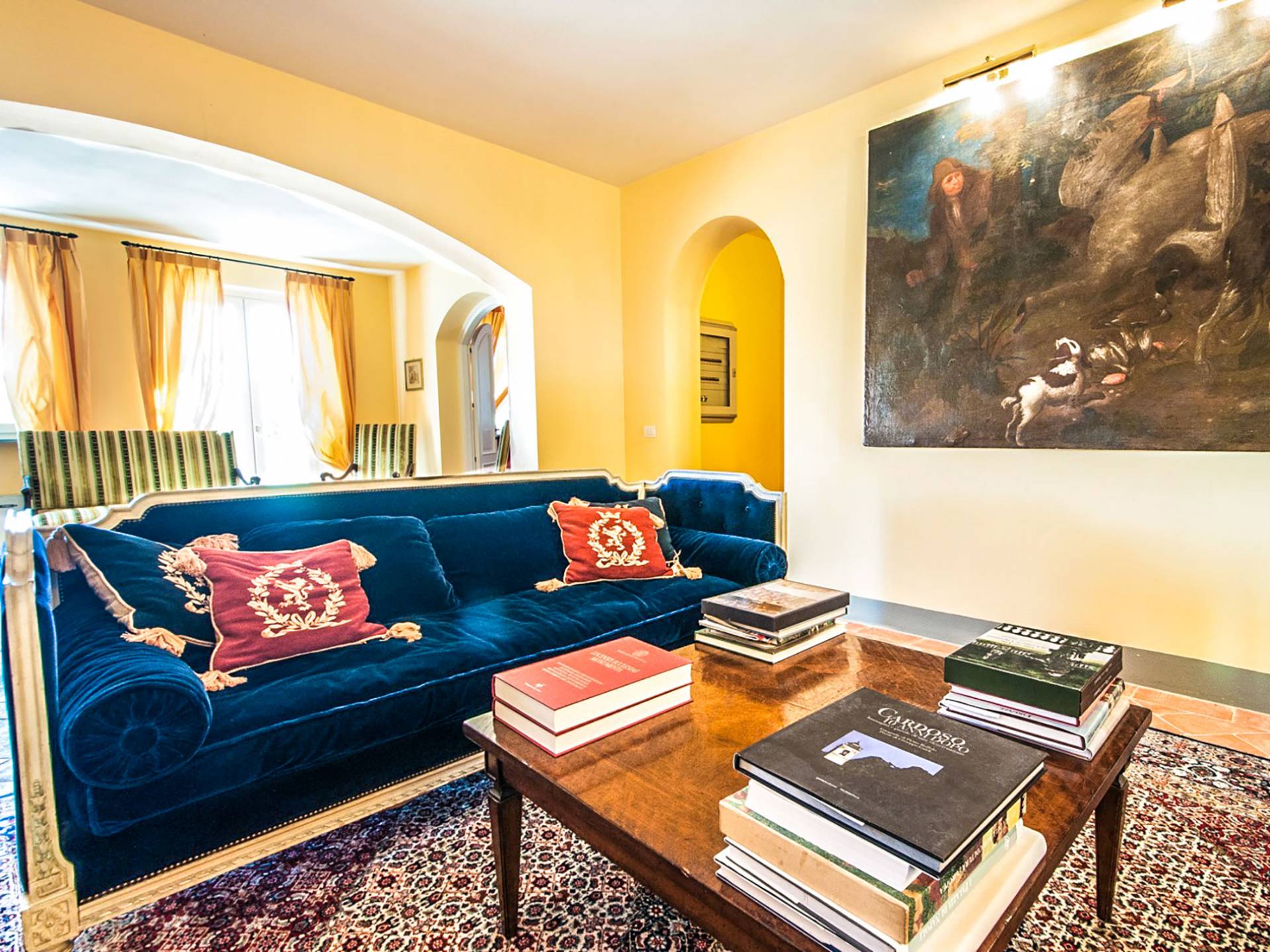 Bien que de style classique, la rénovation s'est accompagnée de matériaux contemporains, constituant une sorte de Versailles à l'échelle réduite, en Toscane. En raison de son architecture - longs couloirs avec de larges chambres en suite, grands espaces communs bien répartis dans toute la maison - cette maison est parfaite pour les grands groupes et en particulier les familles voyageant ensemble.