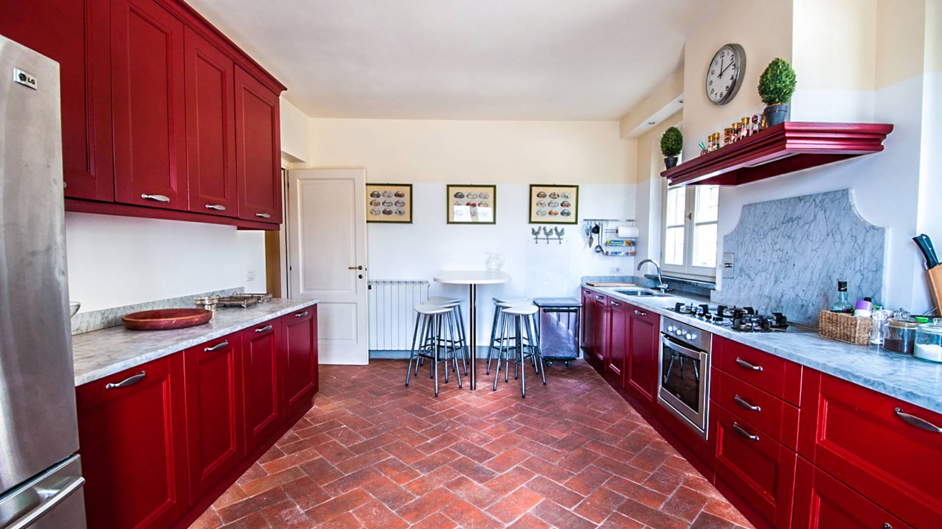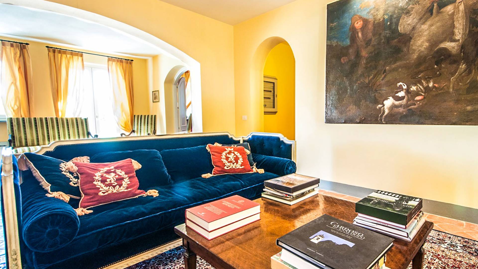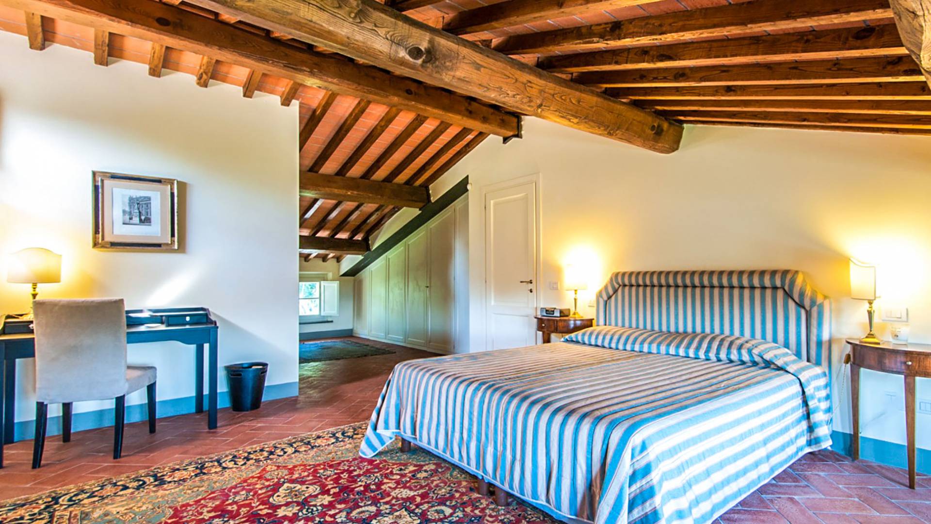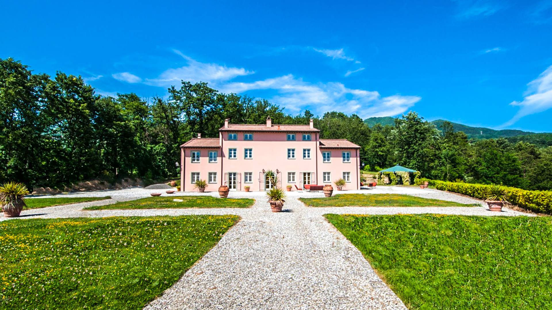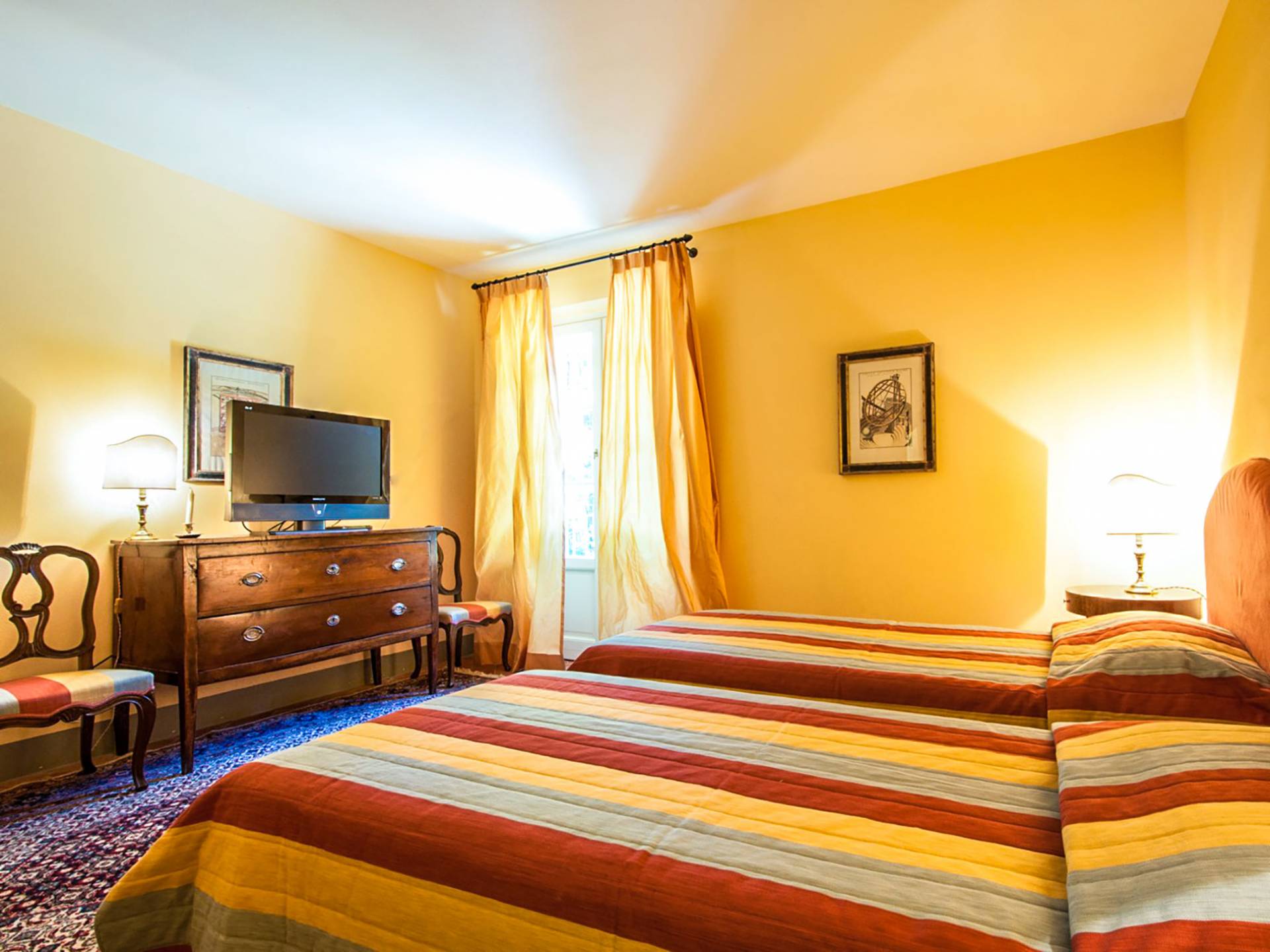 Bien que de style classique, la rénovation s'est accompagnée de matériaux contemporains, constituant une sorte de Versailles à l'échelle réduite, en Toscane. En raison de son architecture - longs couloirs avec de larges chambres en suite, grands espaces communs bien répartis dans toute la maison - cette maison est parfaite pour les grands groupes et en particulier les familles voyageant ensemble.