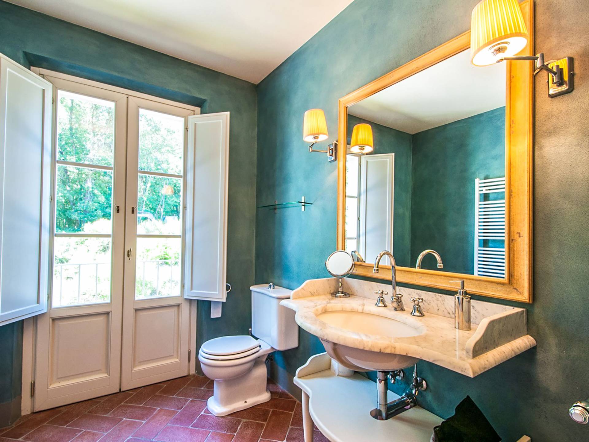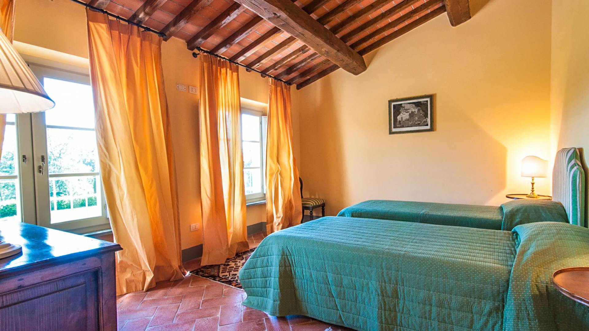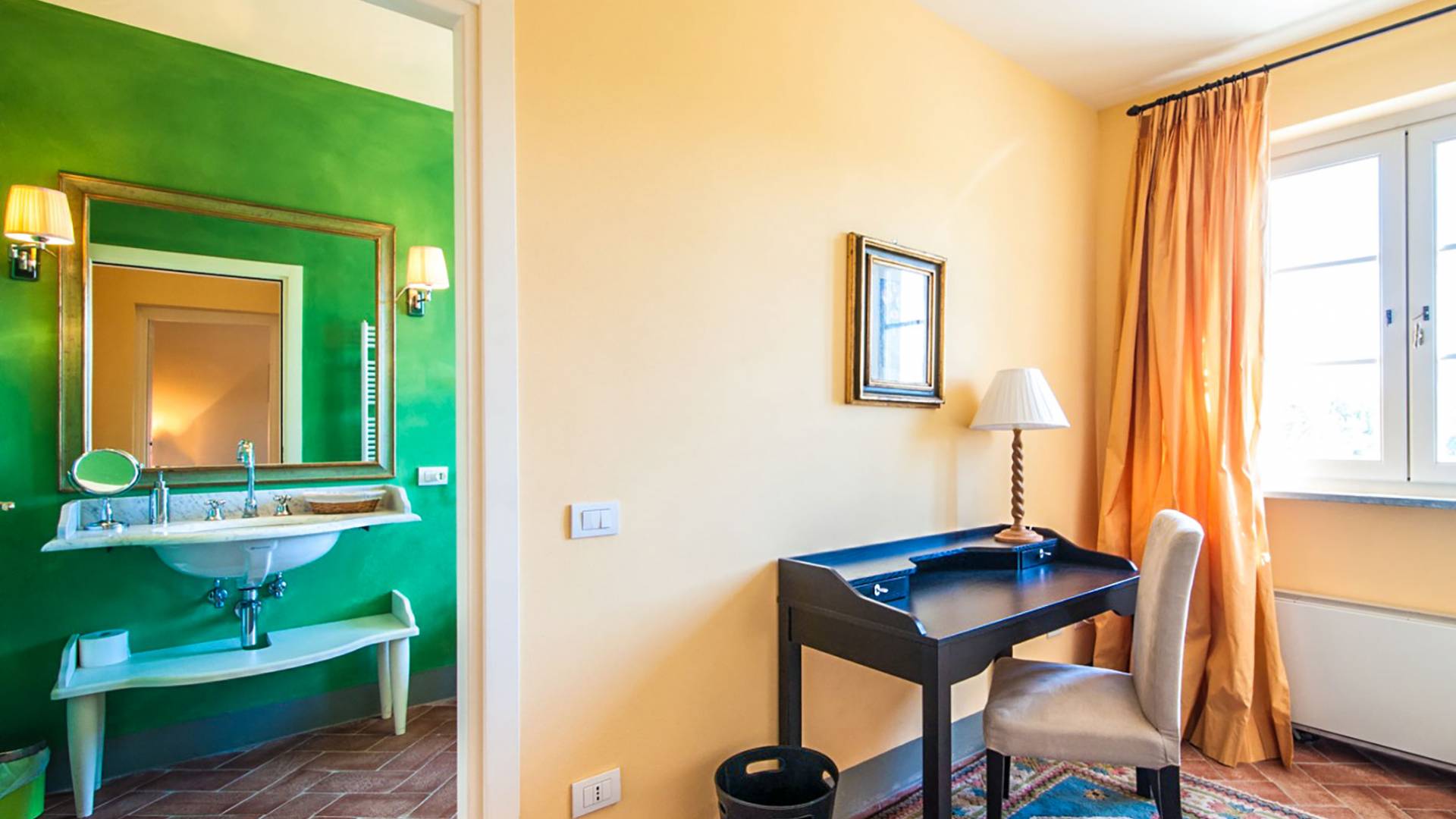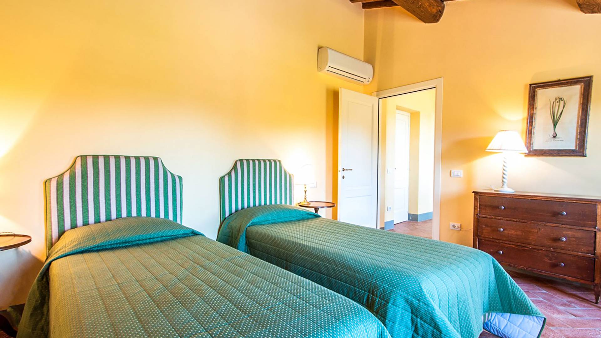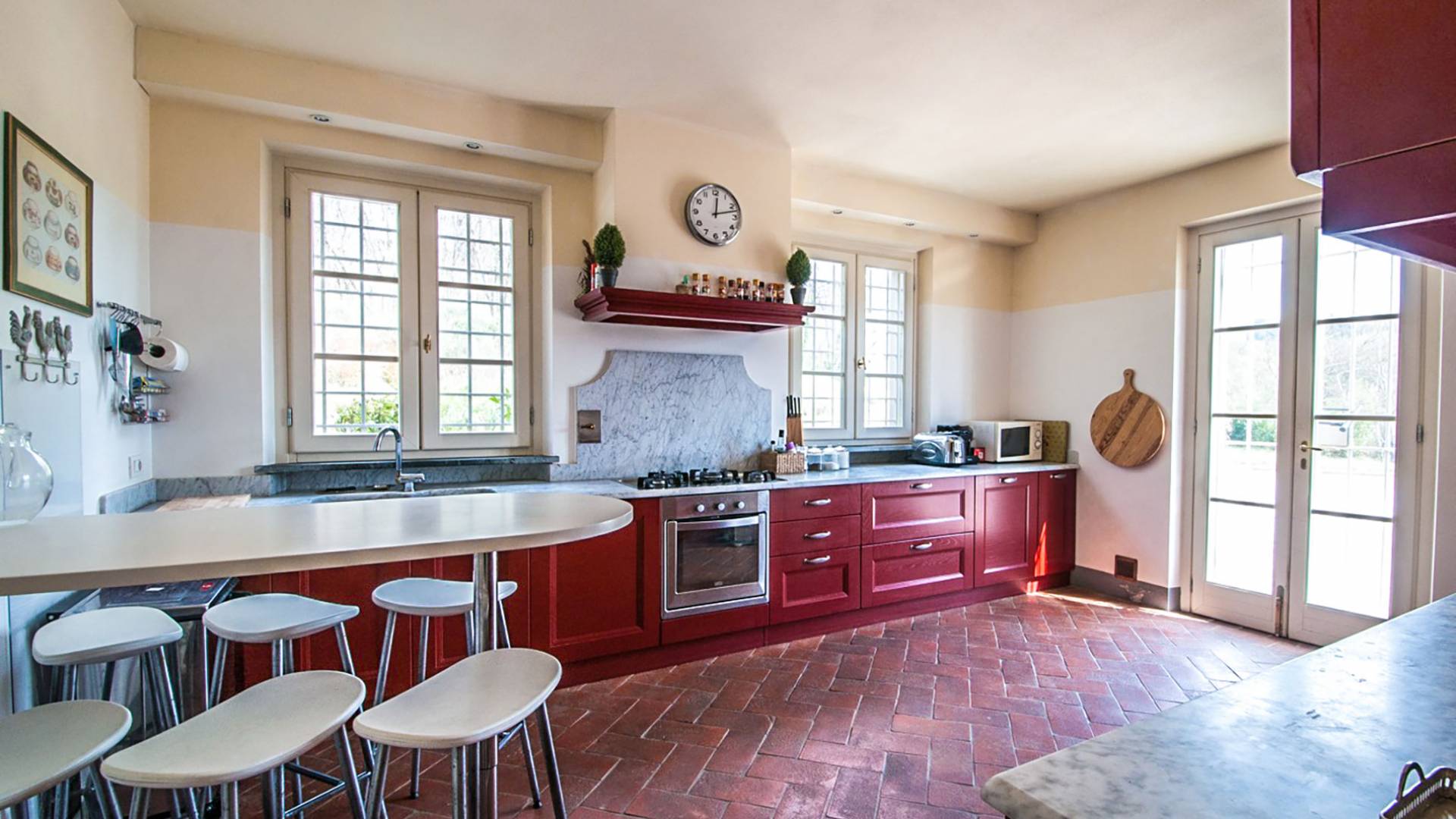Bien que de style classique, la rénovation s'est accompagnée de matériaux contemporains, constituant une sorte de Versailles à l'échelle réduite, en Toscane. En raison de son architecture - longs couloirs avec de larges chambres en suite, grands espaces communs bien répartis dans toute la maison - cette maison est parfaite pour les grands groupes et en particulier les familles voyageant ensemble.