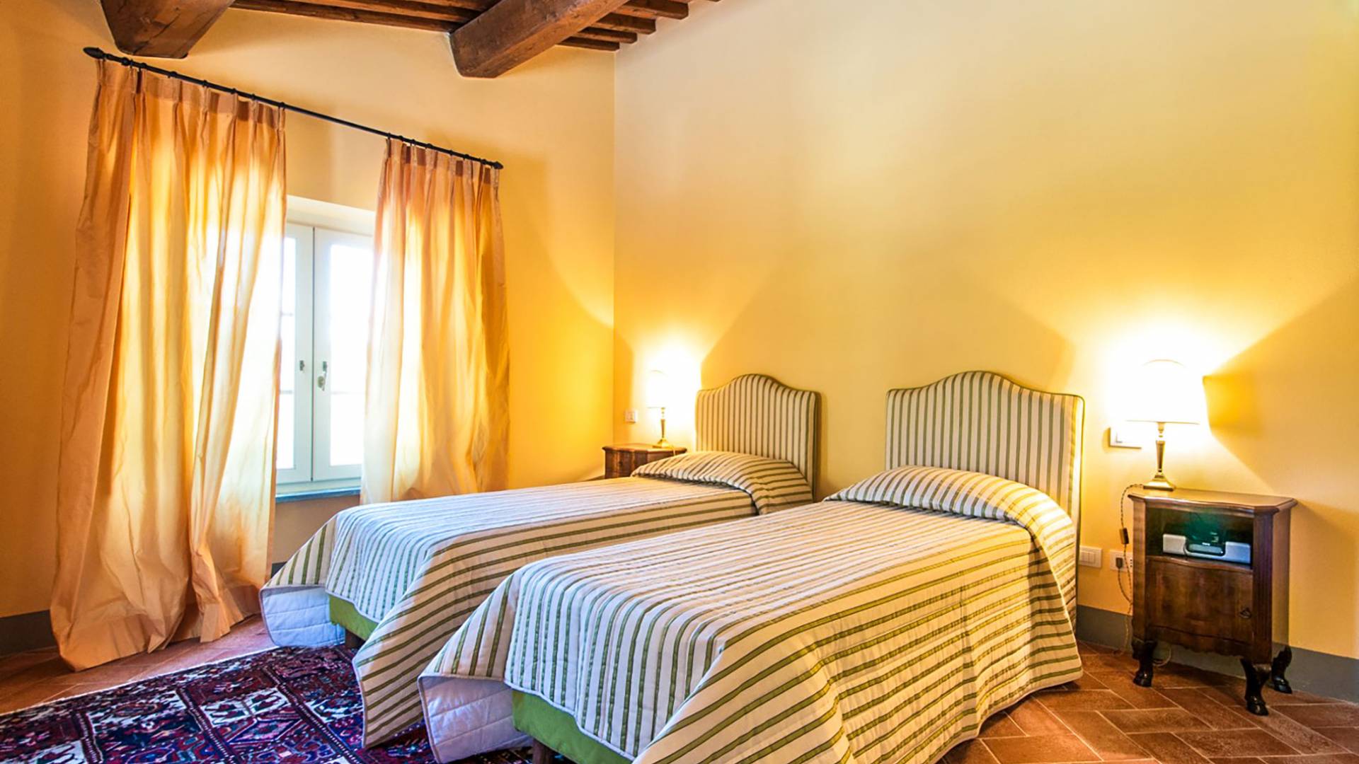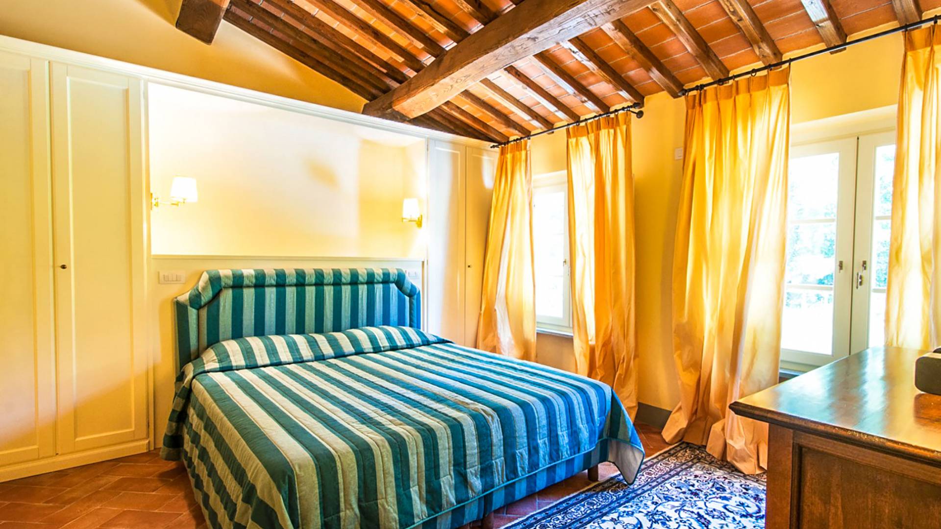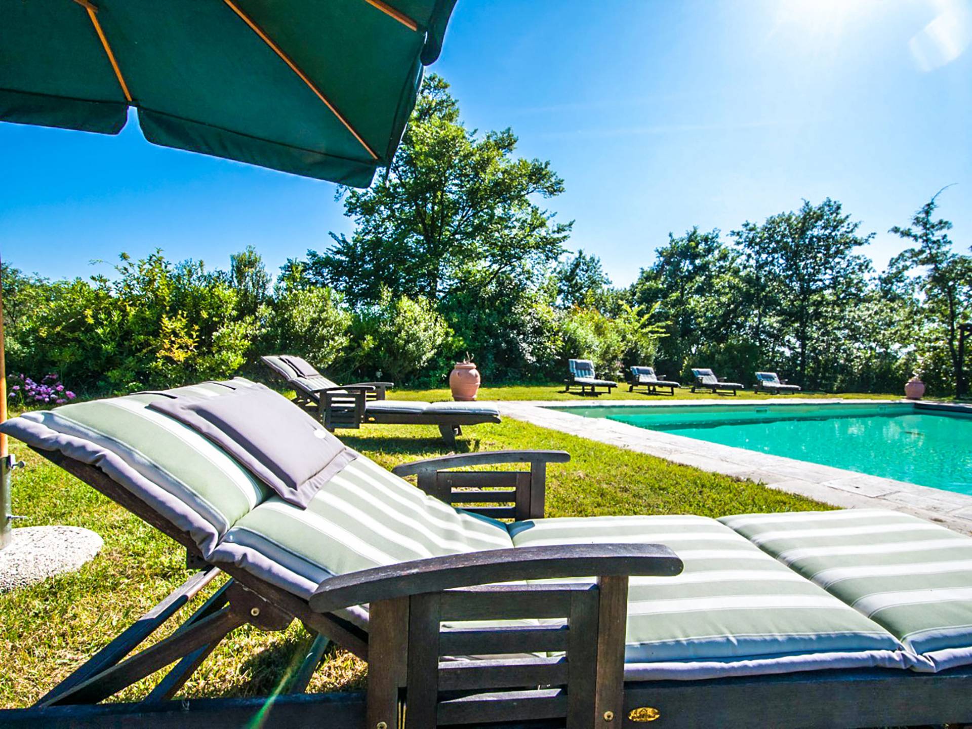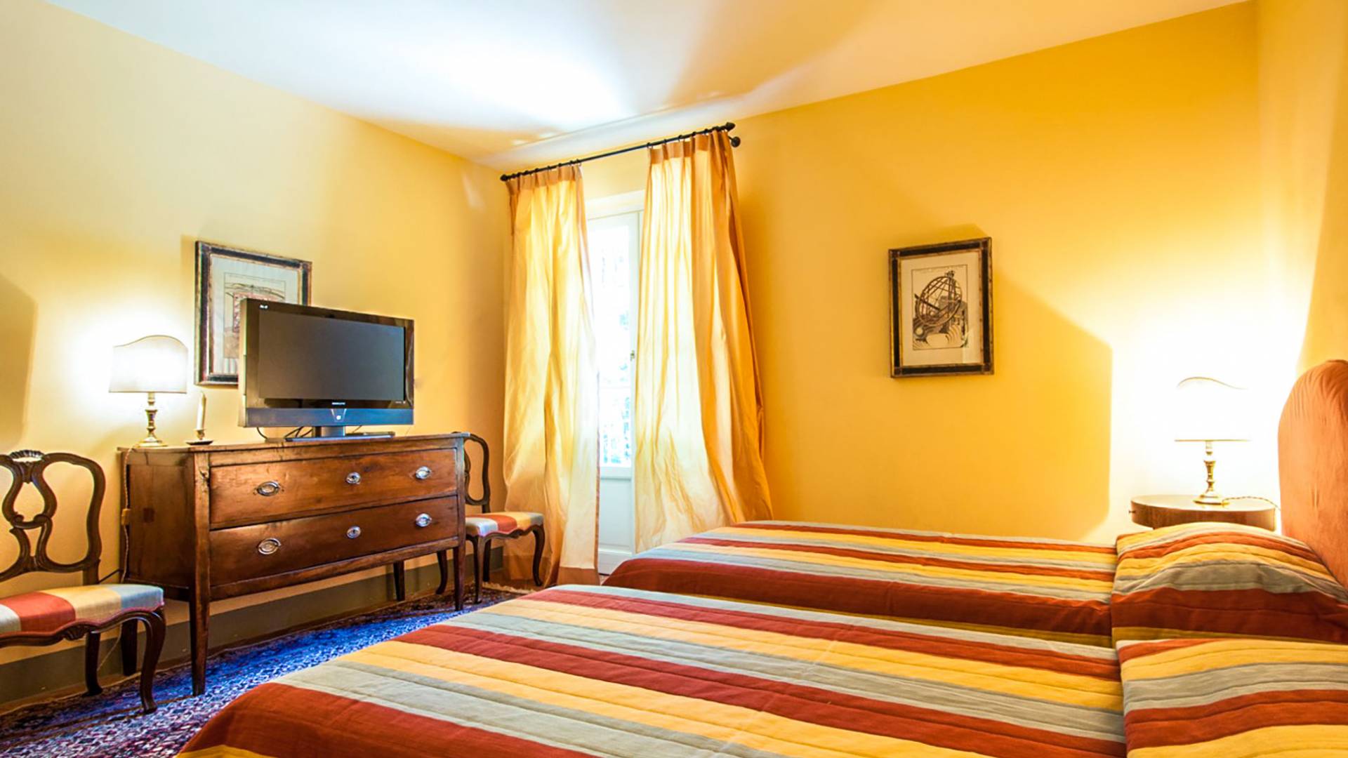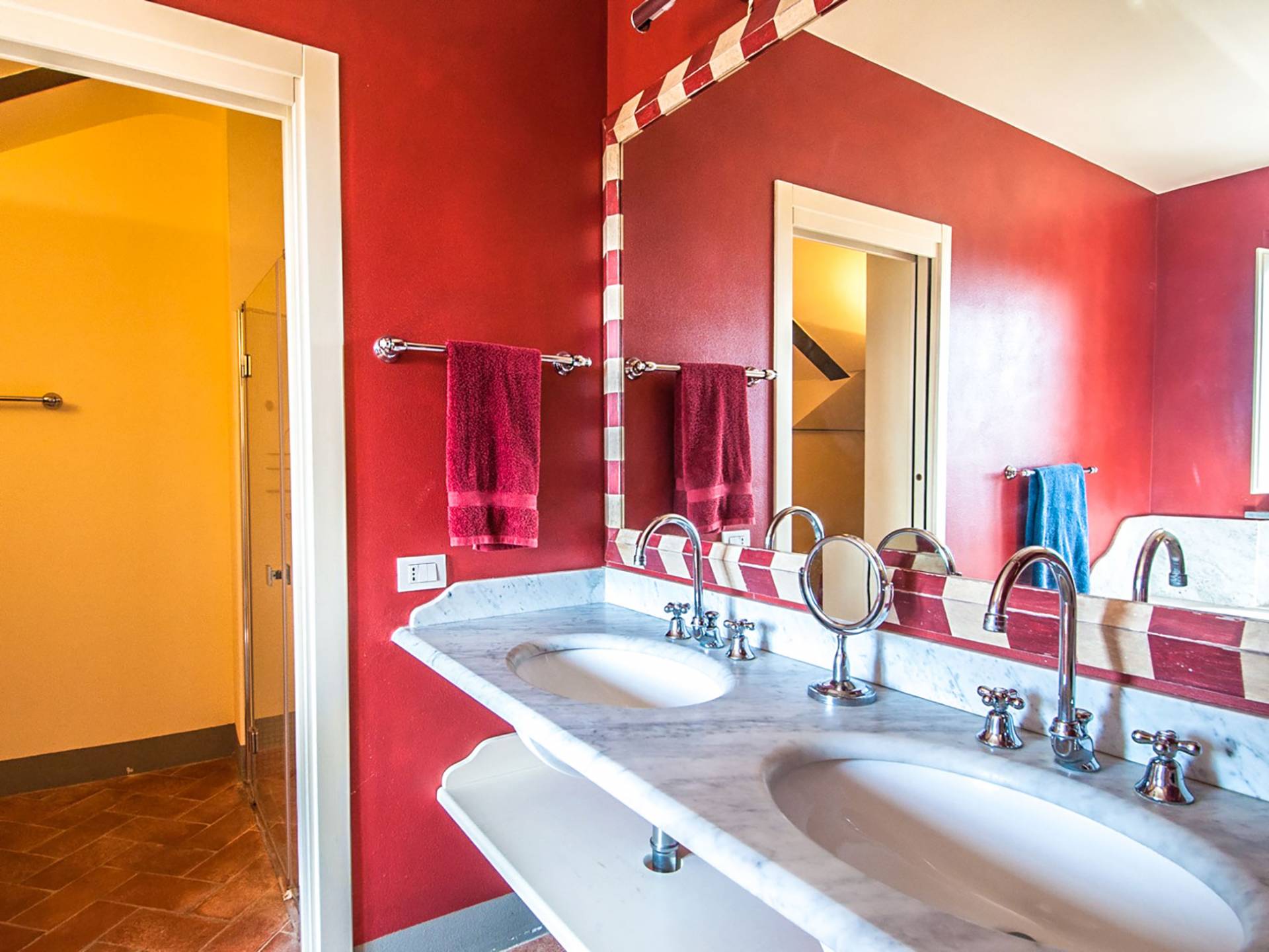 Bien que de style classique, la rénovation s'est accompagnée de matériaux contemporains, constituant une sorte de Versailles à l'échelle réduite, en Toscane. En raison de son architecture - longs couloirs avec de larges chambres en suite, grands espaces communs bien répartis dans toute la maison - cette maison est parfaite pour les grands groupes et en particulier les familles voyageant ensemble.
