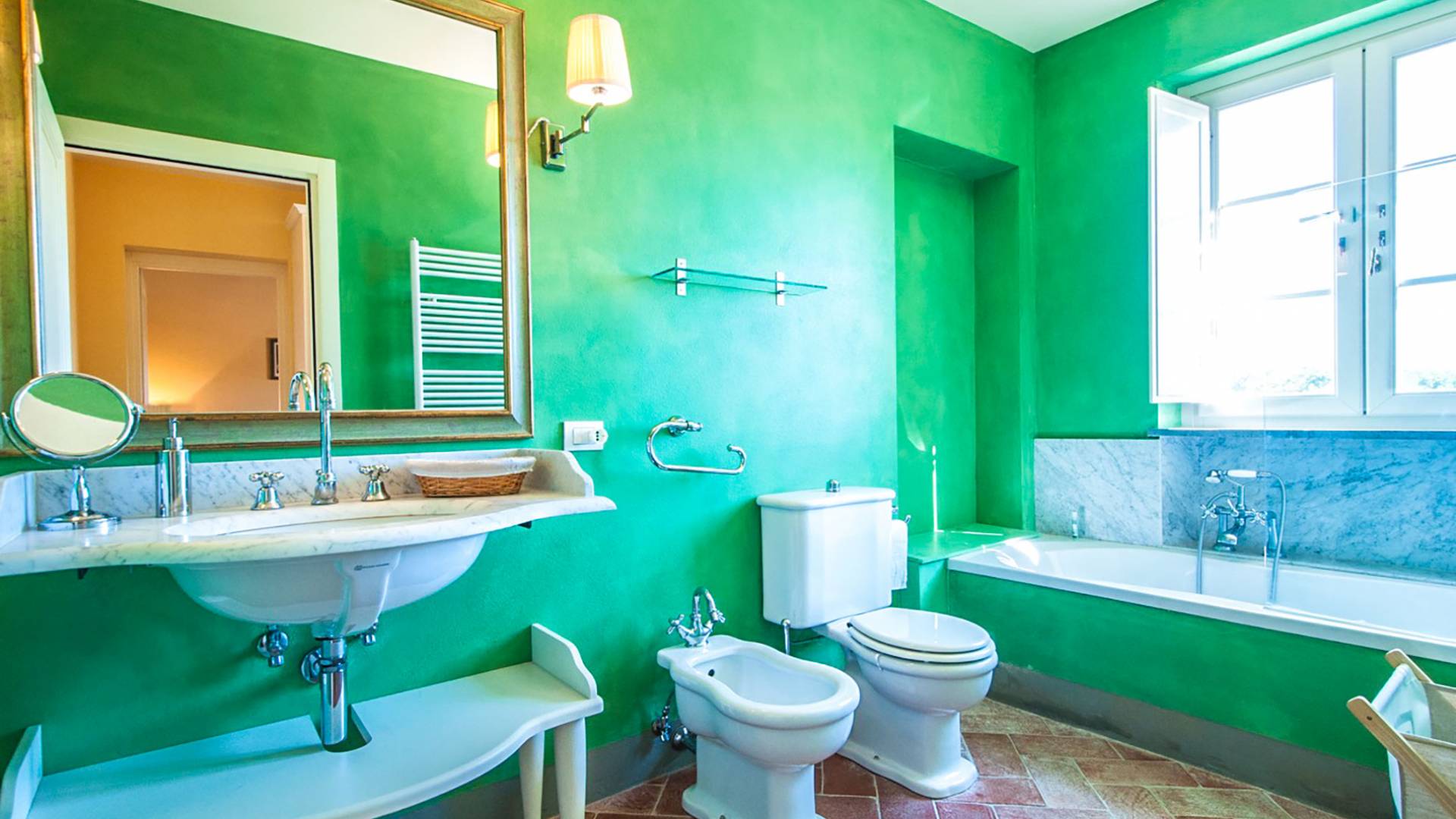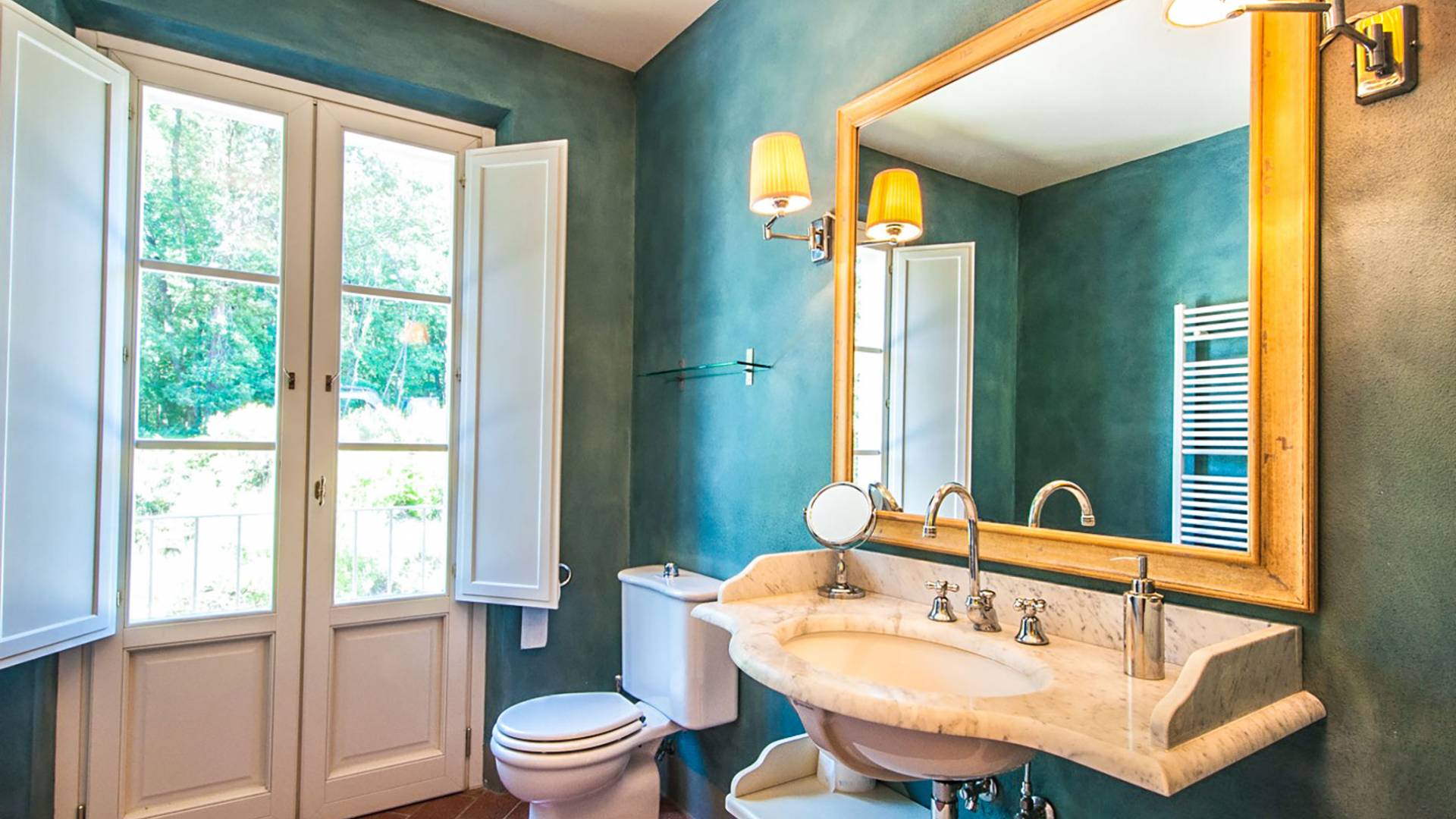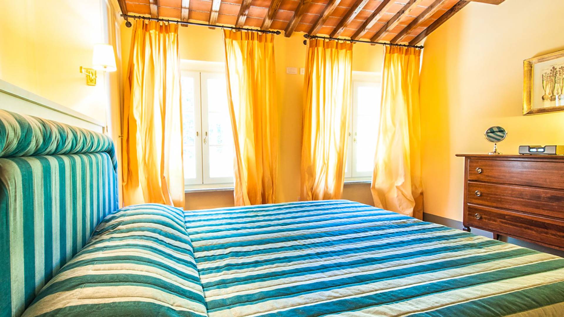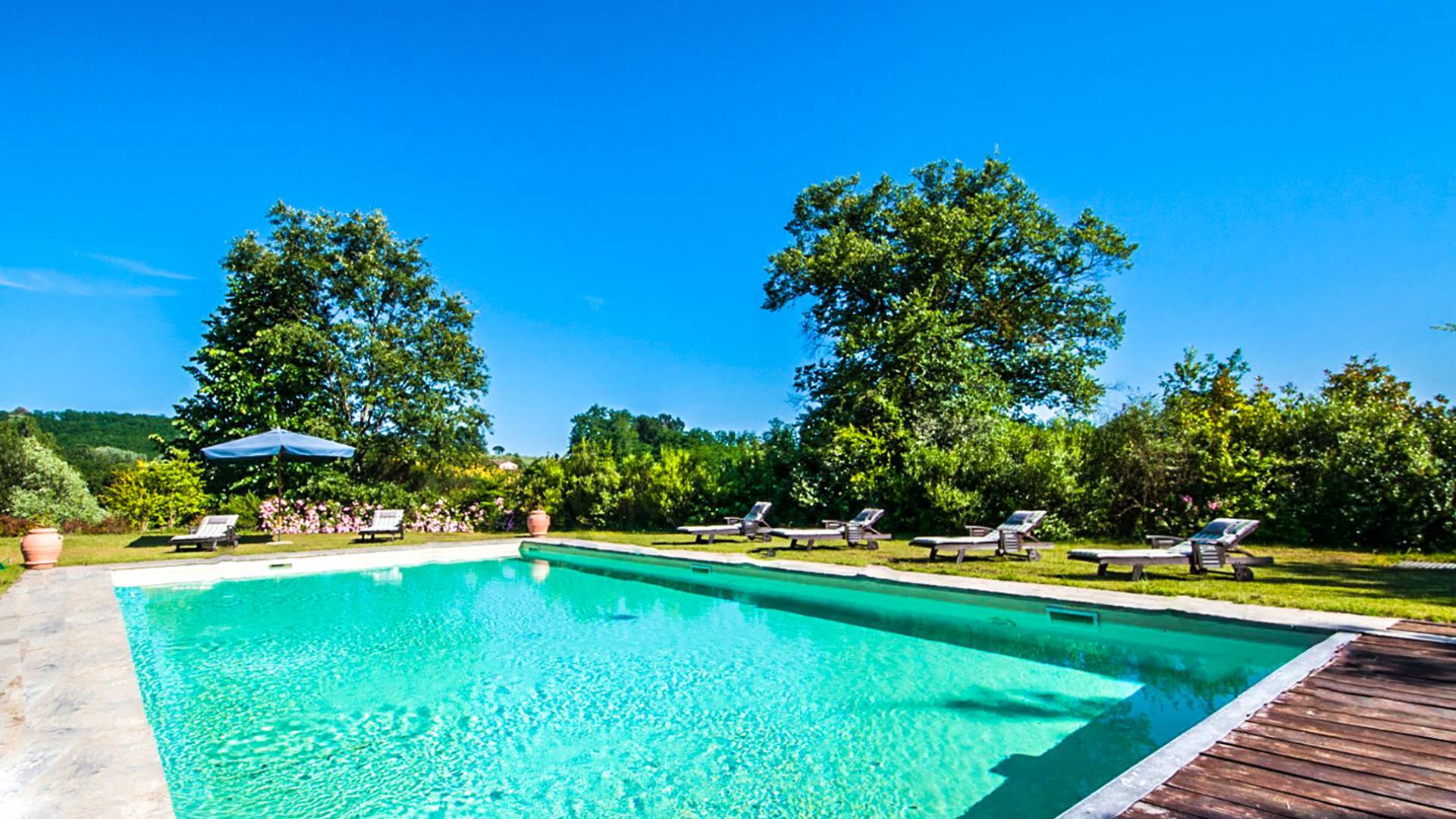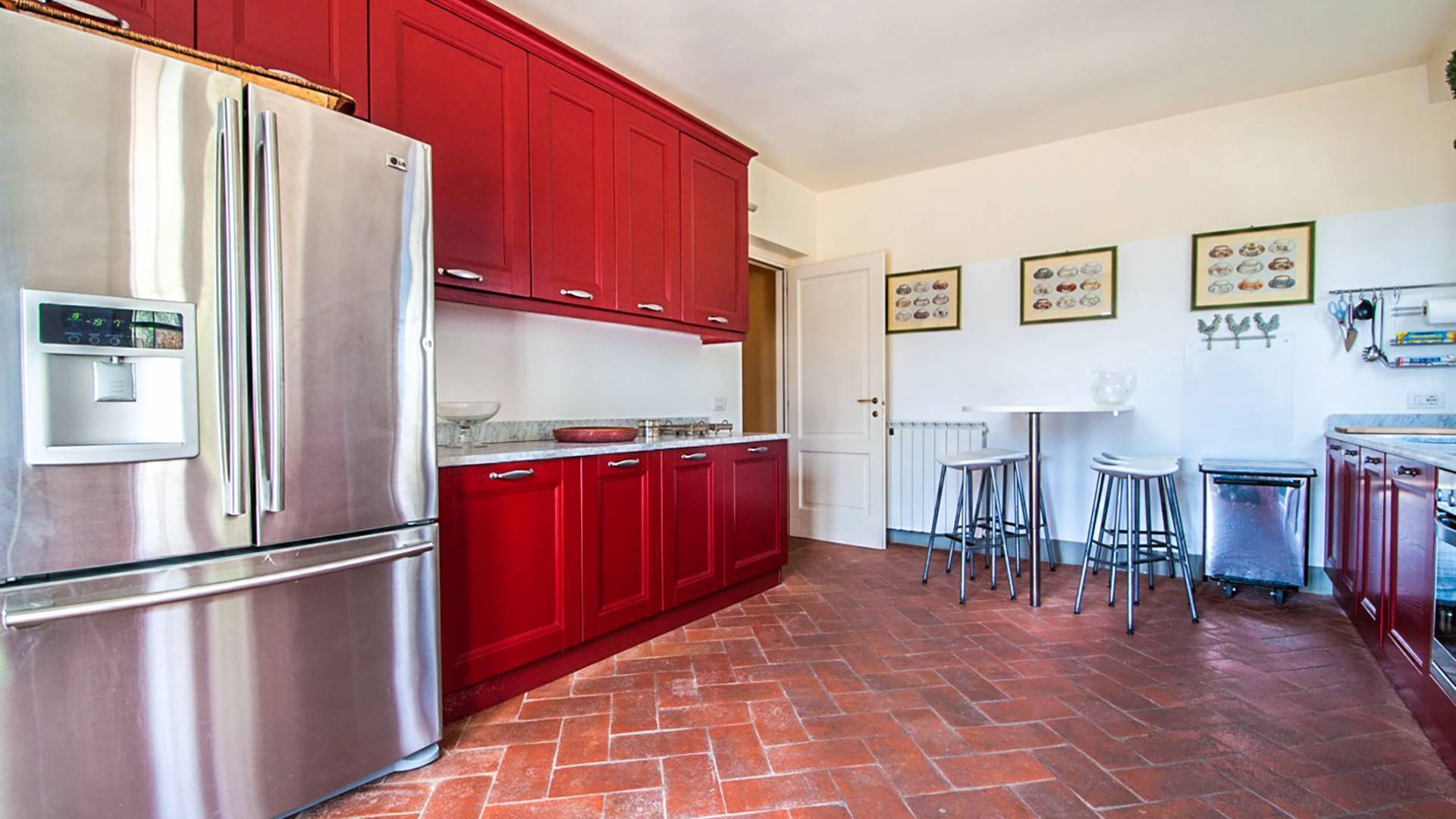 Bien que de style classique, la rénovation s'est accompagnée de matériaux contemporains, constituant une sorte de Versailles à l'échelle réduite, en Toscane. En raison de son architecture - longs couloirs avec de larges chambres en suite, grands espaces communs bien répartis dans toute la maison - cette maison est parfaite pour les grands groupes et en particulier les familles voyageant ensemble.