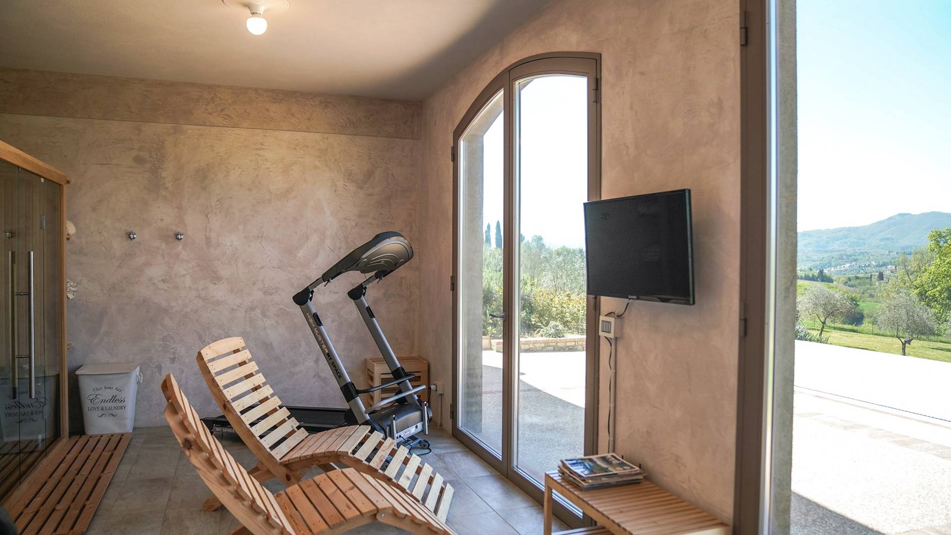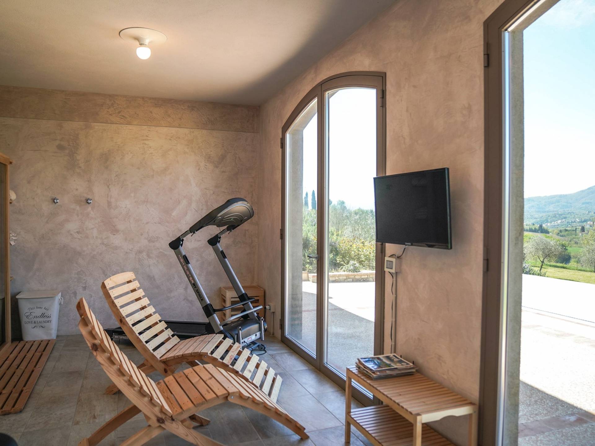 La Villa Il Palagio Tuscany met à la disposition de ses hôtes une piscine d'eau salée surplombant la vallée, un grand solarium près d'un petit espace détente avec sauna et zone de gymnastique avec tapis roulant, vélo d'exercice, salle de bain et douche séparées. Vous pouvez déjeuner ou dîner dehors sur une splendide terrasse qui est le cadre idéal pour savourer une bonne cuisine, la compagnie de sa famille ou d'un groupe d'amis dans le climat toscan agréable.