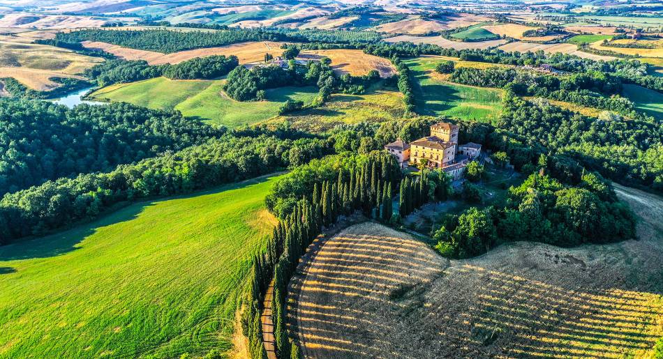 Il y a des lieux qui parviennent à conserver la beauté dans le temps et à faire revivre le plaisir du passé avec leur charme intemporel. La Villa Murlo n'est que l'une d'entre elles. Les résidences de campagne au sein d'un domaine de plus de 600 hectares se trouvaient au cœur du Val d'Orcia entre Sienne et Montalcino.