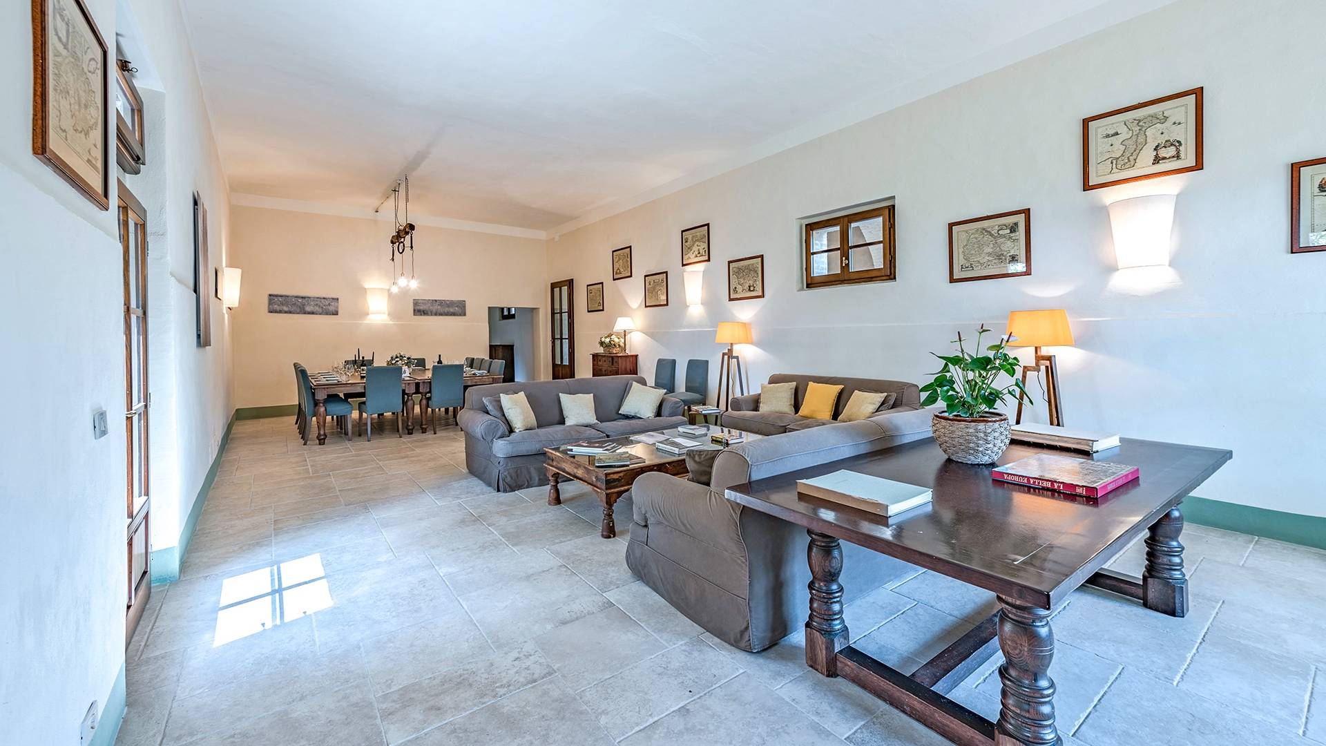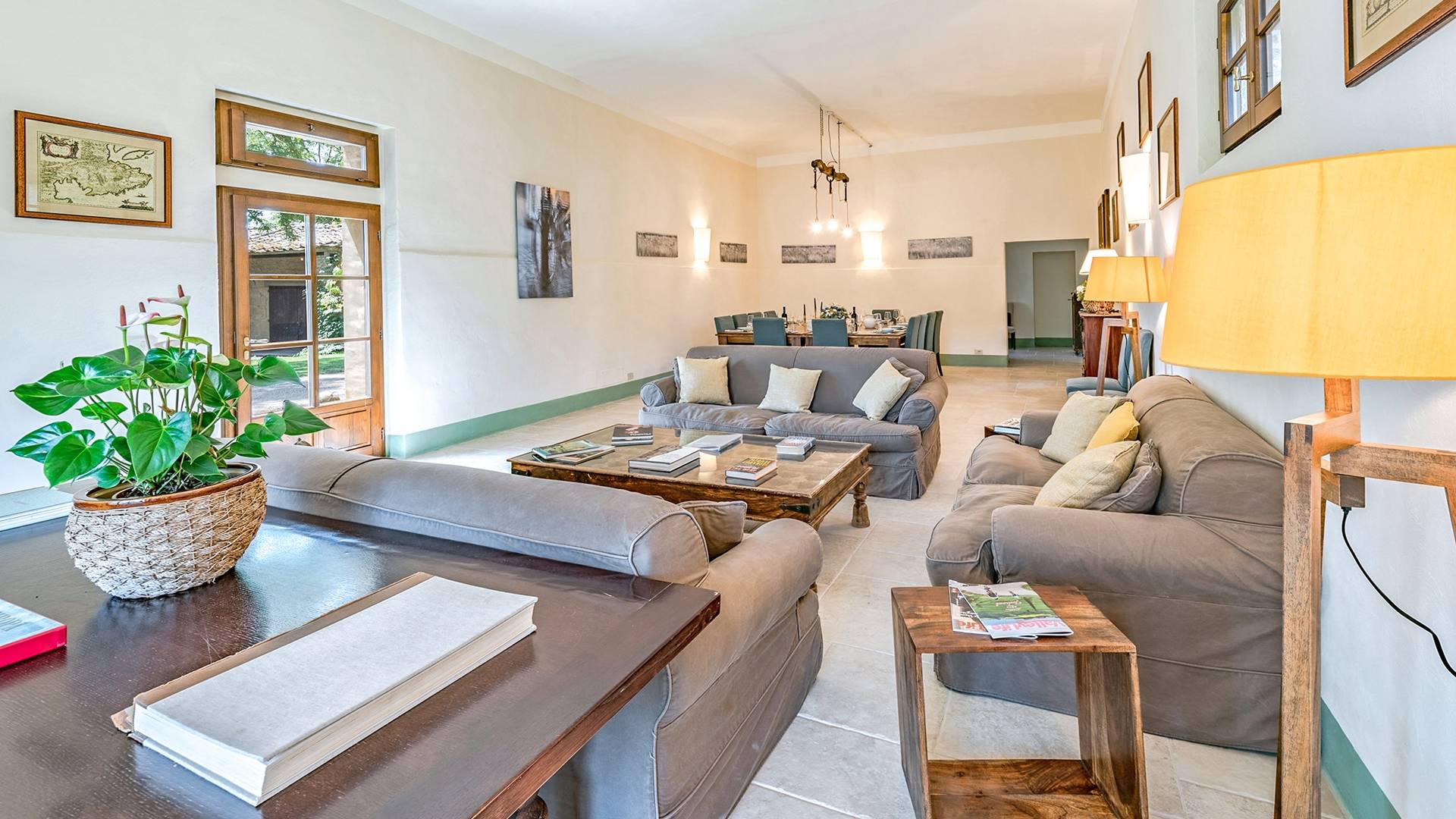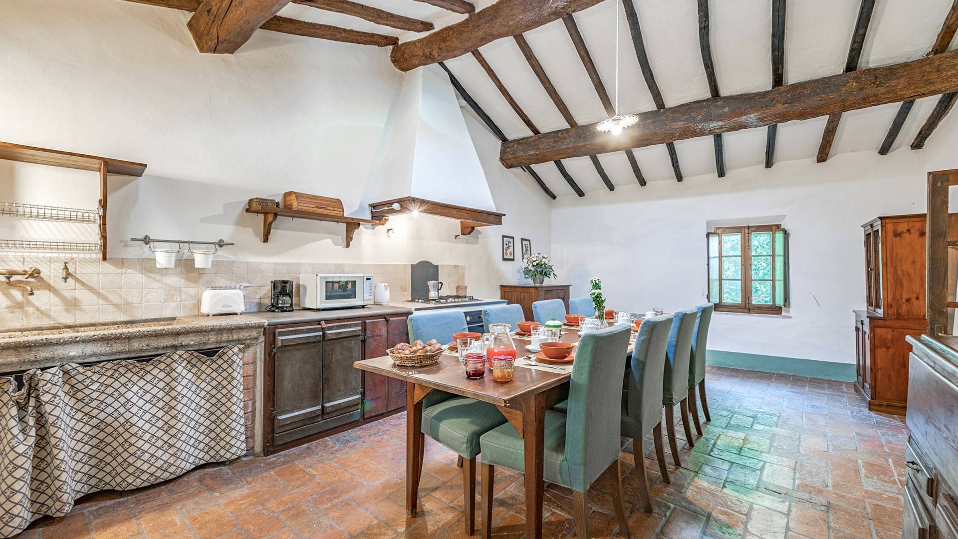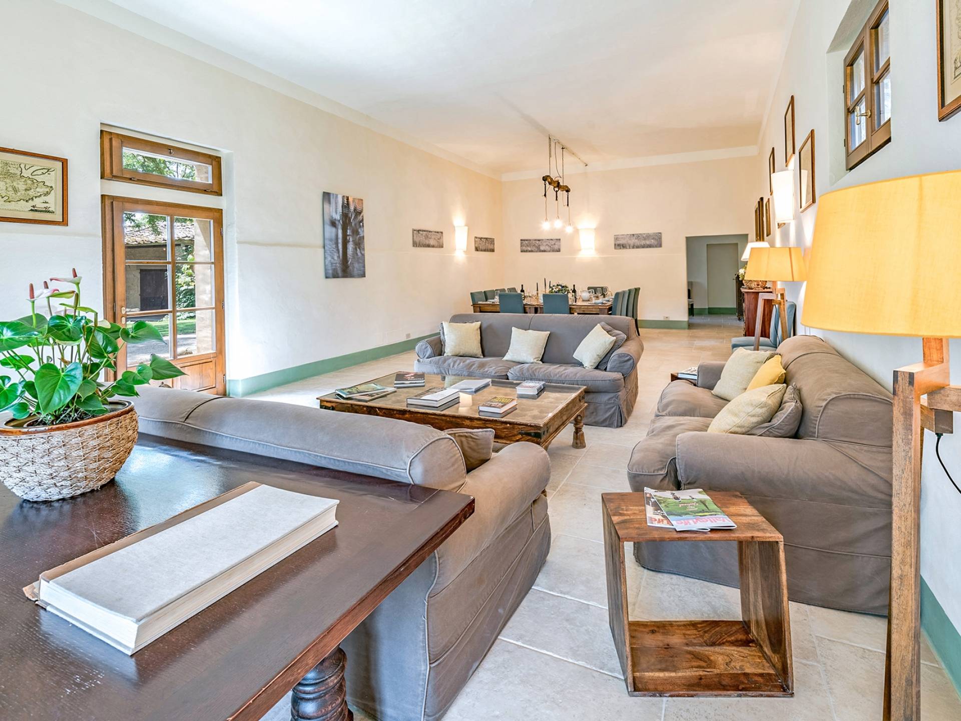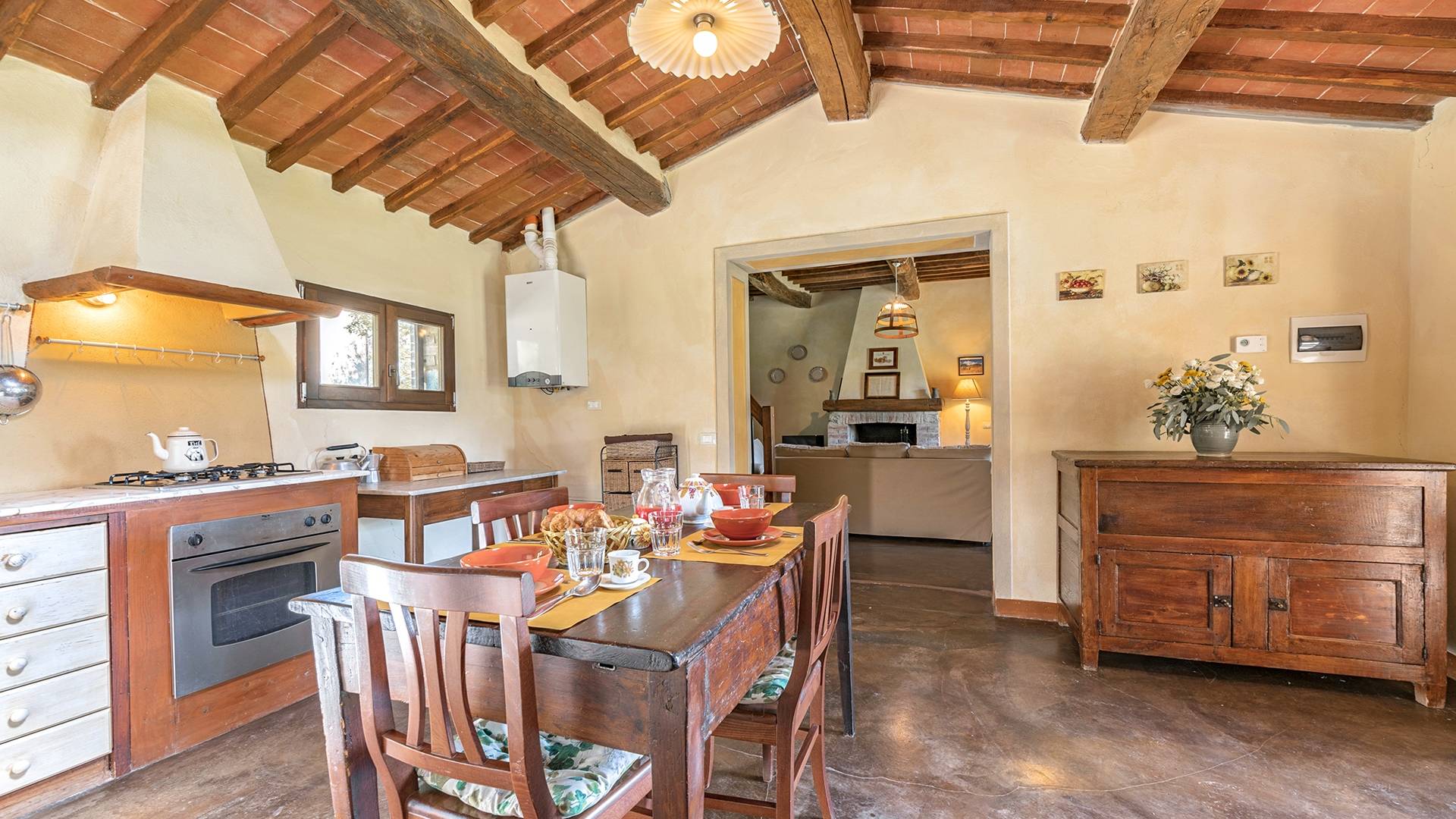 Vivre des vacances ici, ce sera comme s'immerger dans une autre vie, dans une autre dimension. Tout est en effet conçu pour accueillir le touriste dans un lieu à l'authenticité intemporelle. Dans la grande pièce du rez-de-chaussée de la maison patronale, à l'origine utilisée comme entrepôt mais ensuite restaurée et transformée en pièce de vie principale, de grandes fenêtres et portes en bois s'ouvrent sur le jardin où un patio couvert et une seconde pergola sont à disposition des hôtes pour les dîners. open ou autres moments de vraie convivialité.