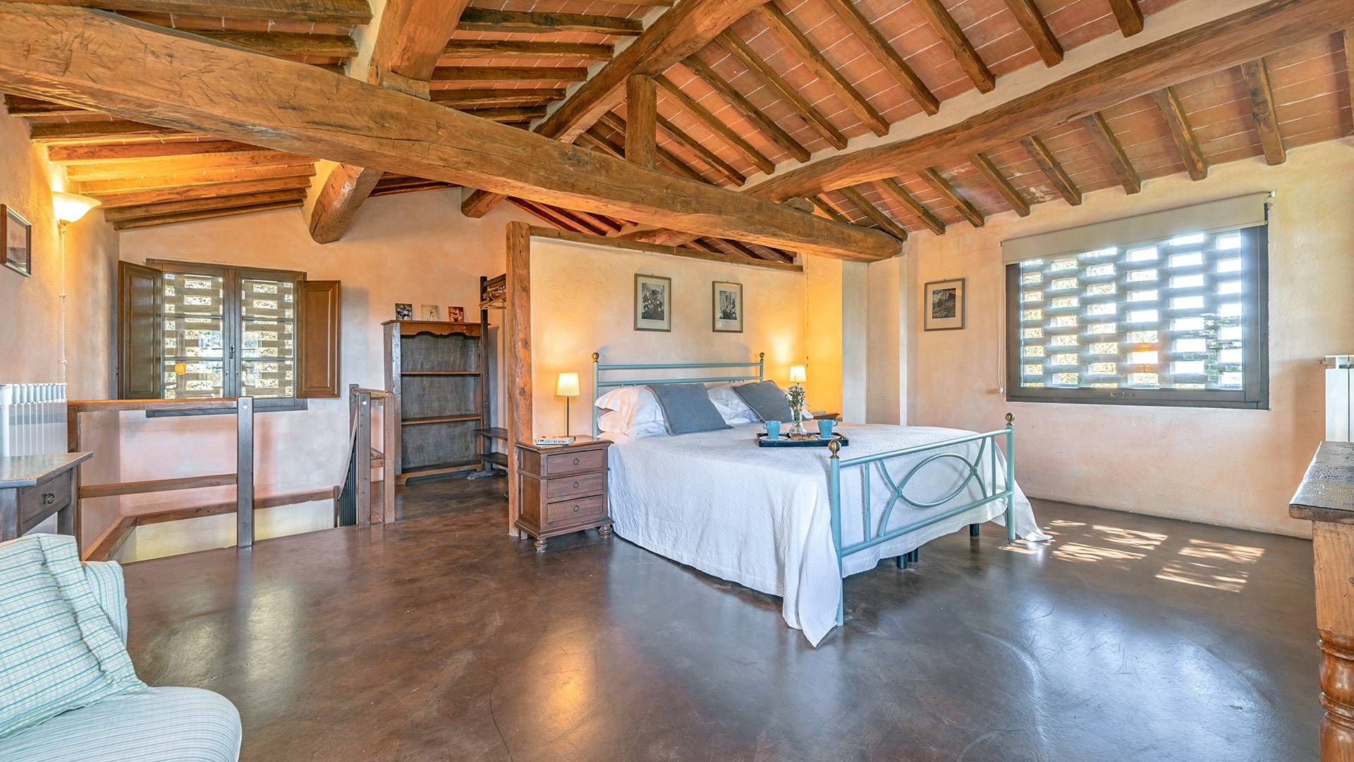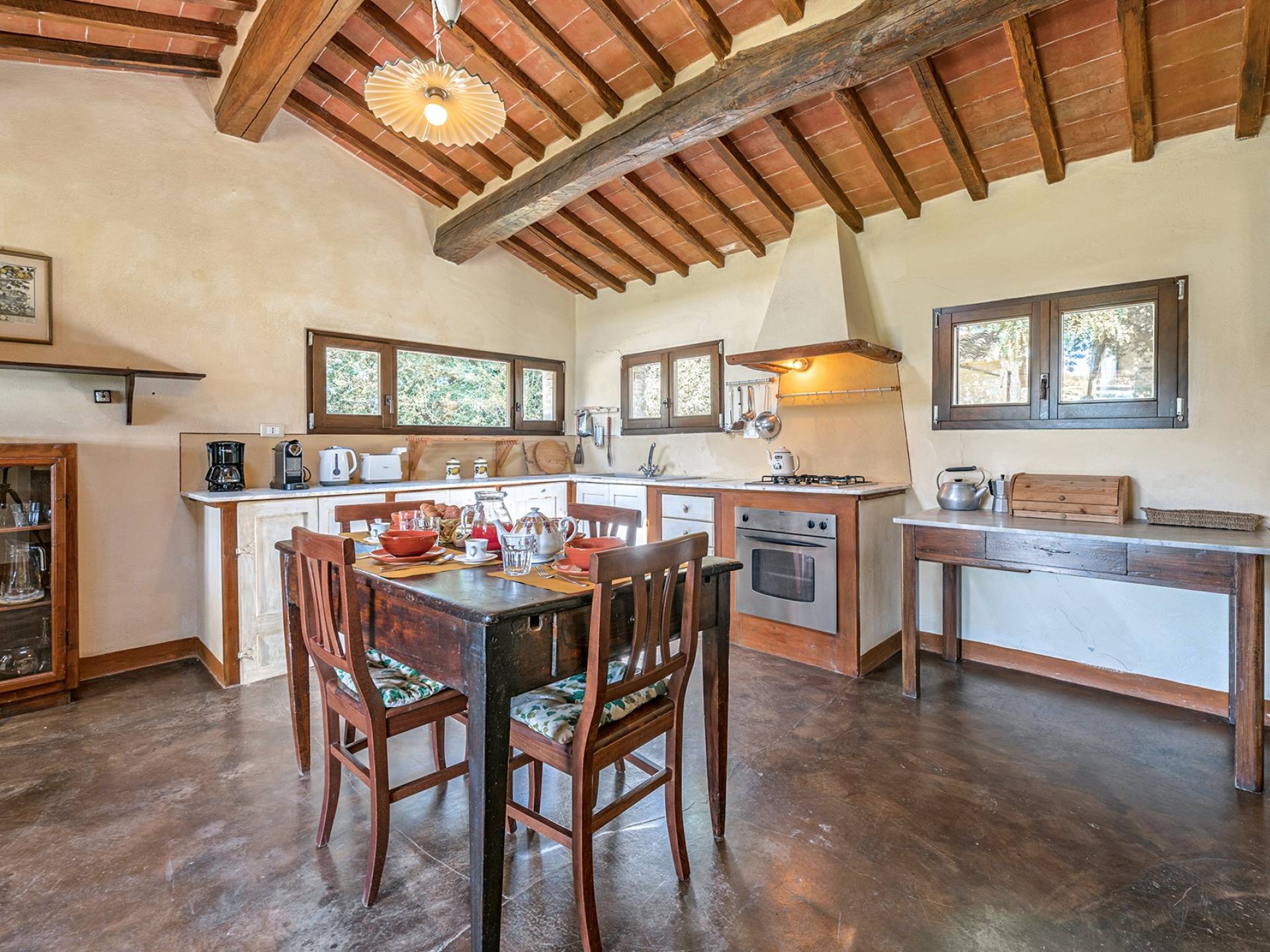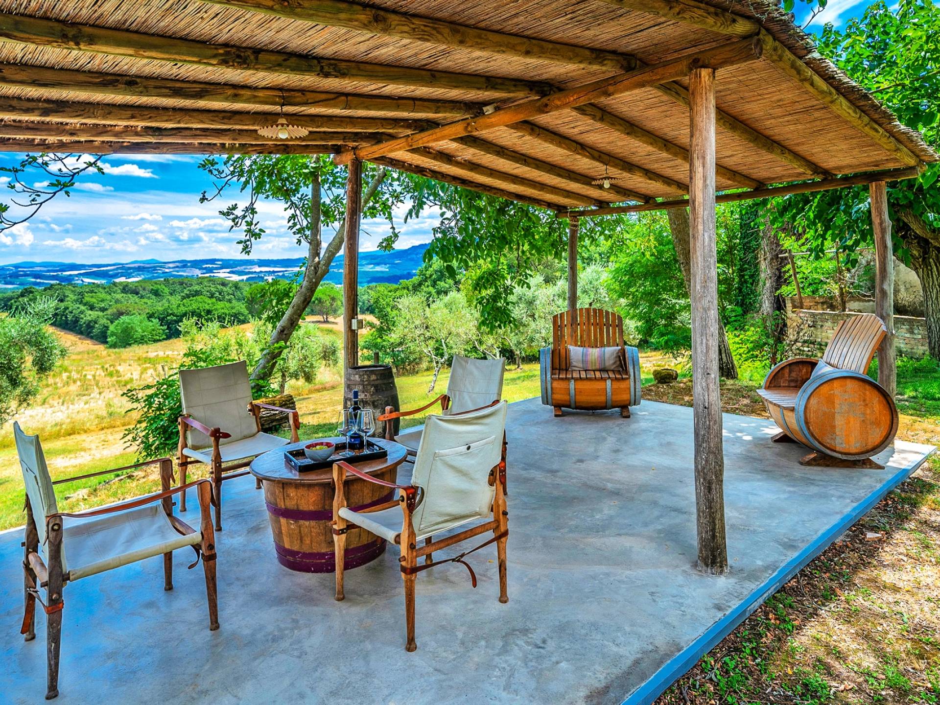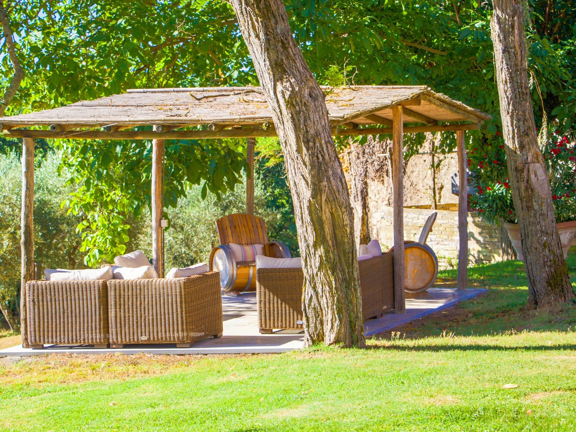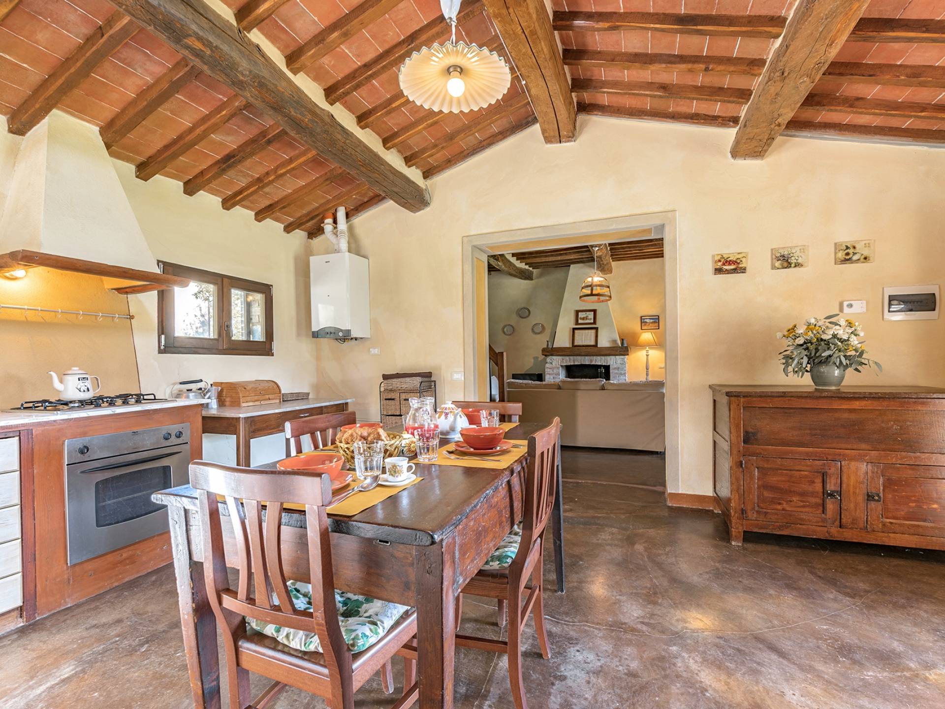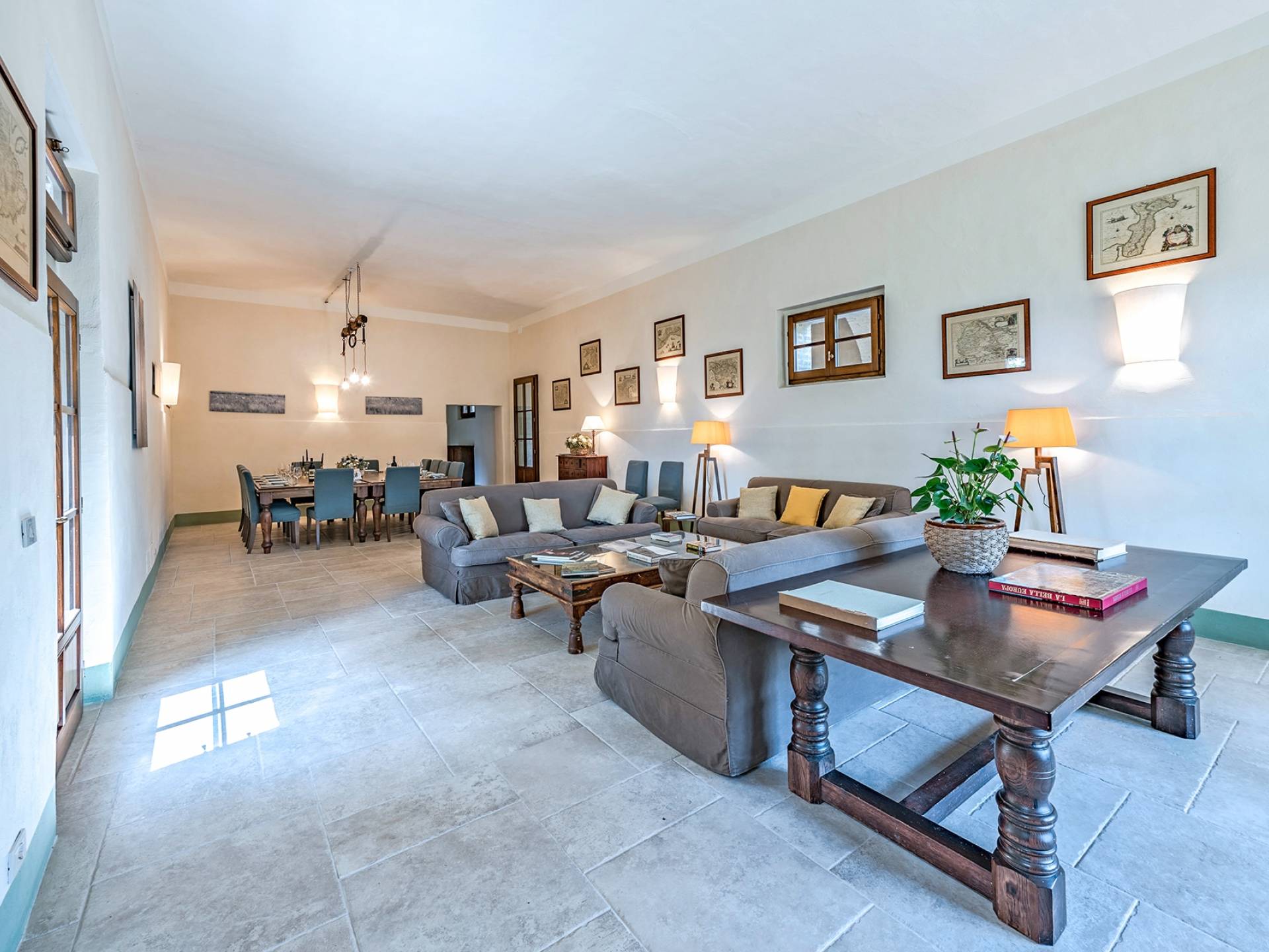 Vivre des vacances ici, ce sera comme s'immerger dans une autre vie, dans une autre dimension. Tout est en effet conçu pour accueillir le touriste dans un lieu à l'authenticité intemporelle. Dans la grande pièce du rez-de-chaussée de la maison patronale, à l'origine utilisée comme entrepôt mais ensuite restaurée et transformée en pièce de vie principale, de grandes fenêtres et portes en bois s'ouvrent sur le jardin où un patio couvert et une seconde pergola sont à disposition des hôtes pour les dîners. open ou autres moments de vraie convivialité.