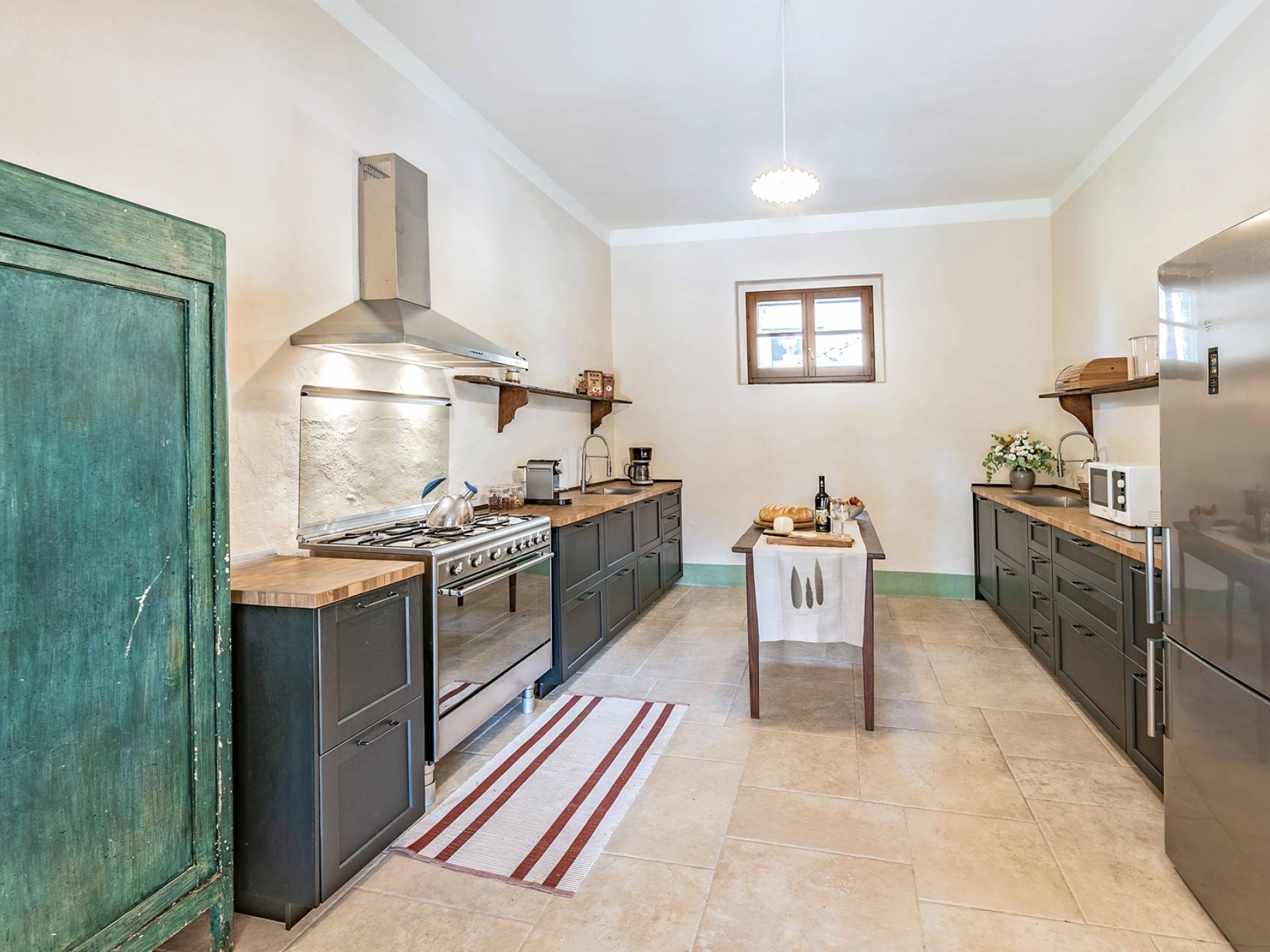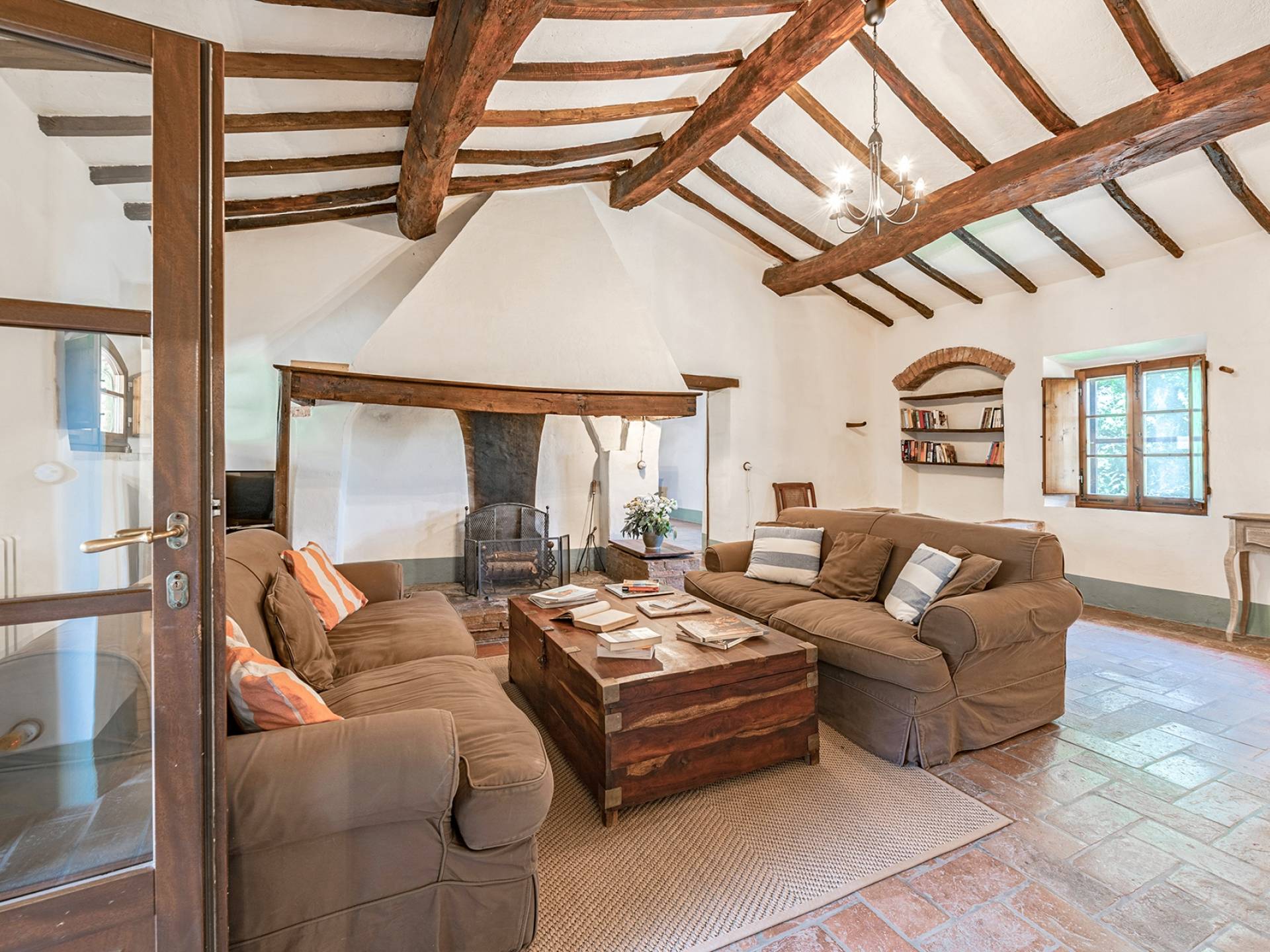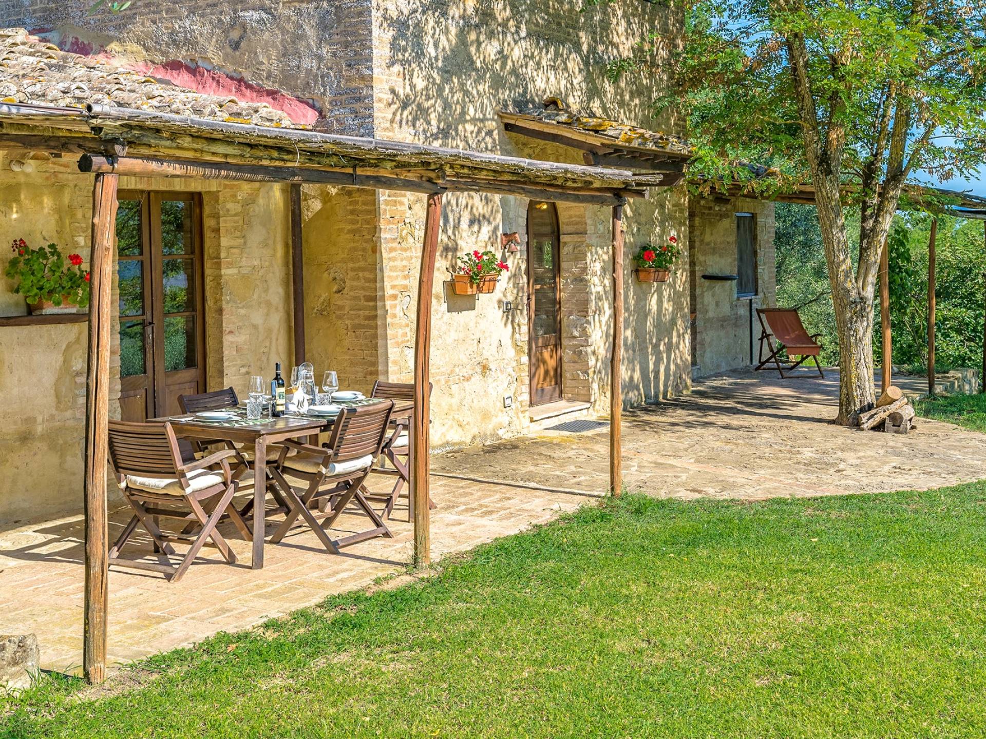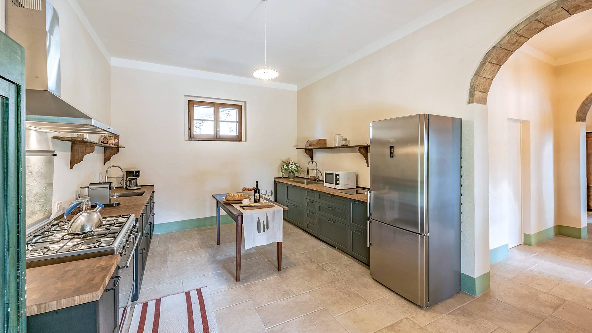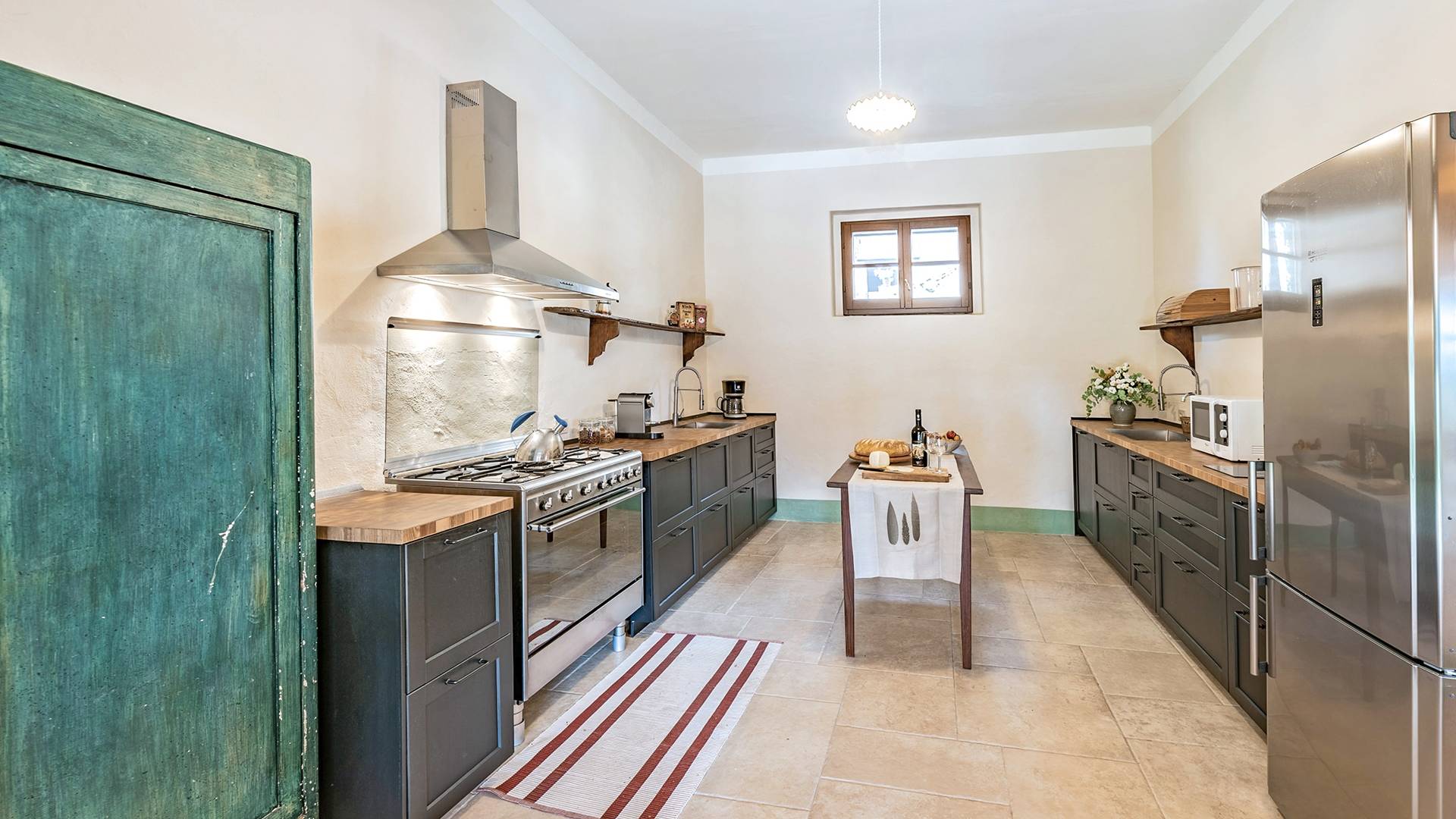 Vivre des vacances ici, ce sera comme s'immerger dans une autre vie, dans une autre dimension. Tout est en effet conçu pour accueillir le touriste dans un lieu à l'authenticité intemporelle. Dans la grande pièce du rez-de-chaussée de la maison patronale, à l'origine utilisée comme entrepôt mais ensuite restaurée et transformée en pièce de vie principale, de grandes fenêtres et portes en bois s'ouvrent sur le jardin où un patio couvert et une seconde pergola sont à disposition des hôtes pour les dîners. open ou autres moments de vraie convivialité.