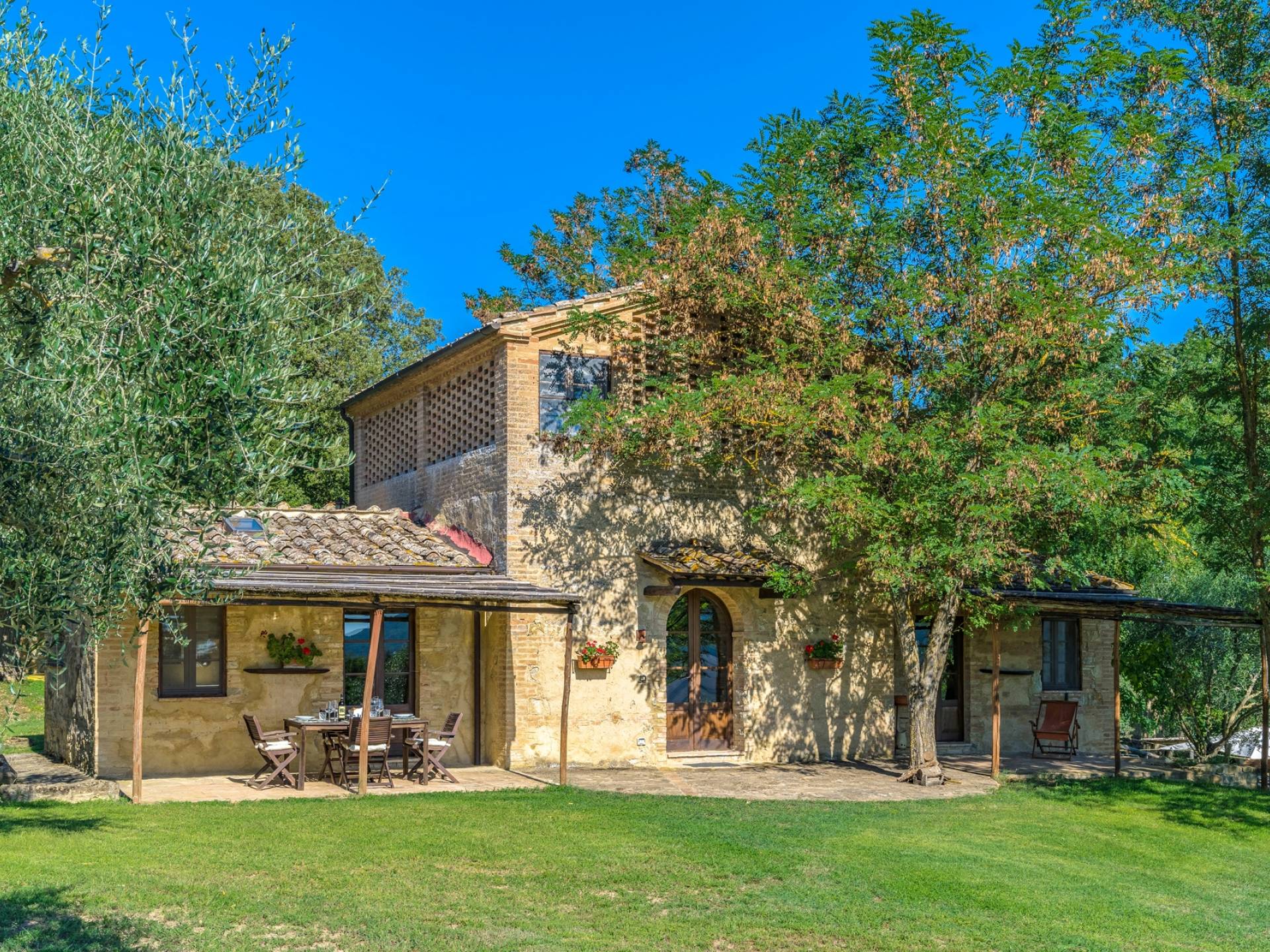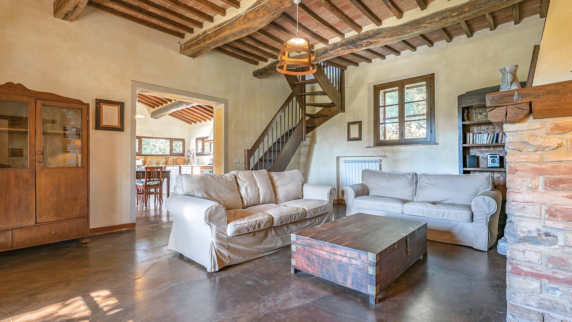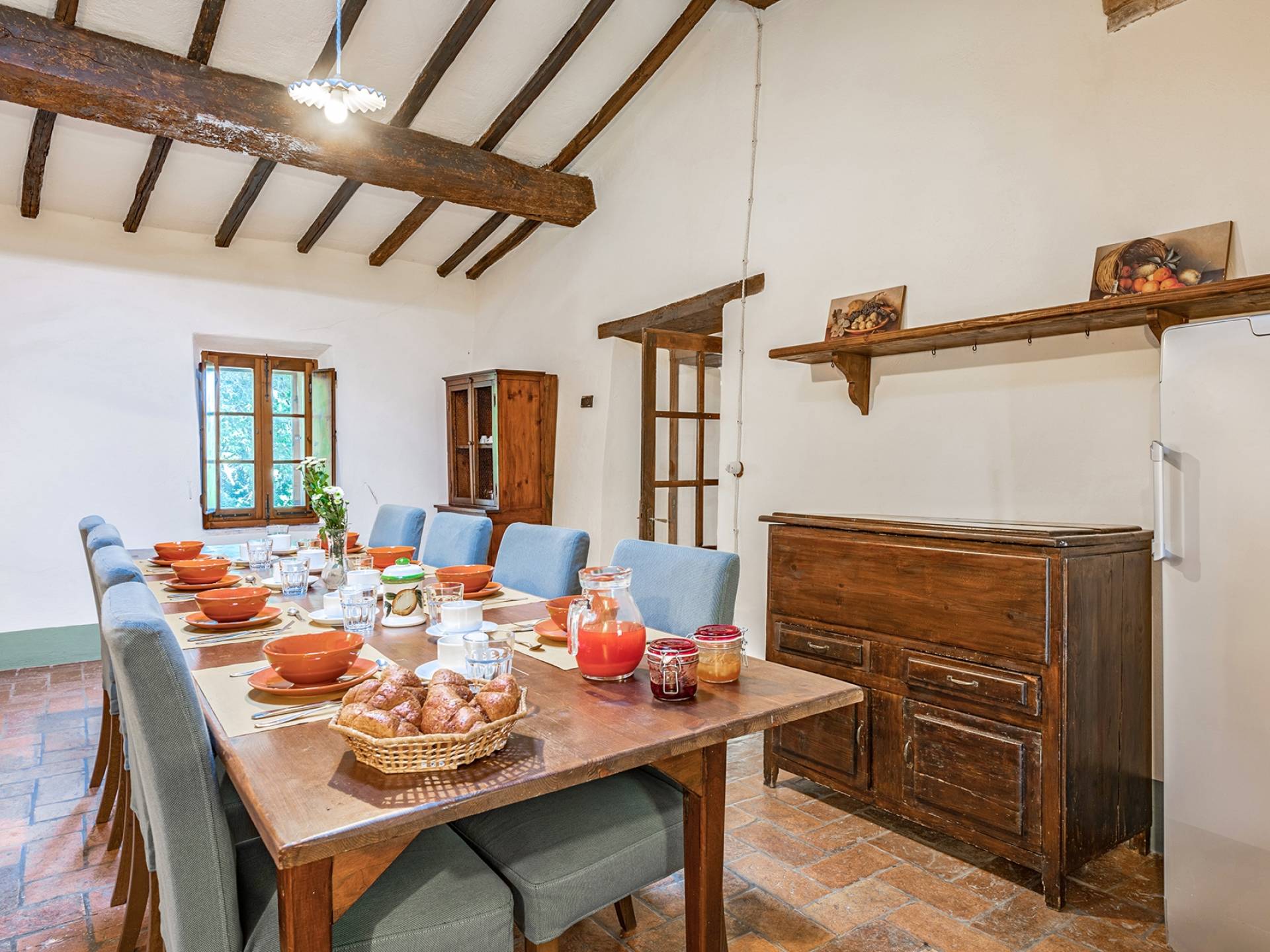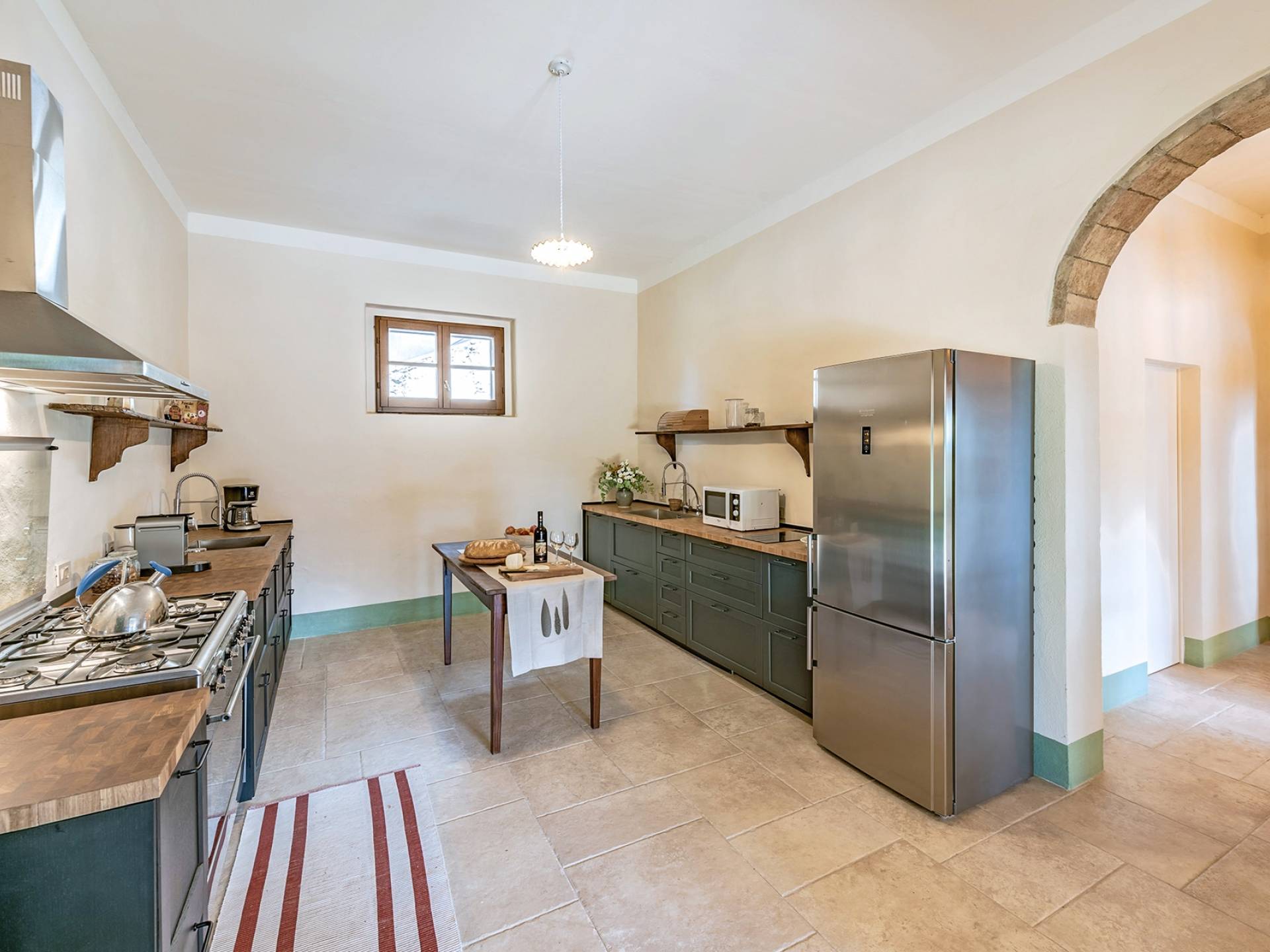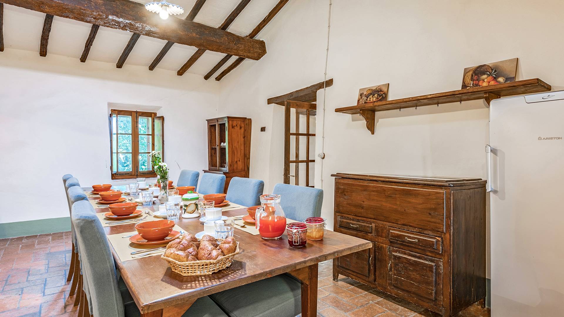 Vivre des vacances ici, ce sera comme s'immerger dans une autre vie, dans une autre dimension. Tout est en effet conçu pour accueillir le touriste dans un lieu à l'authenticité intemporelle. Dans la grande pièce du rez-de-chaussée de la maison patronale, à l'origine utilisée comme entrepôt mais ensuite restaurée et transformée en pièce de vie principale, de grandes fenêtres et portes en bois s'ouvrent sur le jardin où un patio couvert et une seconde pergola sont à disposition des hôtes pour les dîners. open ou autres moments de vraie convivialité.