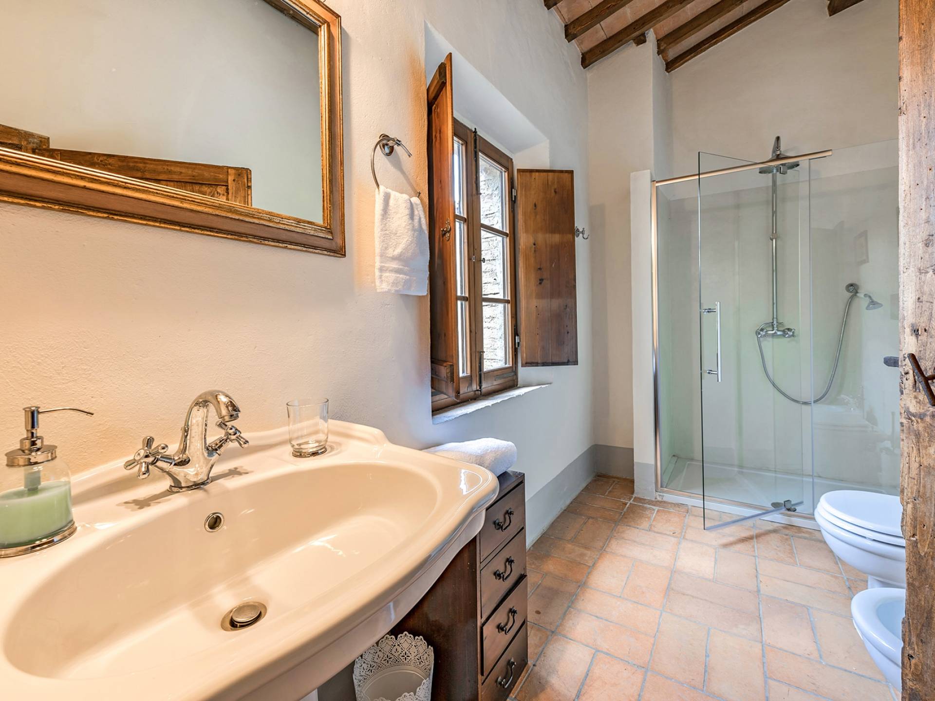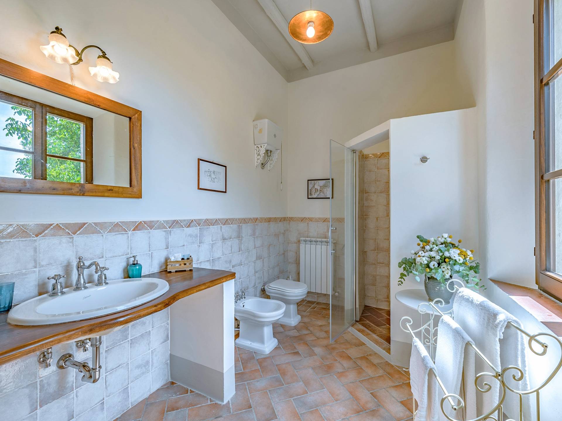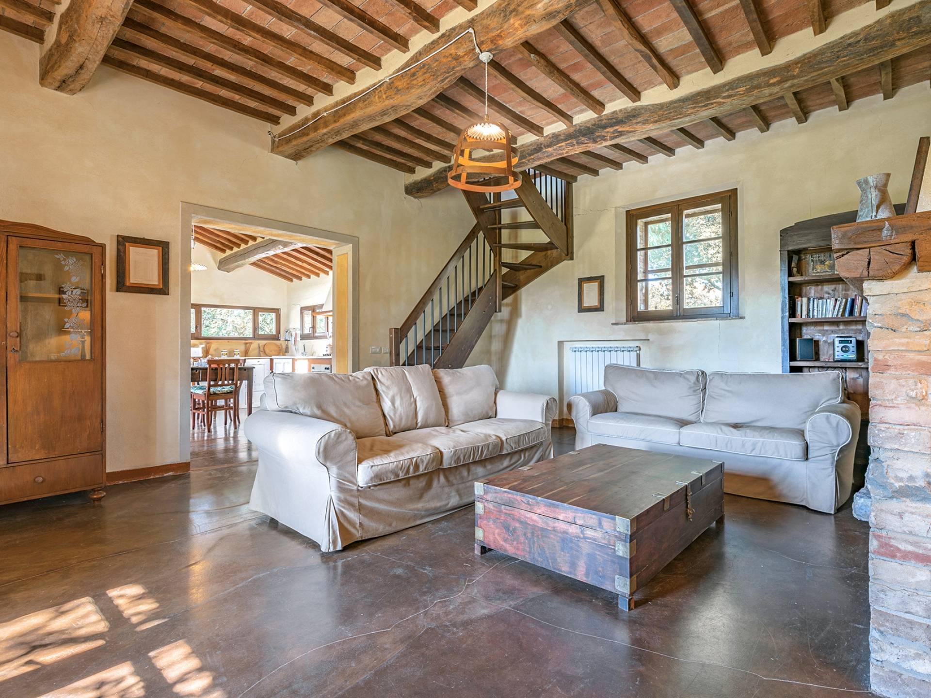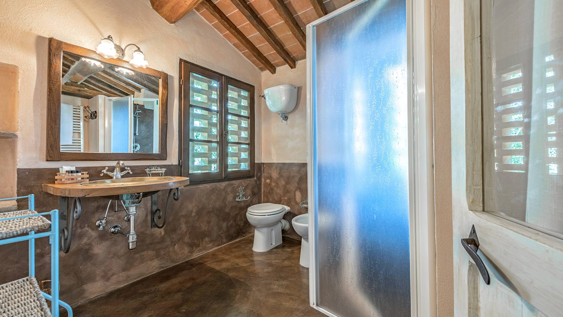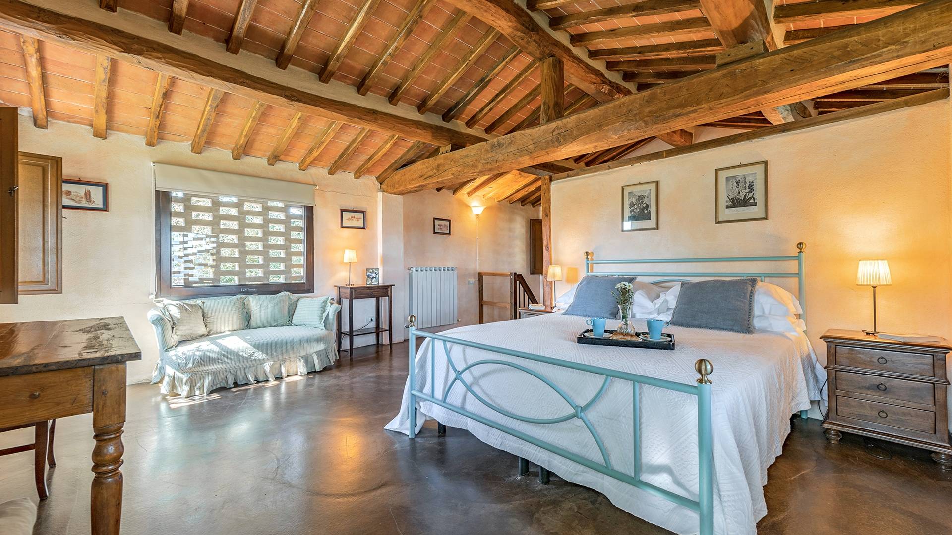 Vivre des vacances ici, ce sera comme s'immerger dans une autre vie, dans une autre dimension. Tout est en effet conçu pour accueillir le touriste dans un lieu à l'authenticité intemporelle. Dans la grande pièce du rez-de-chaussée de la maison patronale, à l'origine utilisée comme entrepôt mais ensuite restaurée et transformée en pièce de vie principale, de grandes fenêtres et portes en bois s'ouvrent sur le jardin où un patio couvert et une seconde pergola sont à disposition des hôtes pour les dîners. open ou autres moments de vraie convivialité.