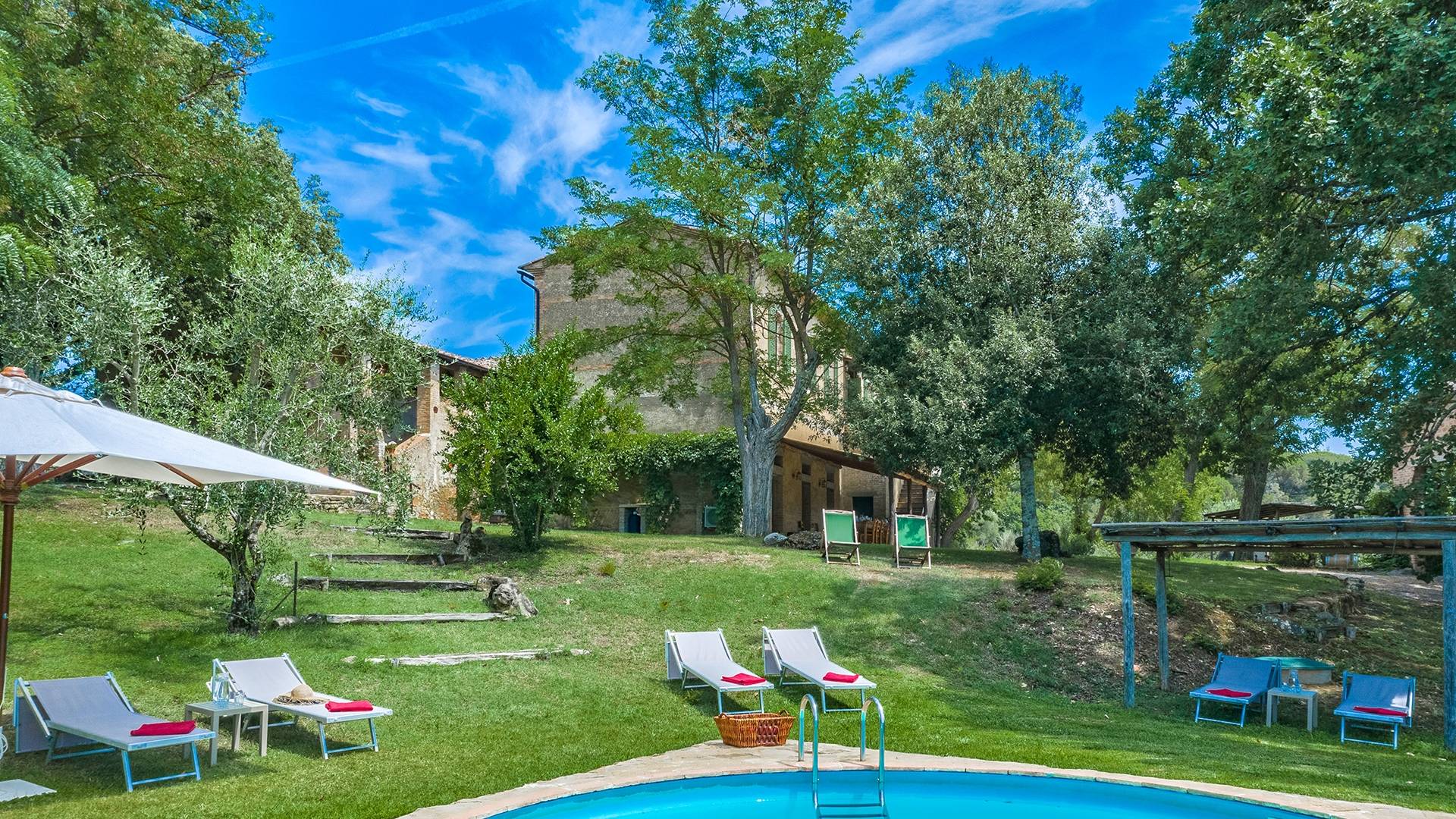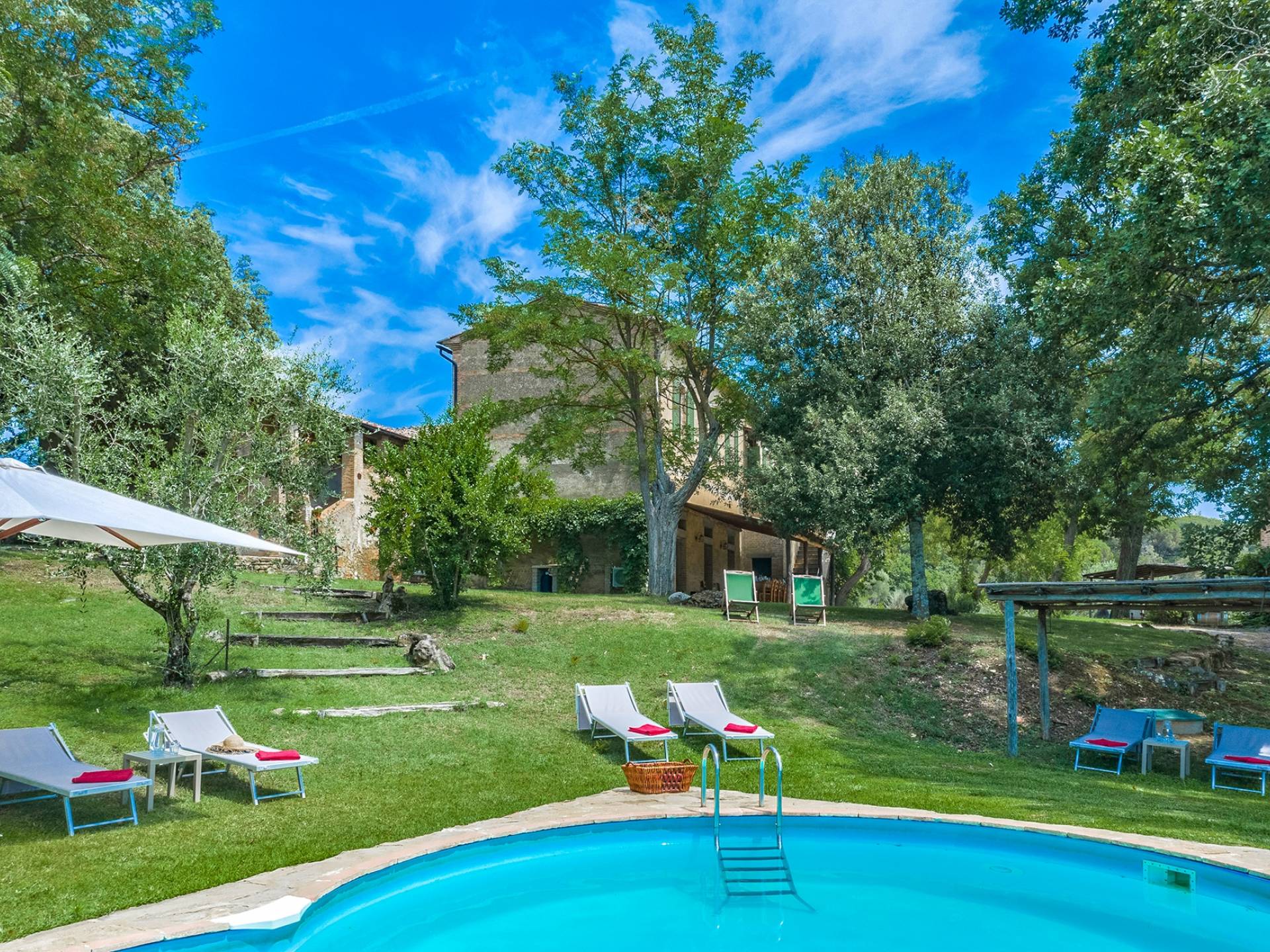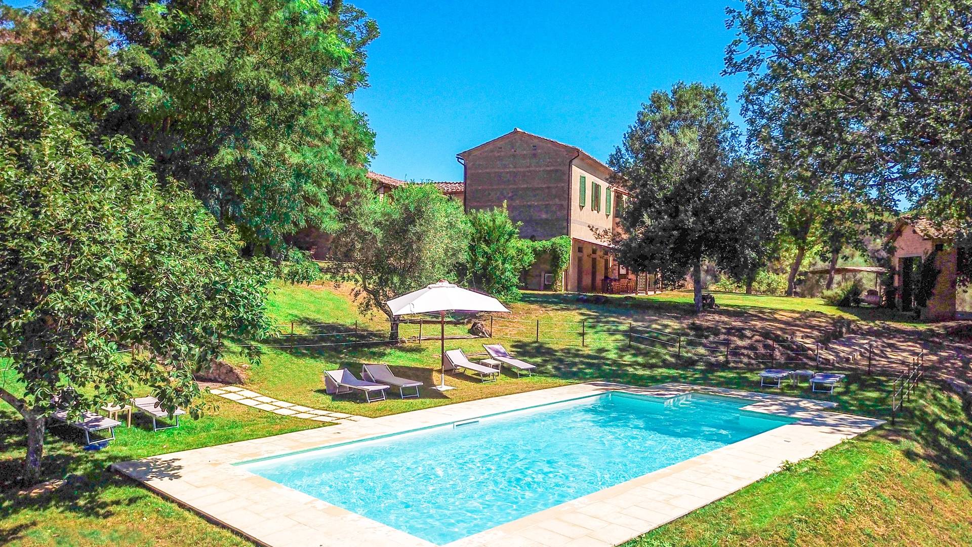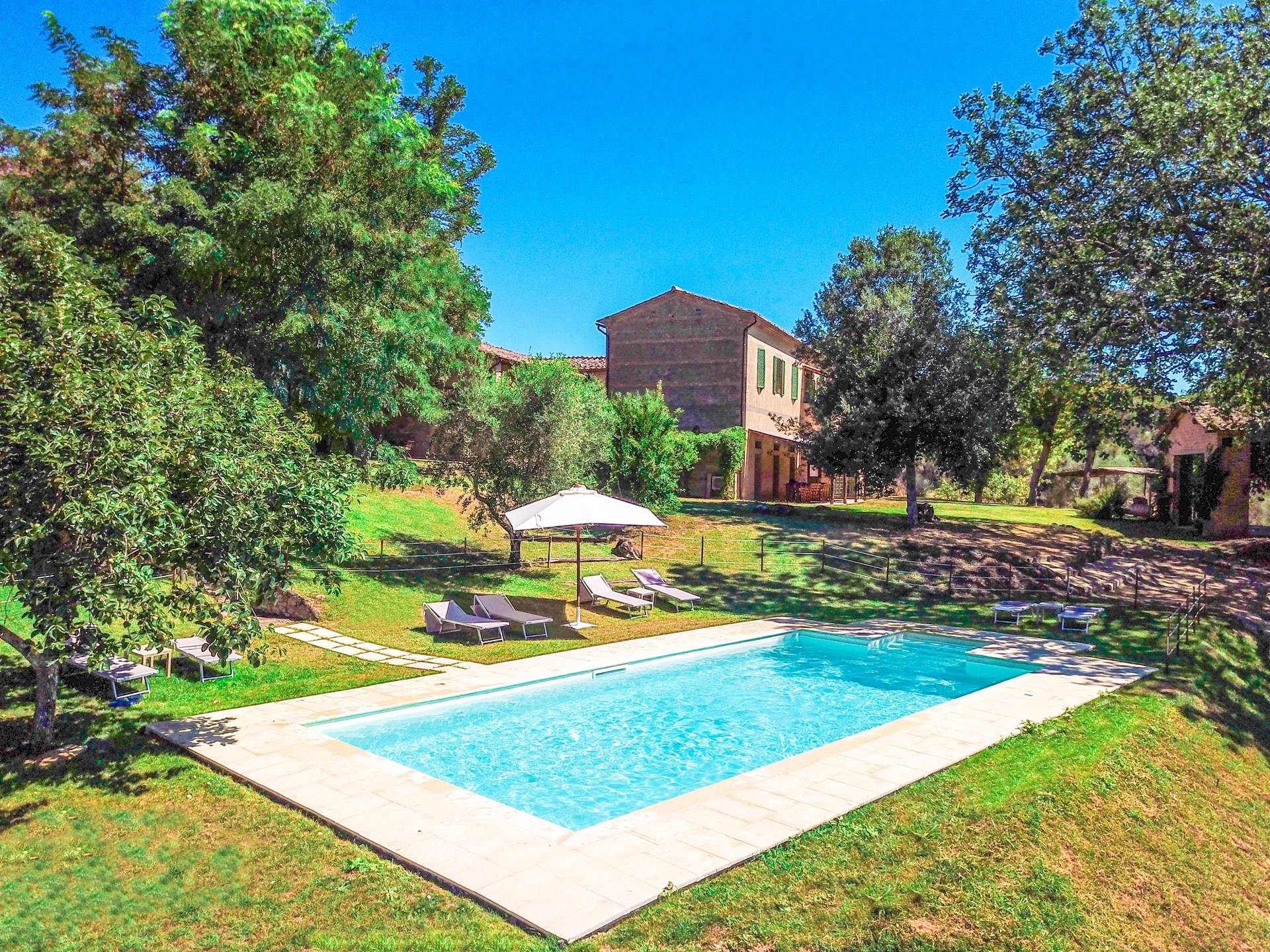 La villa avec piscine propose une série de services sur demande : dégustation de vins dans la cave du domaine, préparation d'un dîner typique du Val d'Orcia, cours de cuisine et, à l'arrivée des hôtes, également un service spécial "Que veux-tu trouver dans le frigo". Villa Murlo est située sur la route principale des Routes des Vins et non loin de lieux suggestifs tels que Sienne, San Gimignano, Pienza. Pour les sportifs, un parcours de golf et un centre équestre sont disponibles à proximité. Dans la région également, il est possible de faire l'expérience des montgolfières ou des randonnées à pied et à vélo.