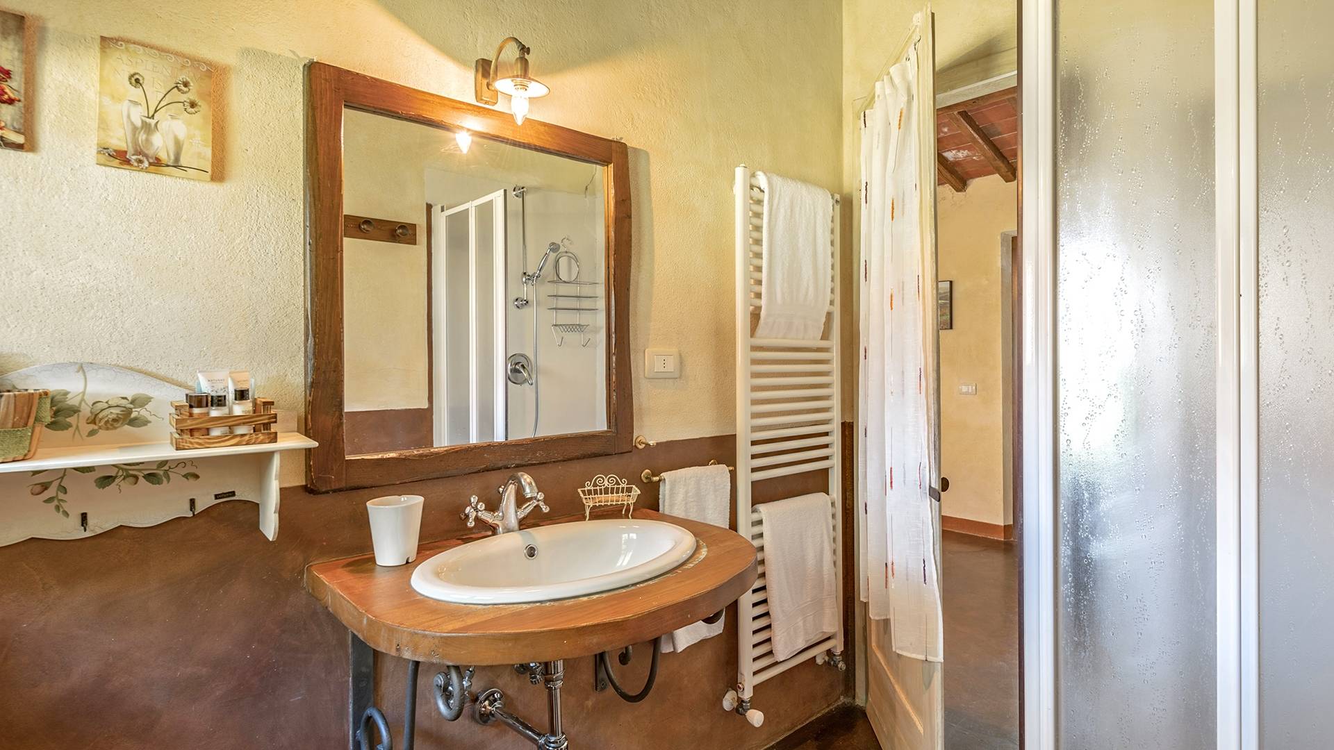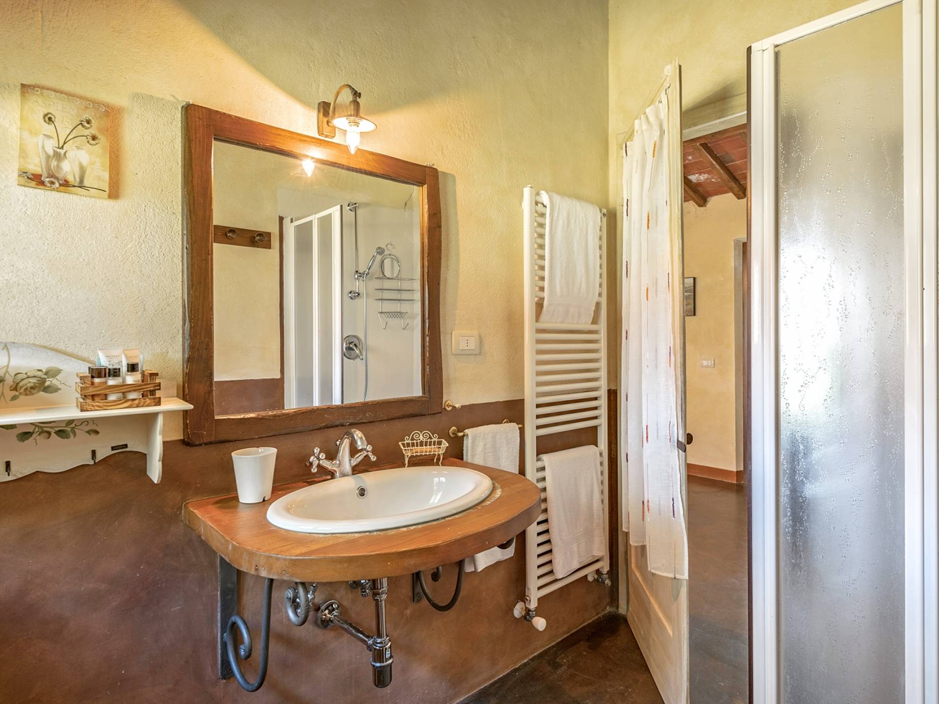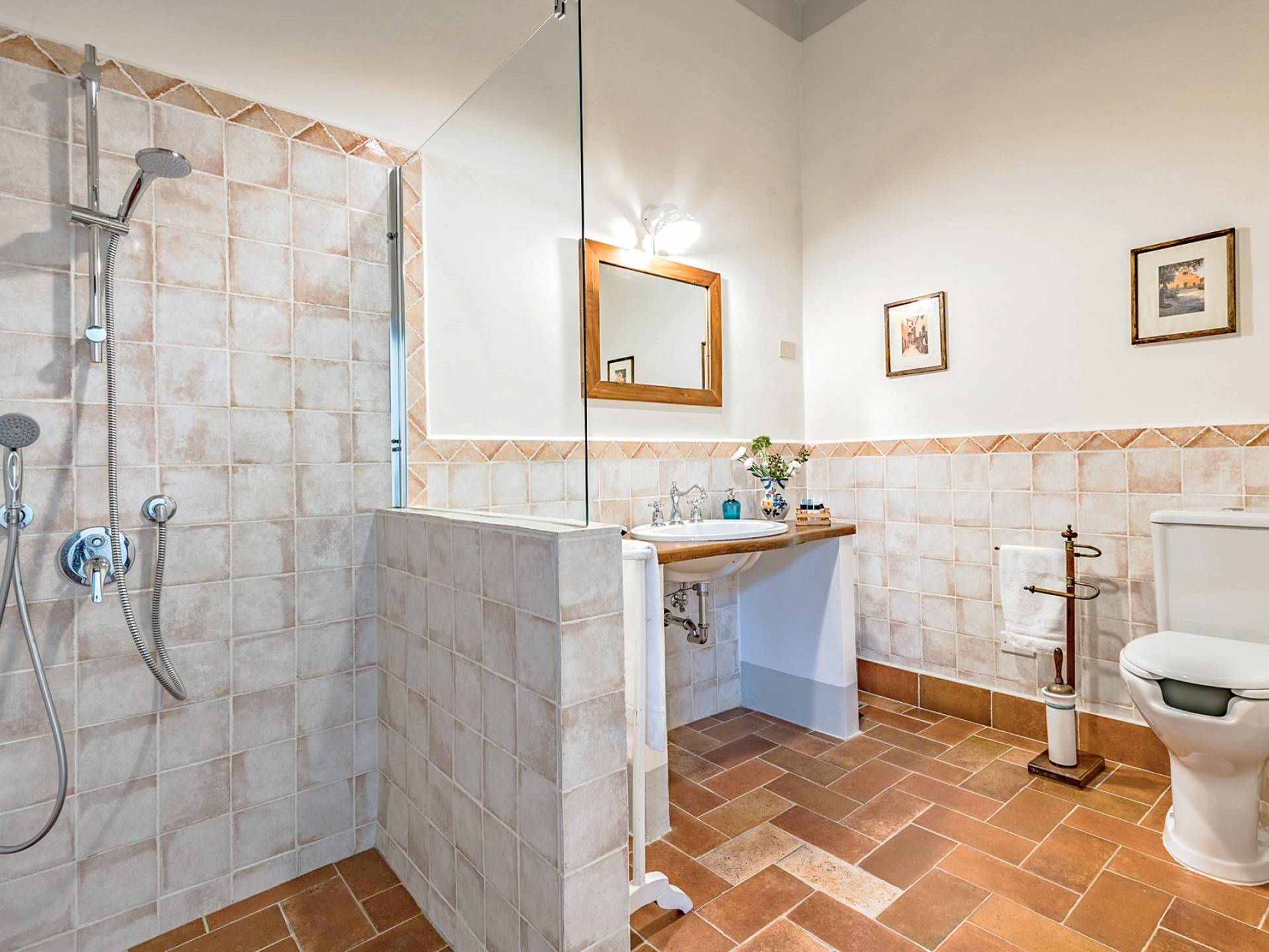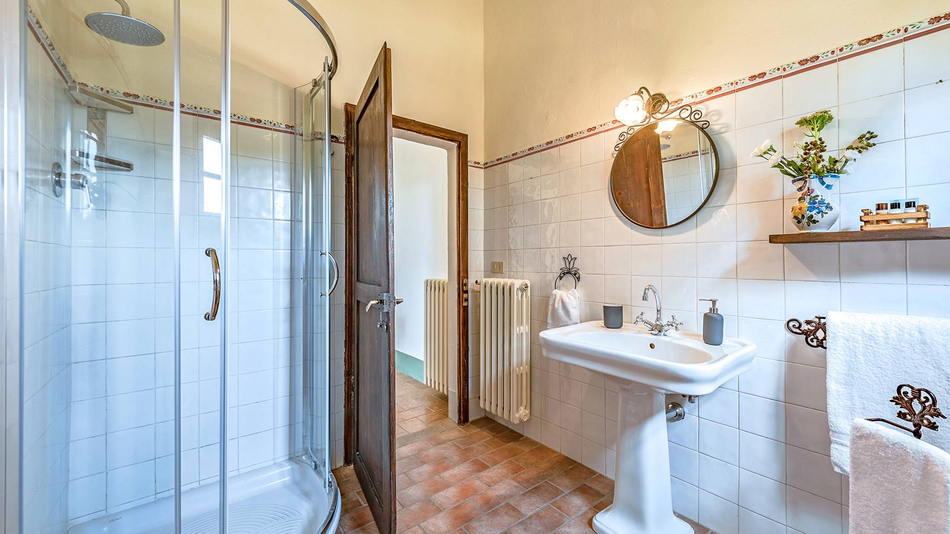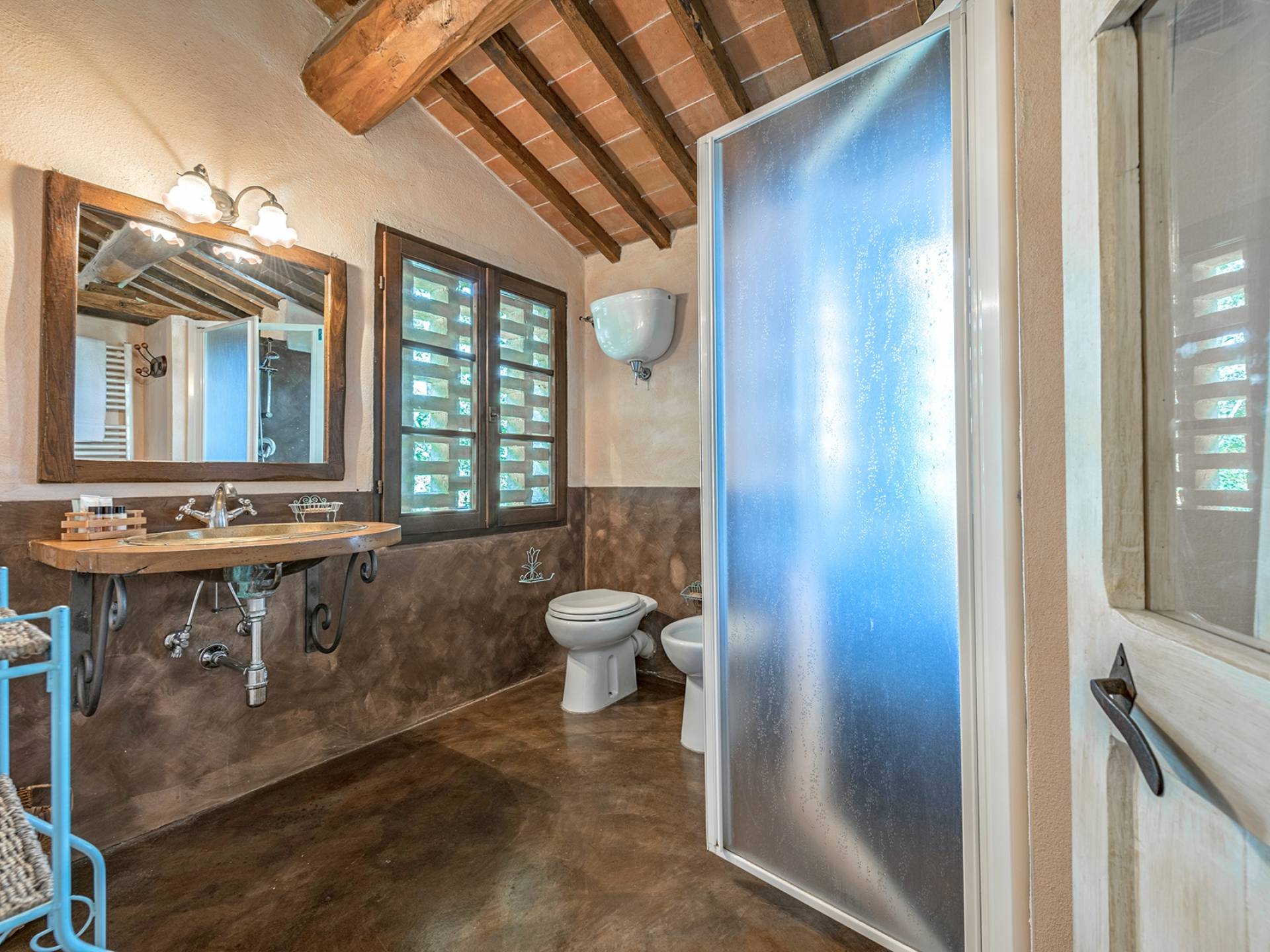La villa avec piscine propose une série de services sur demande : dégustation de vins dans la cave du domaine, préparation d'un dîner typique du Val d'Orcia, cours de cuisine et, à l'arrivée des hôtes, également un service spécial "Que veux-tu trouver dans le frigo". Villa Murlo est située sur la route principale des Routes des Vins et non loin de lieux suggestifs tels que Sienne, San Gimignano, Pienza. Pour les sportifs, un parcours de golf et un centre équestre sont disponibles à proximité. Dans la région également, il est possible de faire l'expérience des montgolfières ou des randonnées à pied et à vélo.