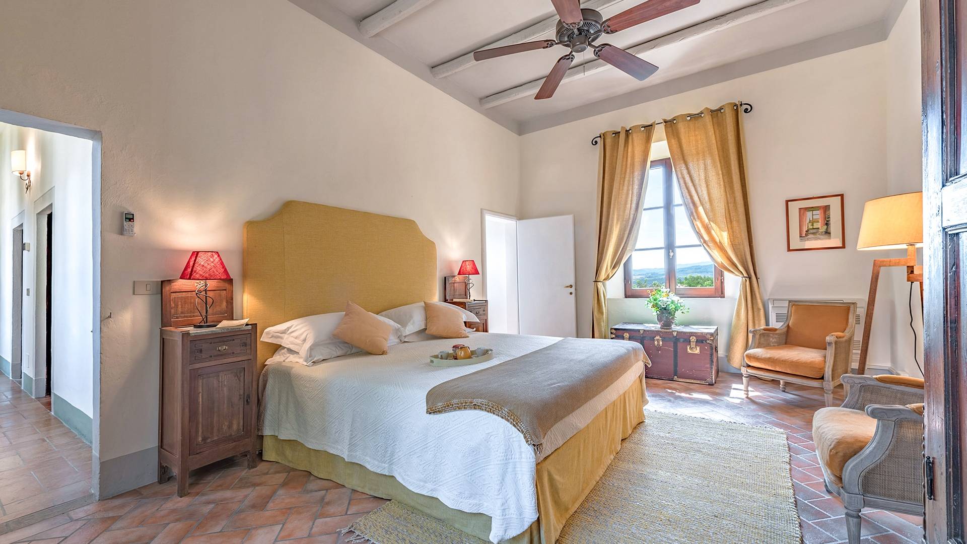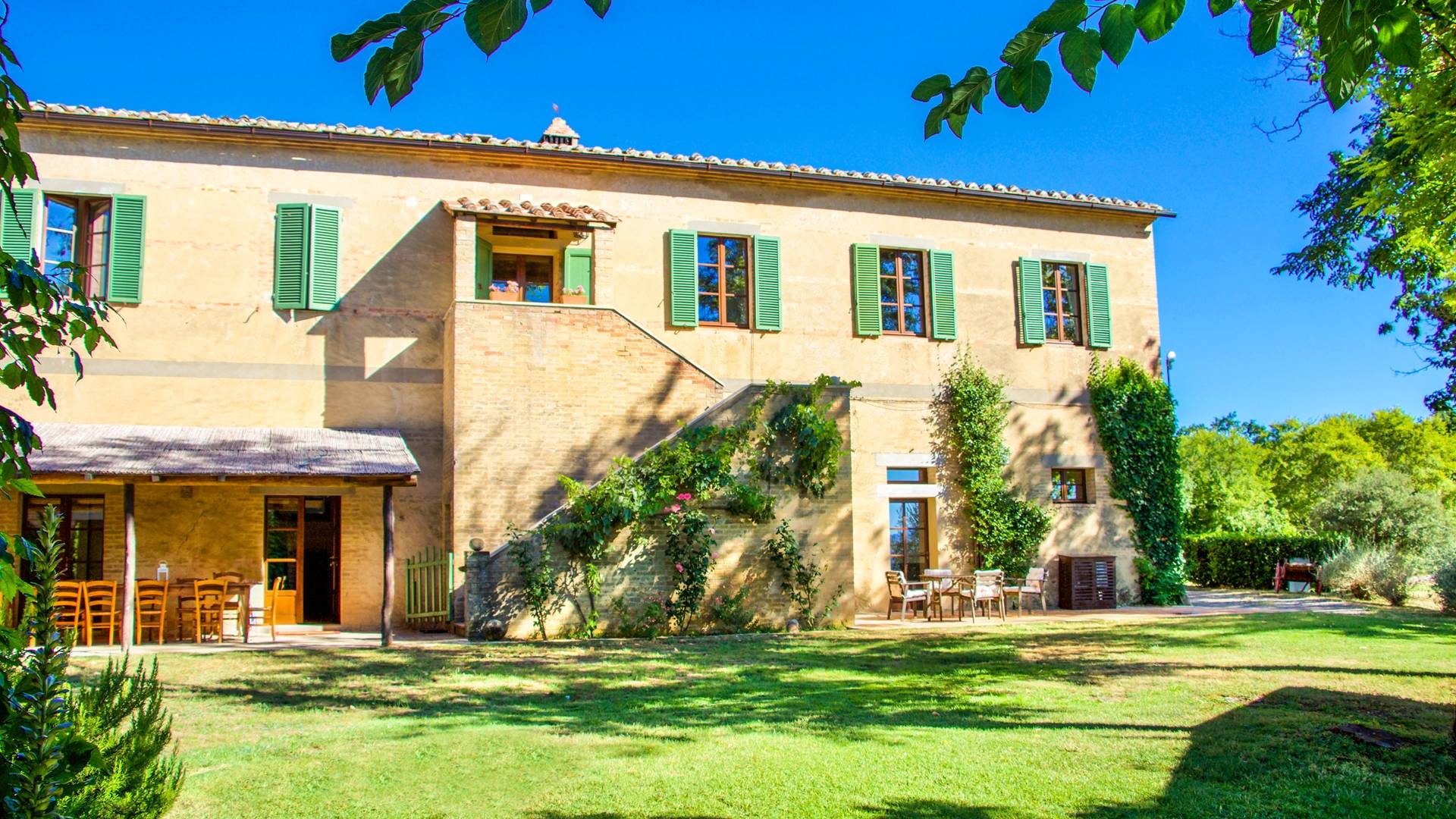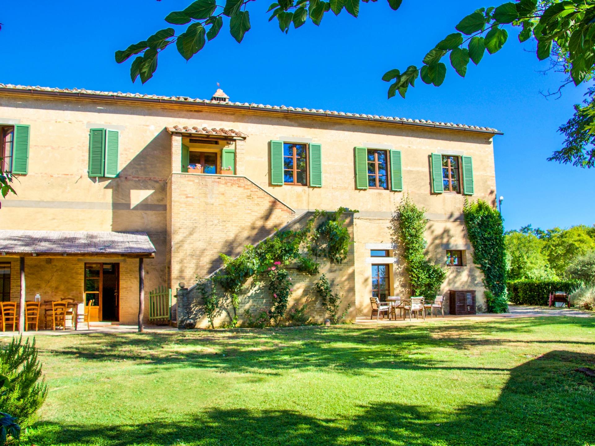 Cette maison offre une vue unique sur les collines environnantes, classées au patrimoine mondial de l'Unesco. La Villa est en fait un petit hameau né au début du XIXème siècle. Il peut accueillir jusqu'à vingt personnes en mettant à leur disposition neuf chambres, toutes avec salle de bain privative, trois cuisines, et autant de salons équipés de la climatisation et du wi-fi, ainsi que de nombreux autres conforts.