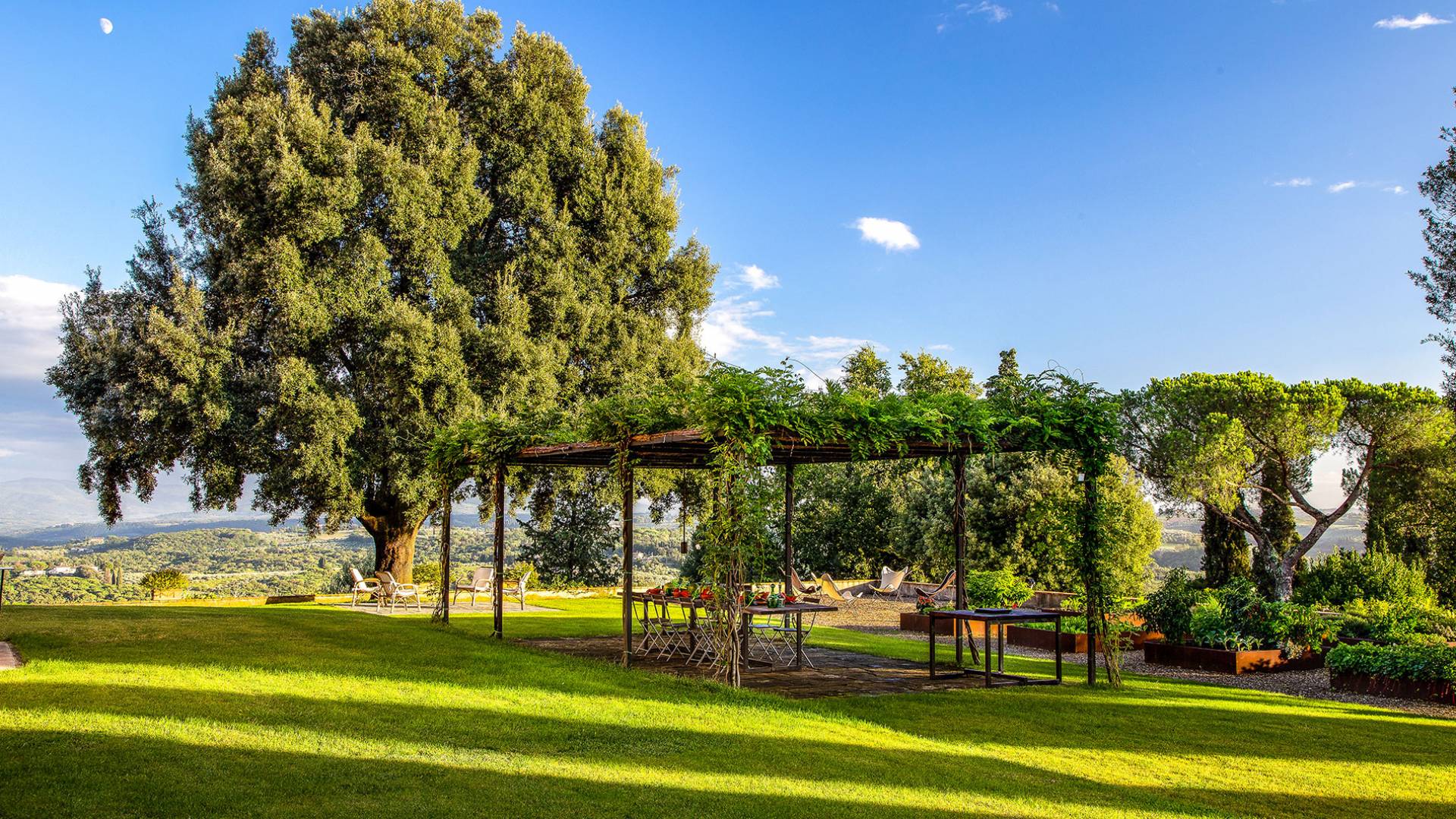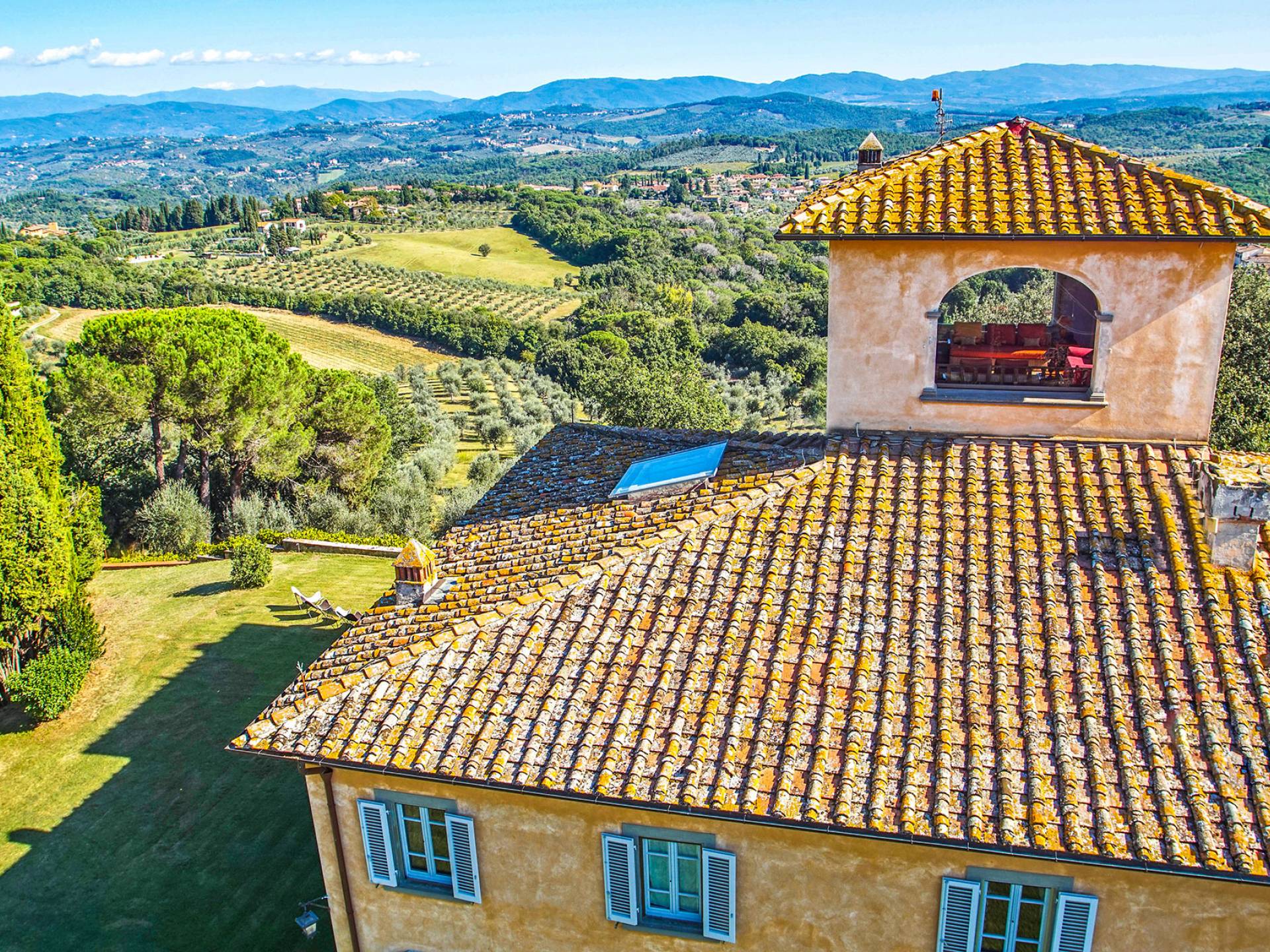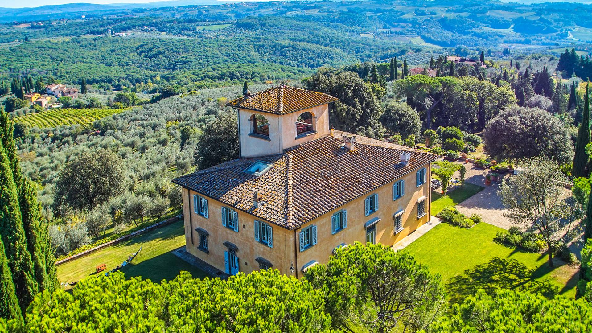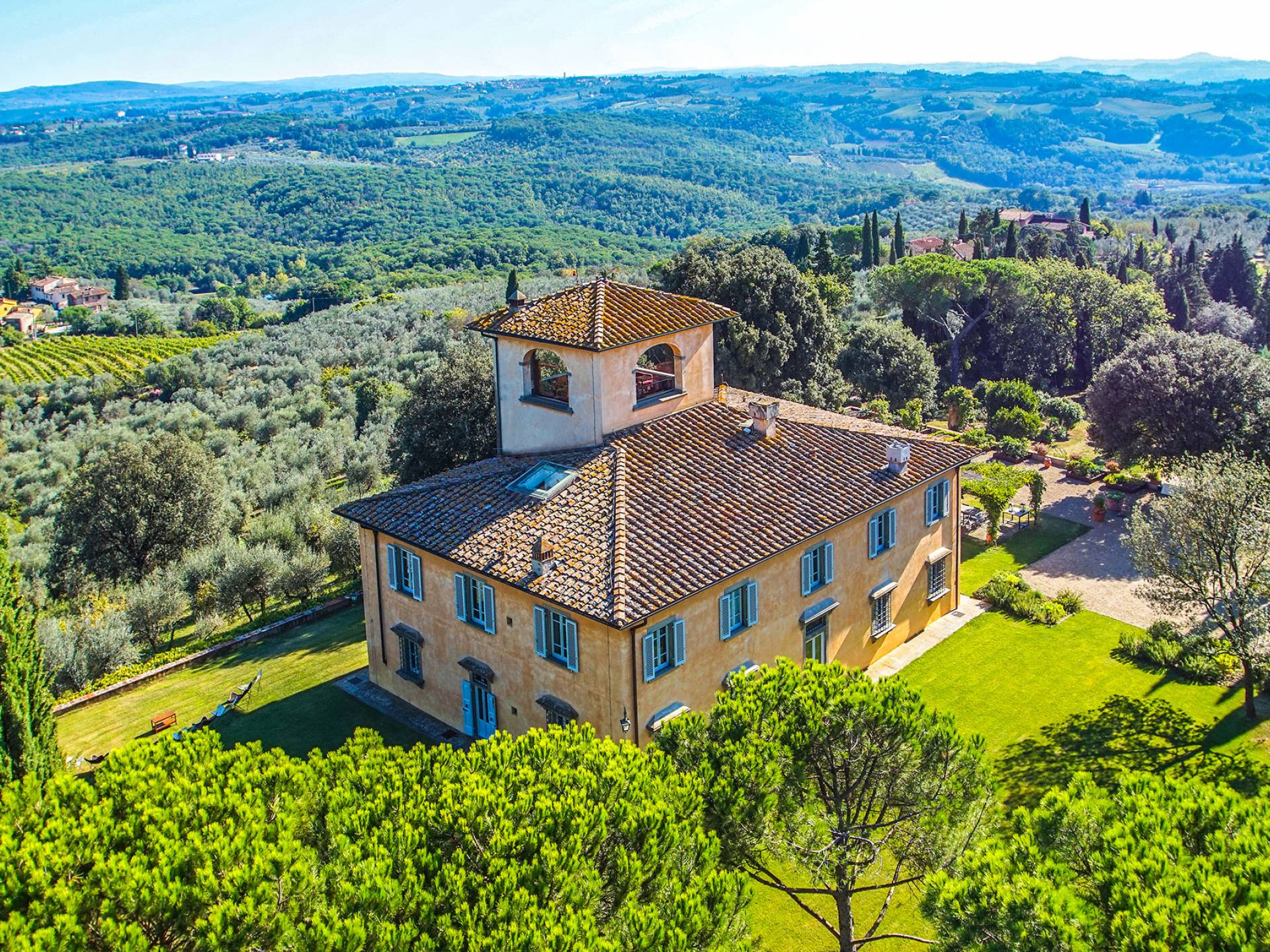 Découvrez une véritable beauté classique de la Renaissance à la Villa Poggio Florence, une élégante villa italienne au sein d'un domaine magique, entourée de vignes, d'oliveraies et de feuillus anciens, avec une vue imprenable à 360 ° sur la campagne environnante de Florence au clocher de Giotto. À peine huit kilomètres de conduite facile séparent la maison de campagne et sa ferme de Florence, cette propriété est richement dotée de tout le confort et les accessoires nécessaires pour vivre un séjour confortable et relaxant et elle est particulièrement adaptée aux familles.