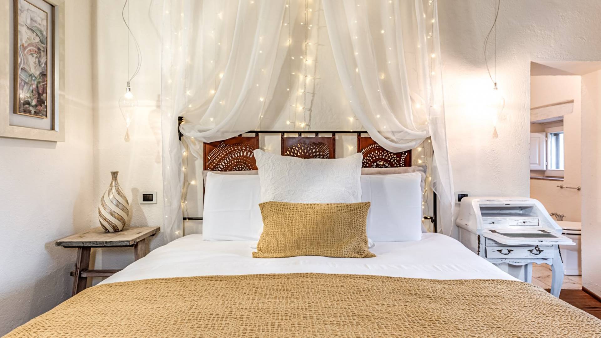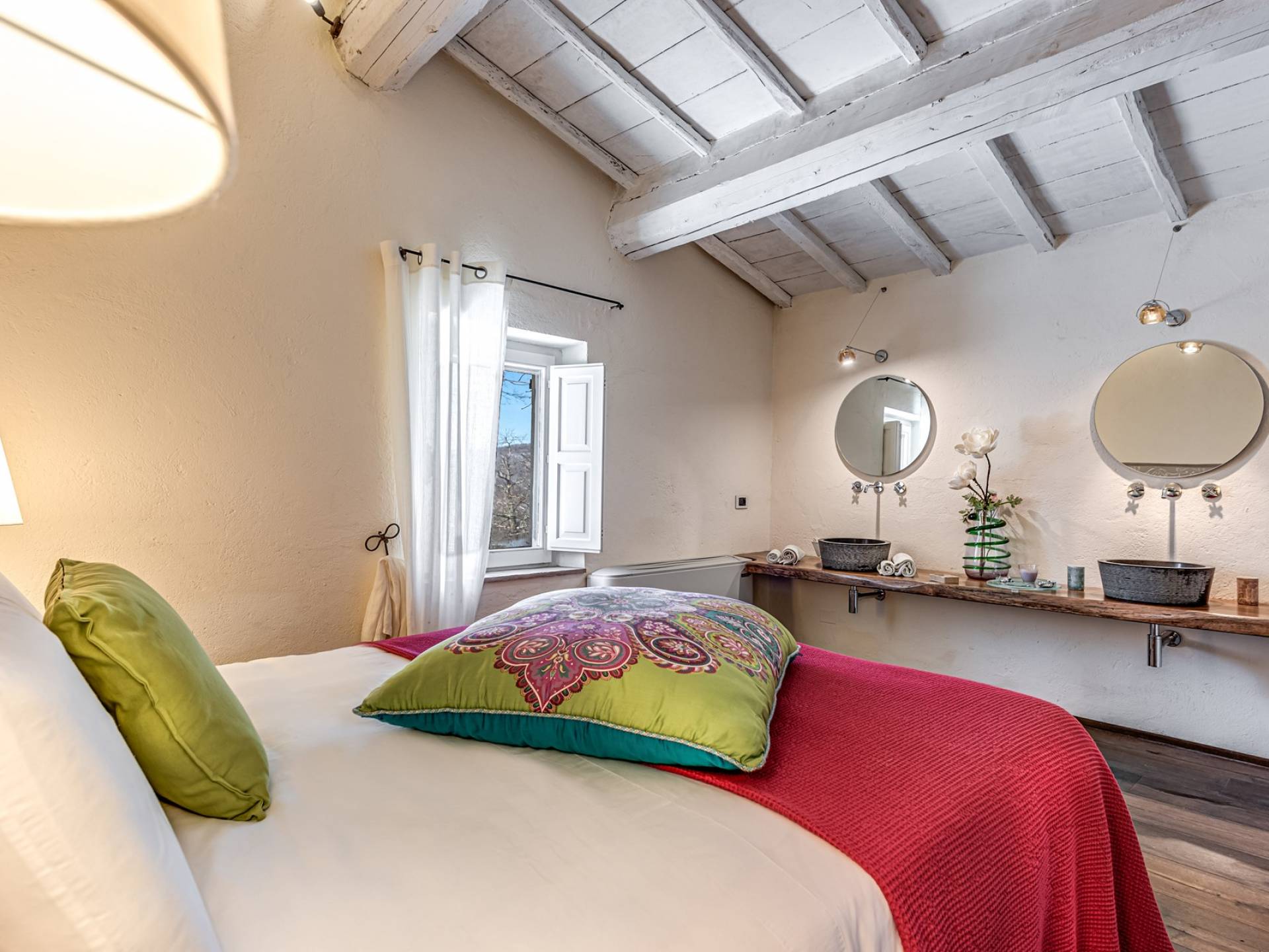 La Villa Vetrichina Val d'Orcia propose 7 chambres d'hôtes toutes avec salles de bains luxueuses et climatisation partout. Nos hébergements sont frais et accueillants. Pour une villa de vacances à la campagne toscane. Vous trouverez tout, de nos lits orthopédiques toujours aussi confortables avec mémoire de matelas de luxe, aux salles de bains modernes et lumineuses avec notre ensemble de courtoisie, en passant par les belles vues sur nos jardins et les tours de San Casciano dei Bagni.