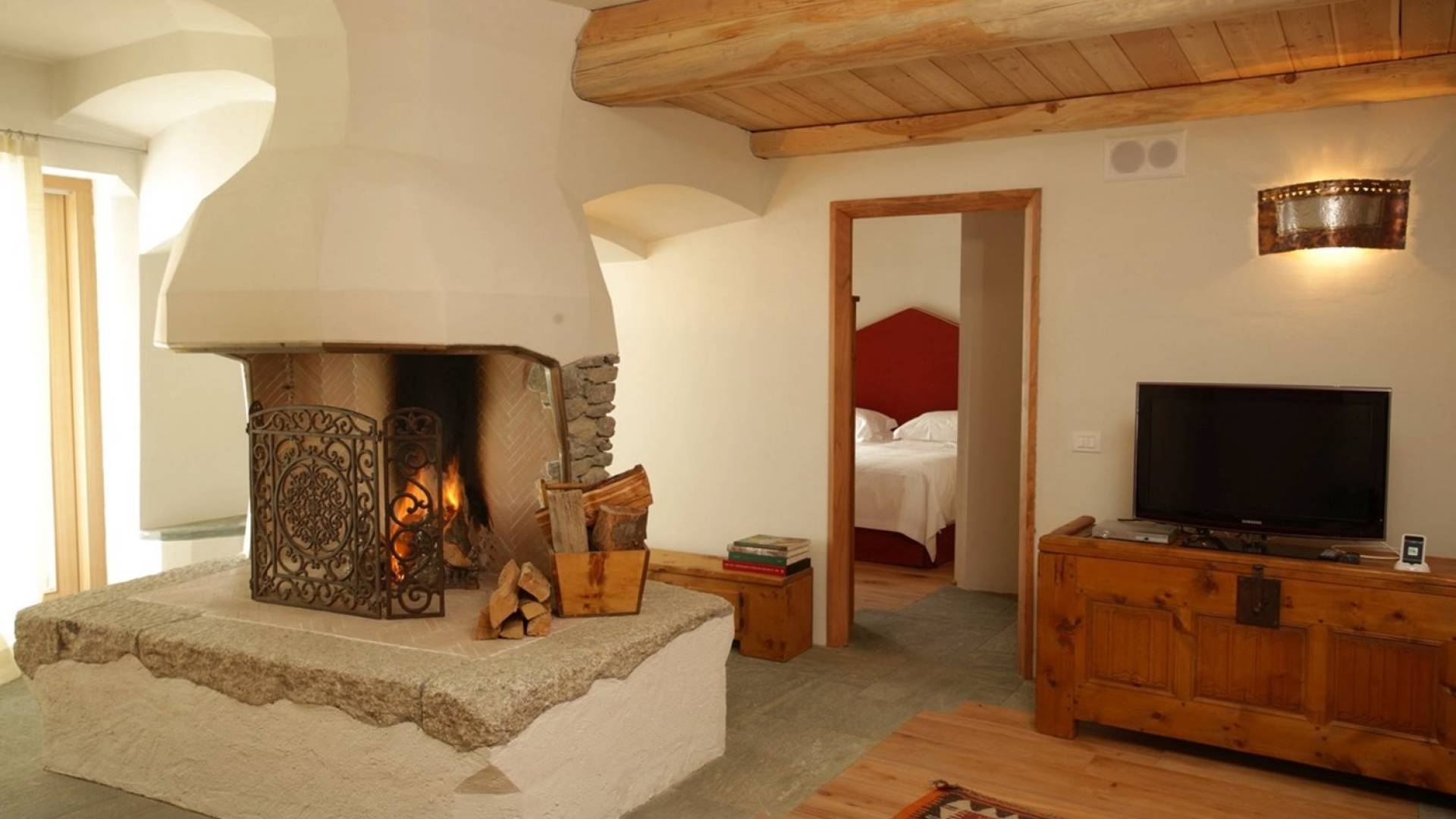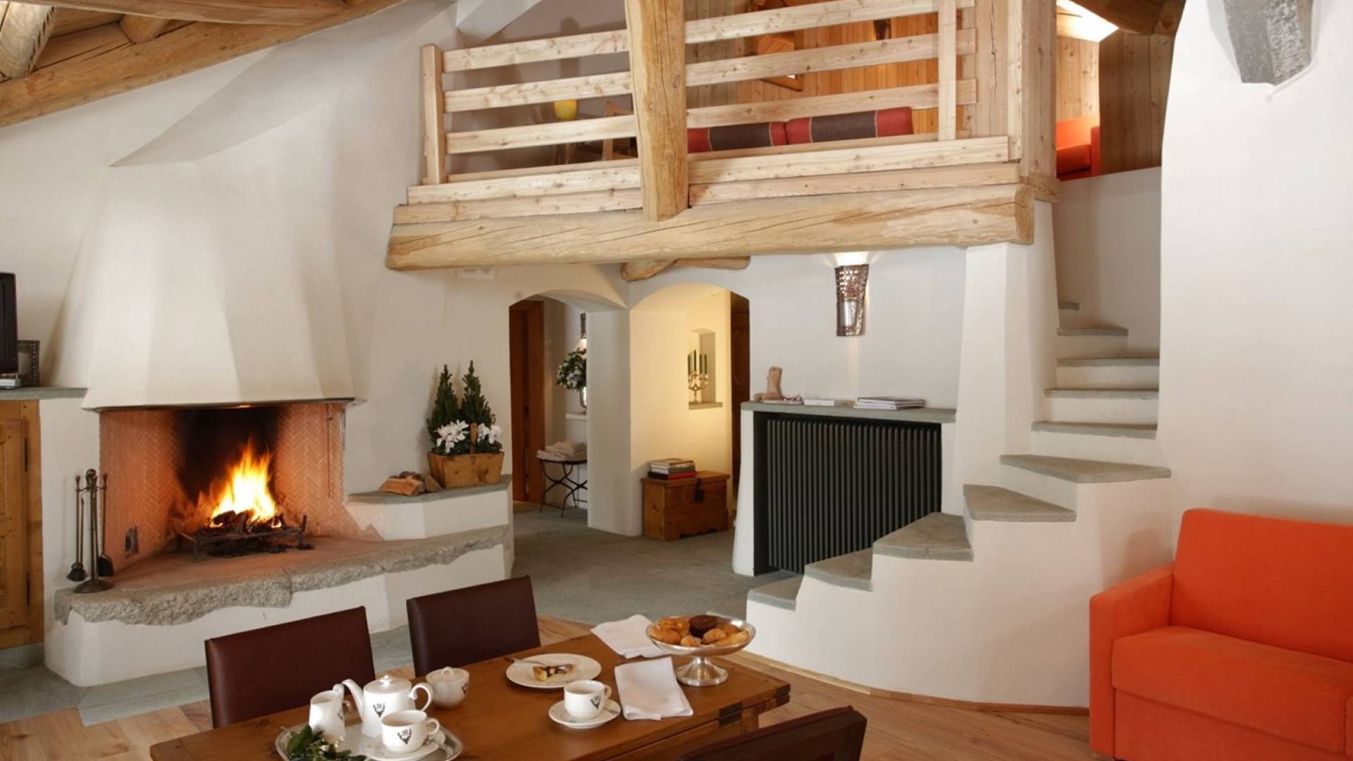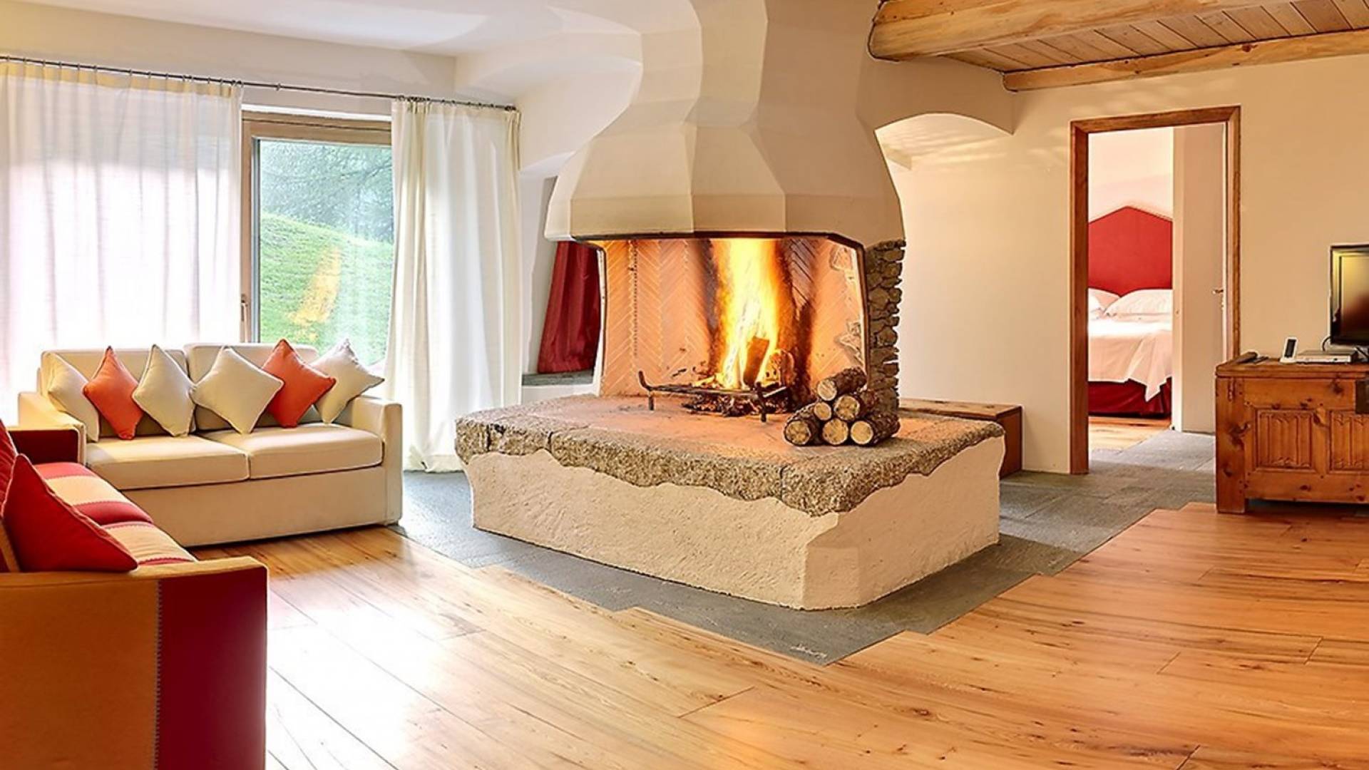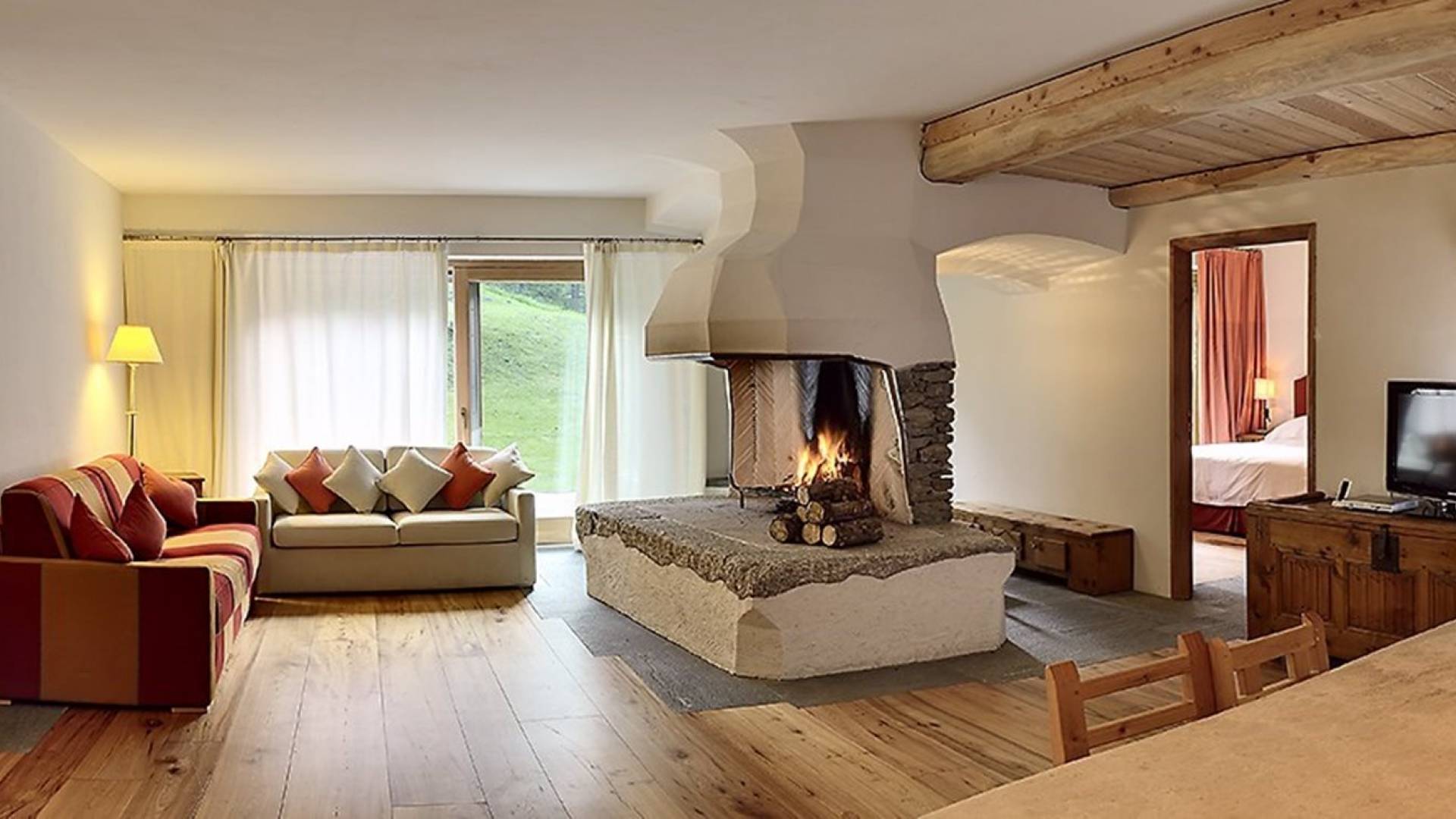 Appartements de luxe 90/110 mètres carrés de grand luxe pour rêver et se faire dorloter devant Sa Majesté le Cervin, tandis que les étincelles des cheminées en pierre diffusent une douce chaleur ravissant le salon confortable créé par les mains d'artisans qualifiés et décoré avec des tissus précieux. Les plus grands appartements du complexe disposent de 2 chambres dont une avec un lit king-size, une ou deux grandes cheminées qui mettent en valeur le sol en orme et en pierre, 2 salles de bains avec lavabos en marbre sculptés à la main, une baignoire jacuzzi et une douche.