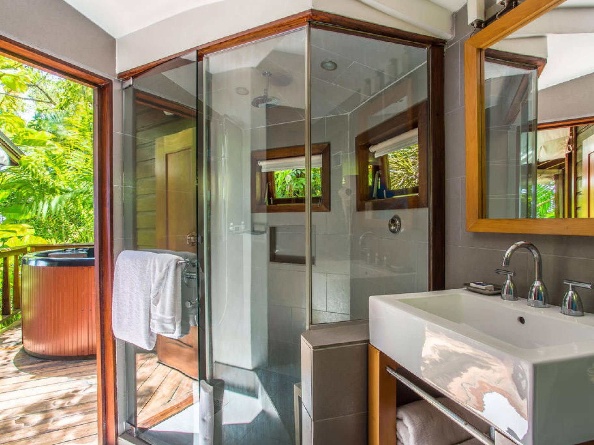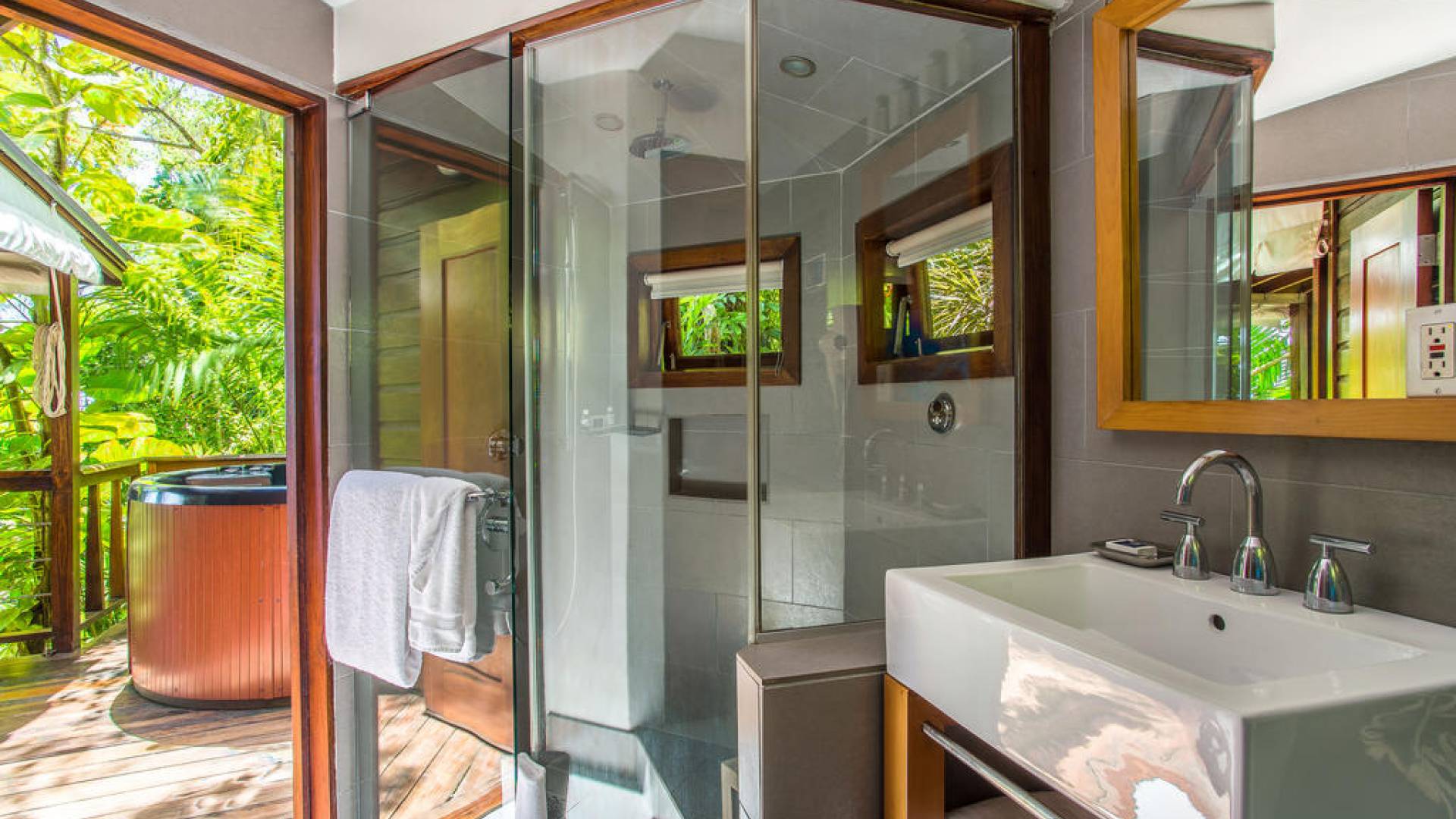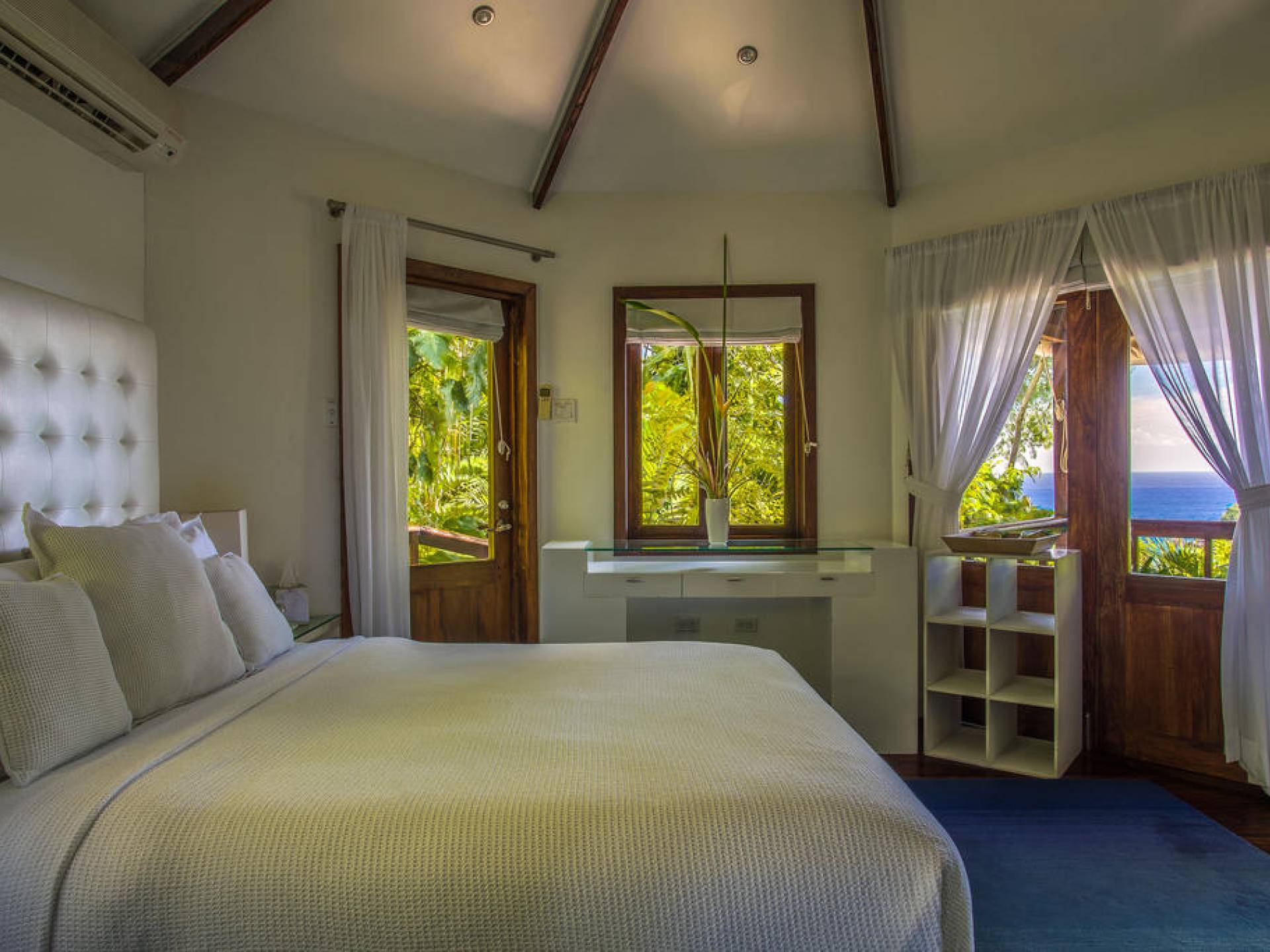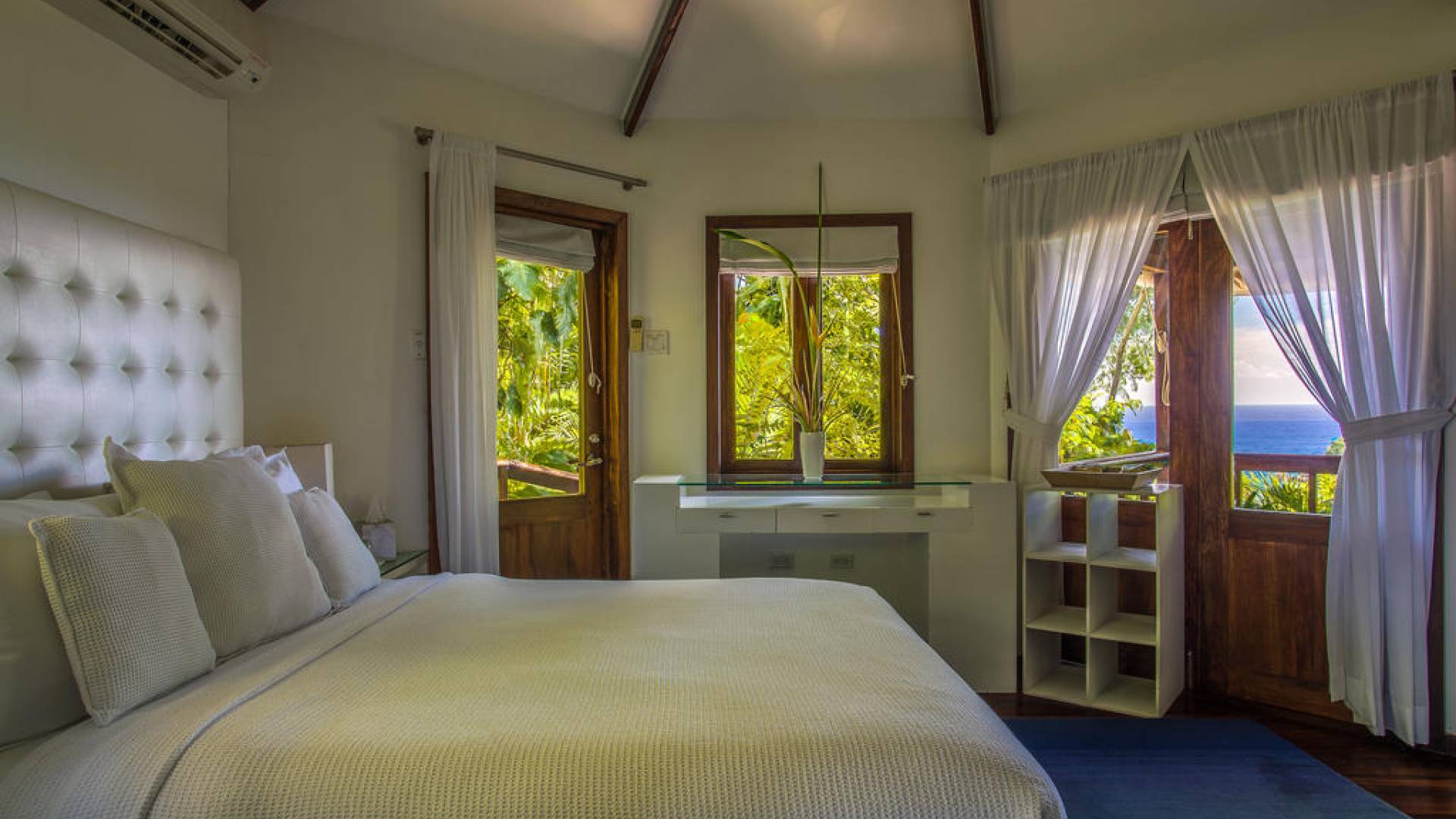 Souligné par sa forêt tropicale luxuriante, Mento est le nid ultime pour une escapade luxueuse. Cette cabine de luxe dispose également d'une salle de bain intérieure avec un hammam donnant sur un patio, dotée d'un jacuzzi et d'un hamac pour la détente du matin et du soir.Situé dans une niche privée, Mento fusionne toute l'intimité d'un refuge isolé. Les hauts plafonds et les draps blancs de la cabine créent une atmosphère de minimalisme élégant, complétée par une vue panoramique sur la forêt et la mer depuis la véranda prolongée.