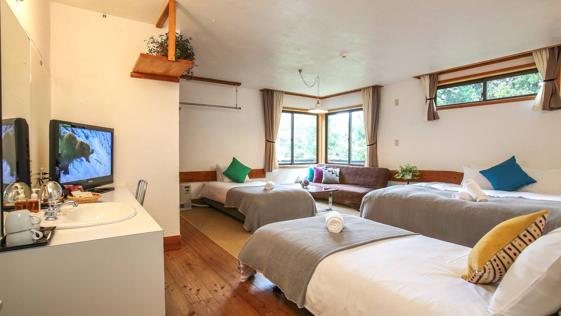 Lumineuse, moderne et propre, cette chambre est parfaite pour les familles et les groupes d'amis, pouvant accueillir confortablement jusqu'à cinq personnes sur quatre lits simples de style occidental et un canapé-lit. Les lits simples peuvent être configurés en un ou deux lits king pour répondre aux besoins des clients. La chambre est moderne et élégante, avec des couleurs naturelles et de hauts plafonds. Il dispose de beaucoup d'espace de rangement et offre de grandes robes intégrées ainsi que de nombreuses grandes fenêtres et de la lumière naturelle, créant beaucoup d'espace, d'ouverture et de légèreté. Les chambres disposent du chauffage à réglage individuel, de fenêtres à double vitrage et de rideaux occultants pour une bonne nuit de sommeil