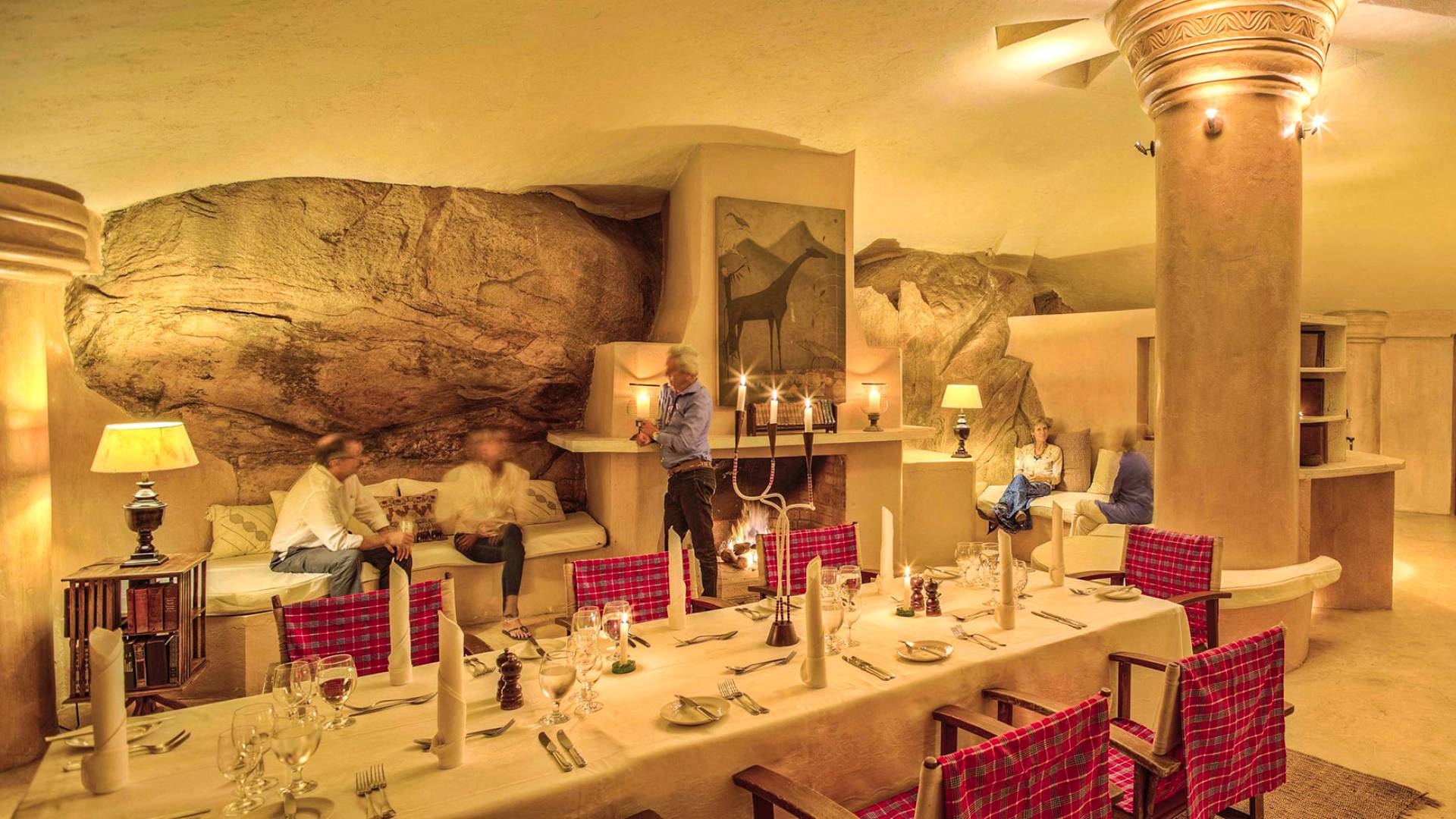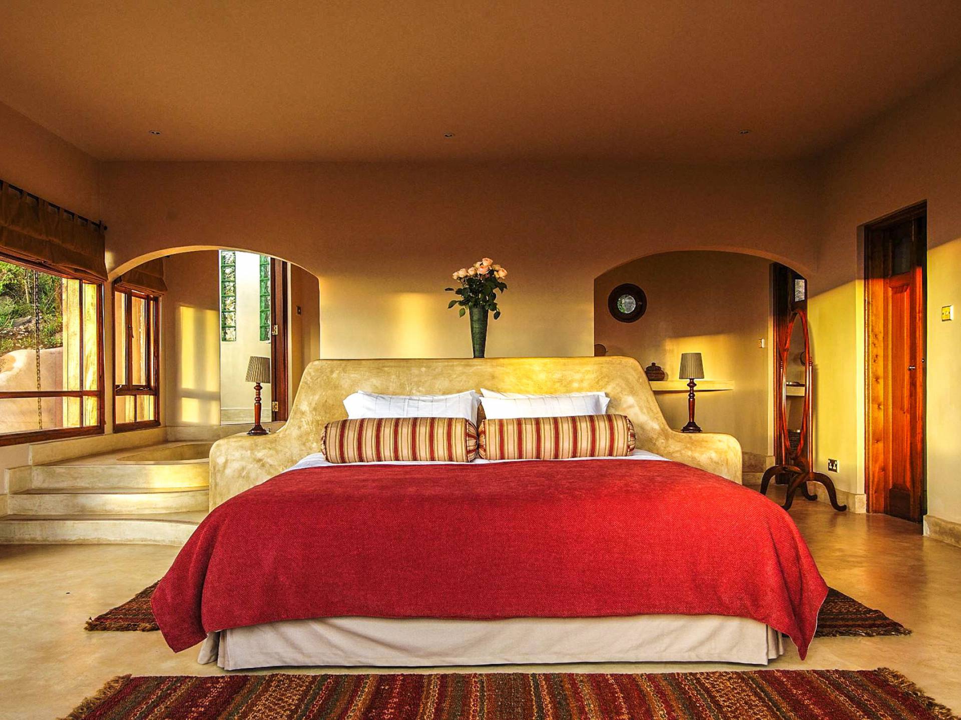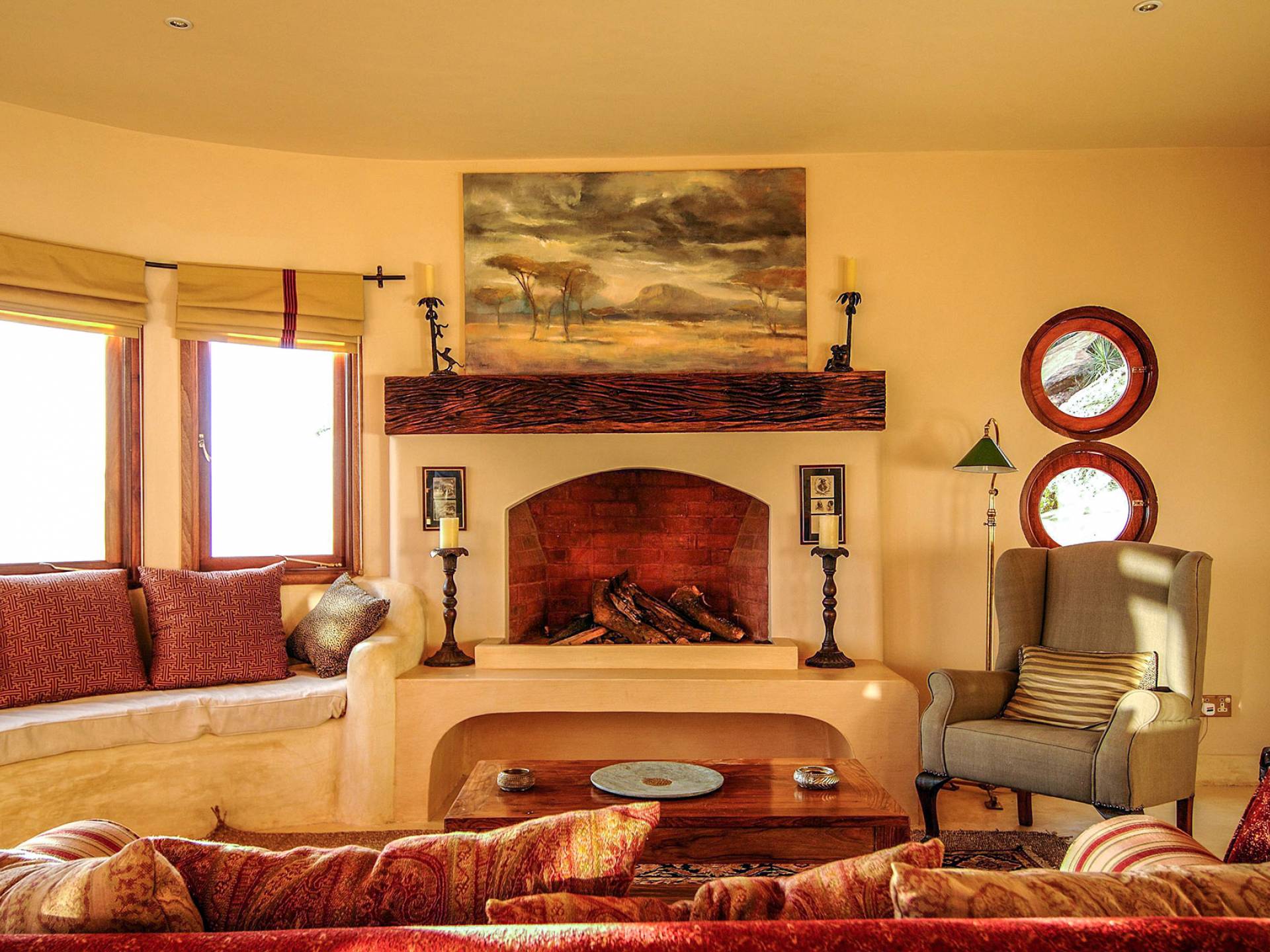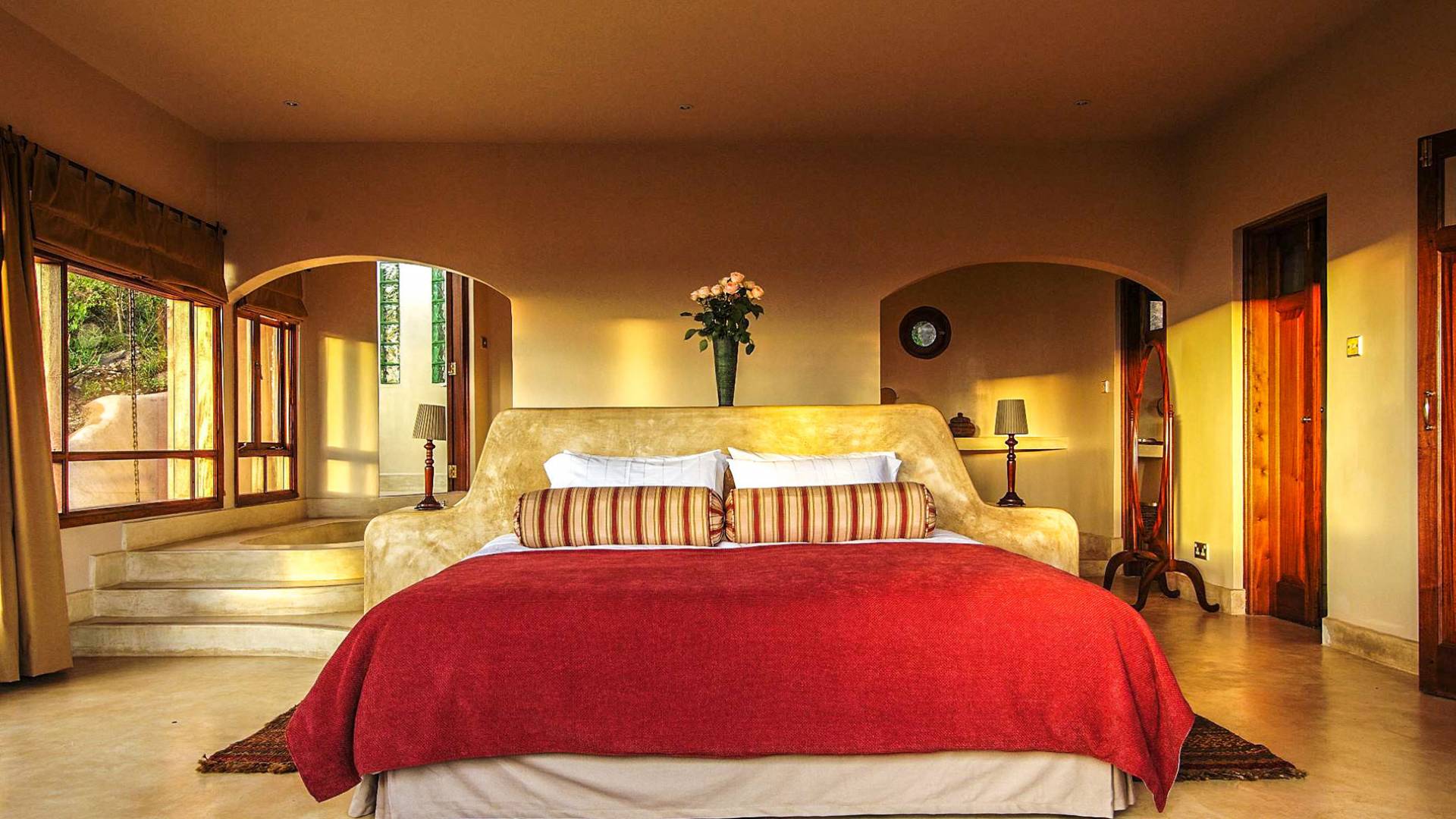 La maison du colonel est construite sur deux étages, il y a deux grandes chambres à l'étage supérieur où vous pouvez choisir un lit king ou des lits jumeaux. Les deux sont luxueusement confortables avec une literie délicieusement douce. Chacune des chambres dispose d'une grande terrasse privée, accessible par des portes à double vitrage pour profiter et absorber les vues panoramiques. Ils disposent également de vestiaires, de baignoires encastrées et d'une salle de douche sans toit. Dans le passage entre les chambres, il y a un bel exemple de vitrail Kitengela fait à la main. Un escalier majestueux mène au salon - un endroit idéal pour prendre un apéritif et raconter des histoires après le dîner. De l'autre côté de la cour se trouve la salle à manger décorée de cartes anciennes et où vous pourrez prendre des repas intimes ensemble. À l'extérieur, sur la grande terrasse, il y a un petit bassin profond pour se rafraîchir du soleil de midi.