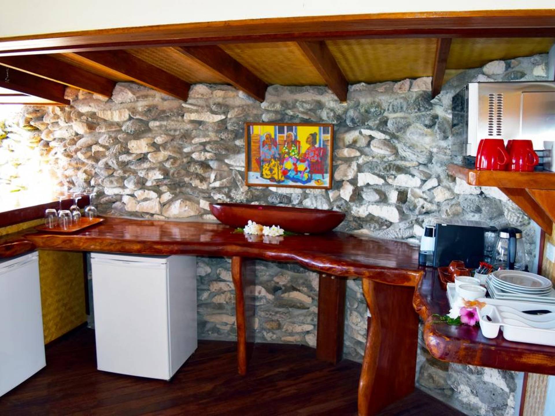 La Tamanu Beachfront Villa du Tamanu Beach Resort est peut-être le meilleur emplacement de TOUT Aitutaki. Gros appel je sais. Être sous le vent de l'île et avec des couchers de soleil incroyables sur le Pacifique et le cocotier classique penché sur le sable blanc - c'est difficile à battre! La villa dispose d'un lit super king-size surélevé avec vue sur le lagon d'Amuri et sur l'infini bleu du Pacifique. Imaginez-vous vous réveiller tous les jours. - l'image parfaite pour se réveiller. La villa dispose d'une kitchenette en plein air en plein air avec de superbes plans de travail en bois de tamanu (acajou local). Pour ceux qui souhaitent cuisiner leur propre mahimahi fraîchement pêché, je vous recommande de commander des salades et des accompagnements pour deux directement dans notre cuisine, puis de faire griller le mahimahi et de le servir à votre guise.