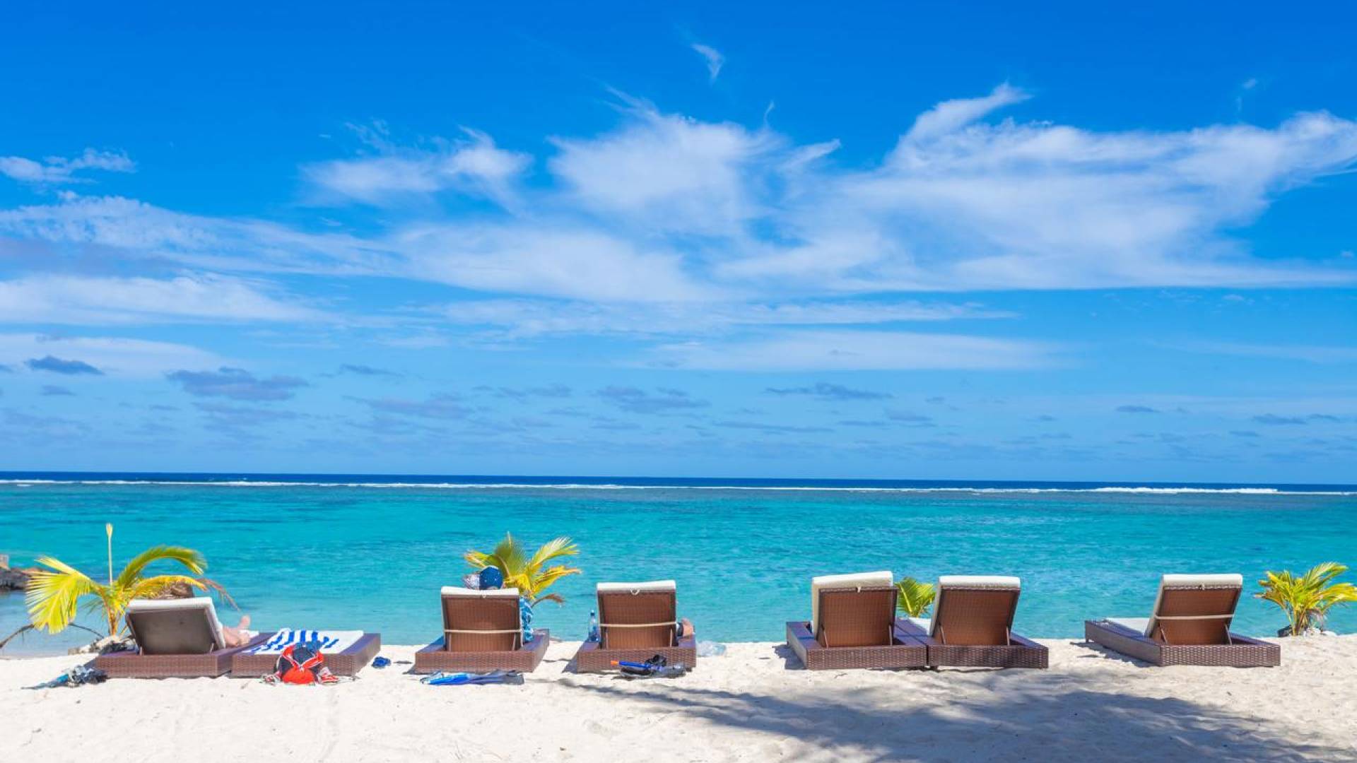 L'île volcanique de Rarotonga est l'île la plus peuplée des îles Cook, en Australie. L'île est entourée d'un lagon bleu saphir, qui s'étend souvent sur plus d'une centaine de mètres jusqu'au récif orange, puis s'incline fortement vers les eaux profondes. Il ne faut que 45 minutes pour parcourir toute l'île. Le lagon de Rarotonga est bordé de plages de sable blanc étincelantes.