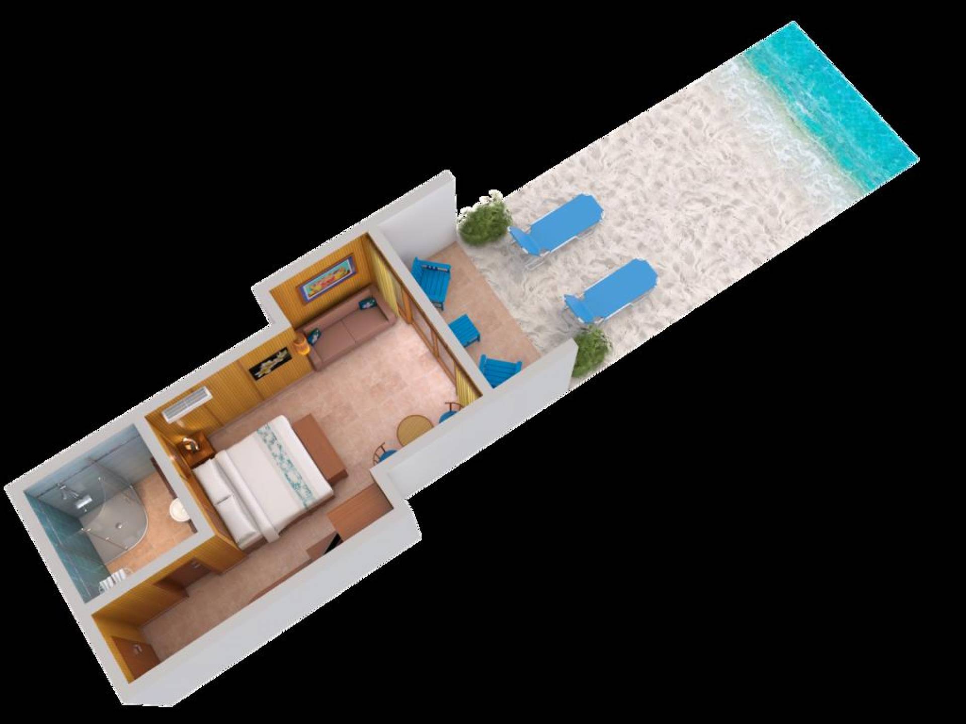 Ce sont des suites élégantes et époustouflantes, dotées de toits de chaume de style insulaire et d'un emplacement absolu en bord de mer. Les suites Beachfront sont situées soit directement sur le sable au rez-de-chaussée, soit à un niveau supérieur avec un haut plafond en bois à pignon et une vue plus plongeante sur la plage d'Aroa et le lagon. Lequel est le meilleur dépend entièrement de vos préférences personnelles ! S'il vous plaît demander au rez-de-chaussée ou au niveau un au moment de la réservation. Veuillez noter que nous avons une paire (c'est-à-dire deux suites) de suites en bord de mer au rez-de-chaussée qui communiquent par une porte intérieure insonorisée. Ceux-ci sont disponibles sur demande et sous réserve de disponibilité.