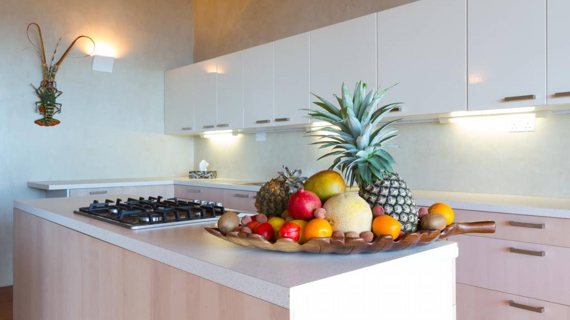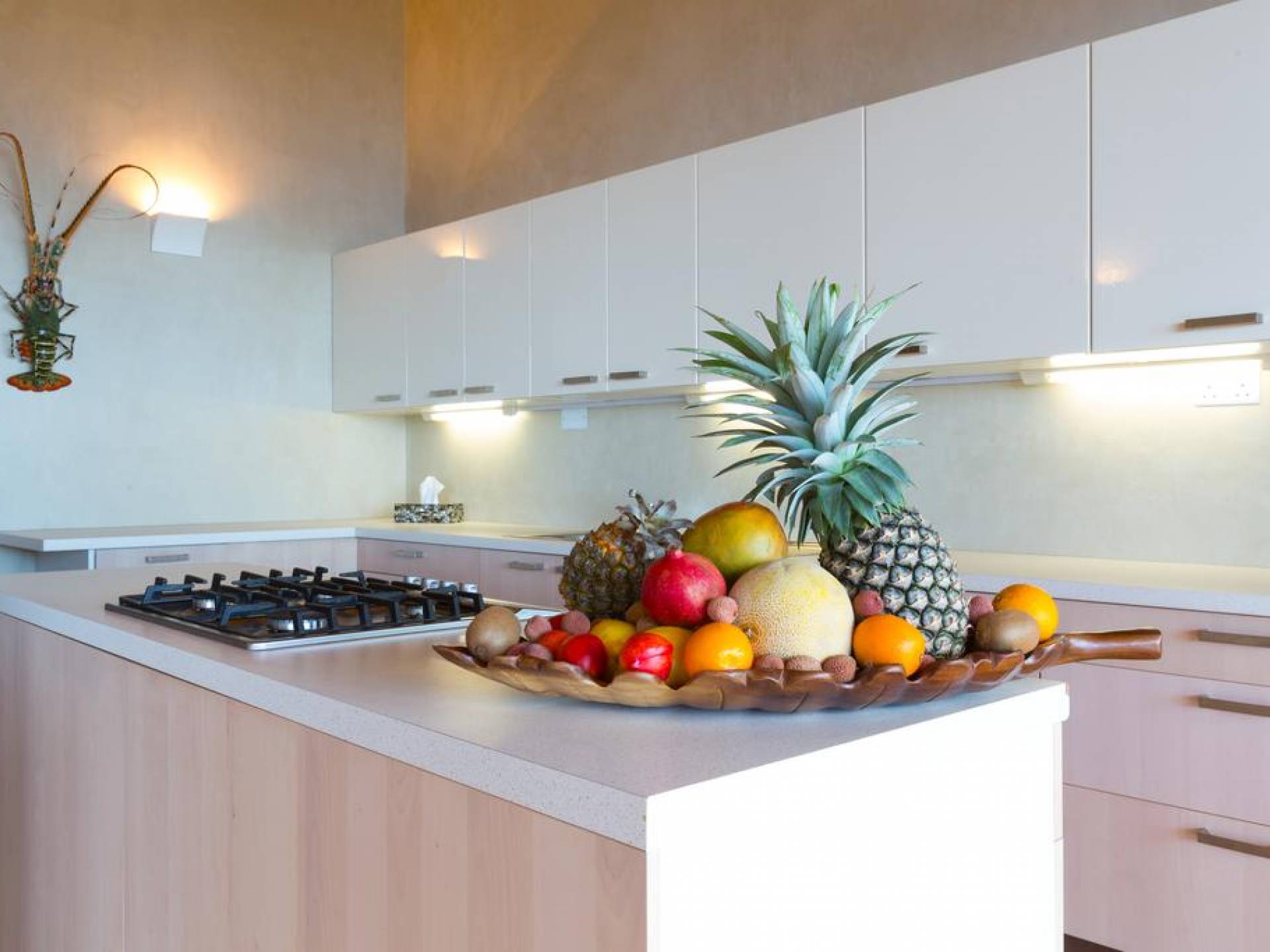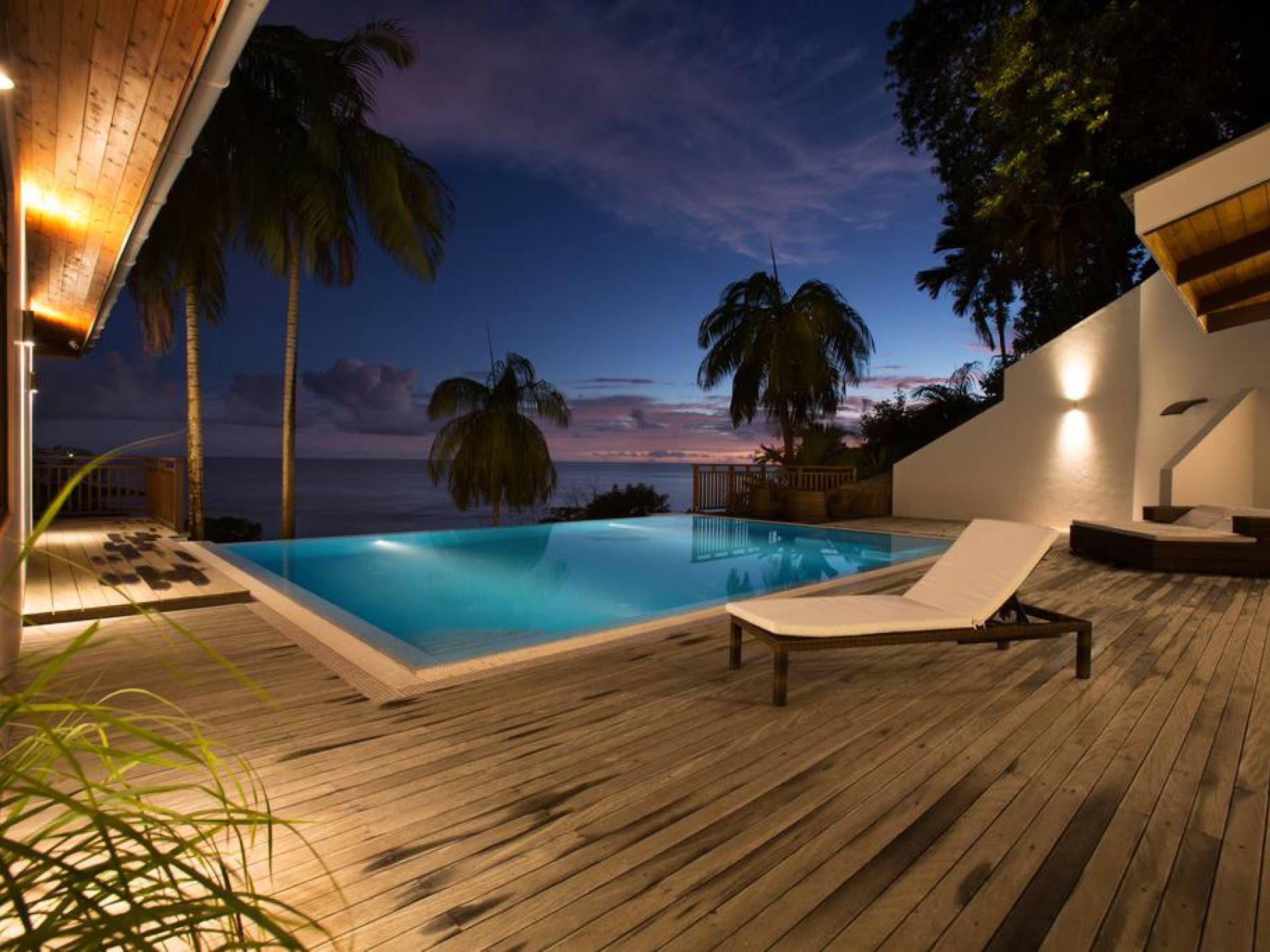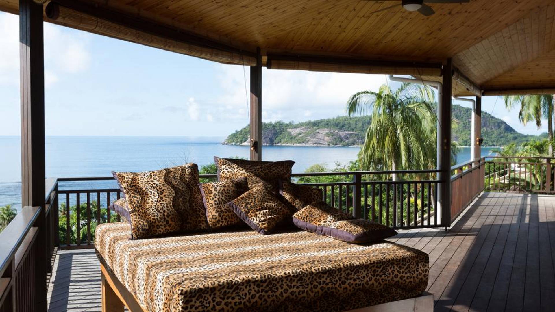Une terrasse spacieuse avec des banquettes-lits et des sièges en rotin offrant une vue spectaculaire sur l'océan. La villa Queen a sa propre piscine à débordement. La piscine dispose d'une cuisine extérieure avec un minibar. Les délicieux plats seront préparés par un Chef privé qui est à votre entière disposition.