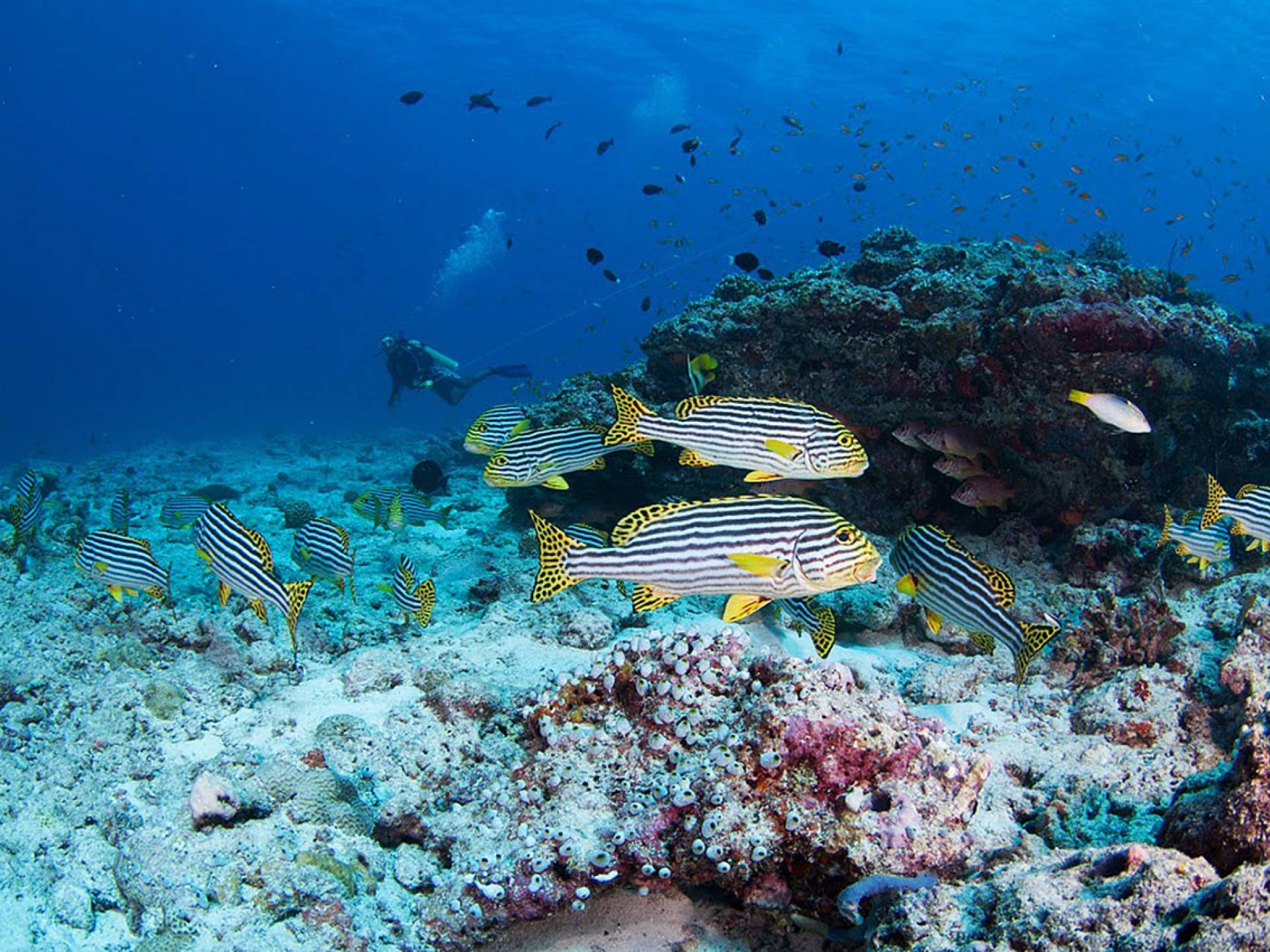 L'atoll de Dhaalu est l'un des atolls des Maldives et s'étend sur 23 km d'est en ouest et 38 km du nord au sud. Sur un total de 56 îles de l'atoll, sept d'entre elles sont habitées, avec une population totale d'environ 6694. L'île capitale est Kudahuvadhoo, située à la pointe sud de l'atoll. Dans l'atoll de Dhaalu, vous pouvez suivre un cours de plongée et parcourir les eaux cristallines pour explorer les riches fonds marins regorgeant de…L'atoll de Dhaalu est l'un des atolls des Maldives et s'étend sur 23 km d'est en ouest et 38 km du nord au sud. Sur un total de 56 îles de l'atoll, sept d'entre elles sont habitées, avec une population totale d'environ 6694. L'île capitale est Kudahuvadhoo, située à la pointe sud de l'atoll. Dans l'atoll de Dhaalu, vous pouvez suivre un cours de plongée et parcourir les eaux cristallines pour explorer les riches fonds marins regorgeant de…