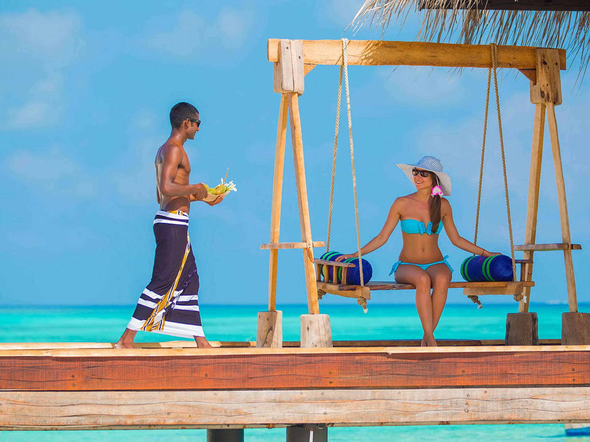 Ce sont des bungalows individuels conçus avec un style architectural traditionnel maldivien. Le bois de noix de coco et d'autres matériaux en bois locaux utilisés dans la construction apportent à l'architecture maldivienne locale sa véritable gloire. Ces chambres sont une version modernisée d'une maison traditionnelle maldivienne. Le nom "Gothi" dans la langue locale signifie un terrain avec une maison. Chaque chambre dispose d'une véranda extérieure privée avec une balançoire locale, quelque chose que l'on voit rarement dans n'importe quel complexe. Pour assurer une intimité maximale, chaque Goathi a une clôture de chaque côté en chaume de noix de coco. La cour avant en plein air à l'extérieur de la chambre dispose d'un espace de repos séparé avec des chaises et une table où vous pouvez prendre un repas privé, siroter un verre ou lire un livre dans le plein confort d'une intimité totale. De même, les meubles et autres éléments ressemblent également à la véritable architecture maldivienne. Les portes sont conçues pour ressembler au style traditionnel maldivien des boiseries et de la menuiserie utilisé dans le passé.