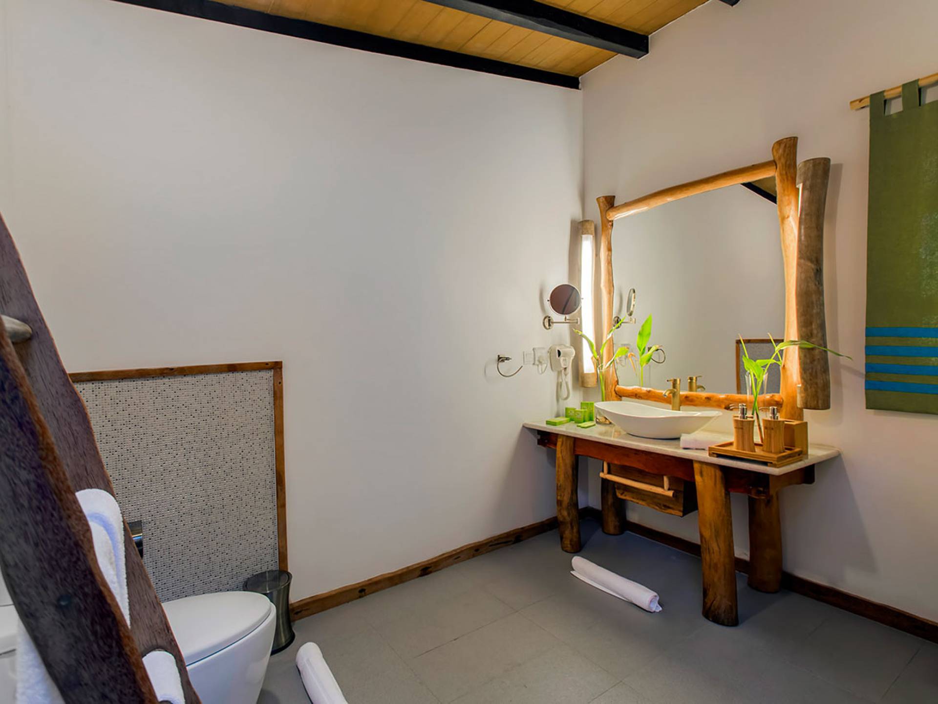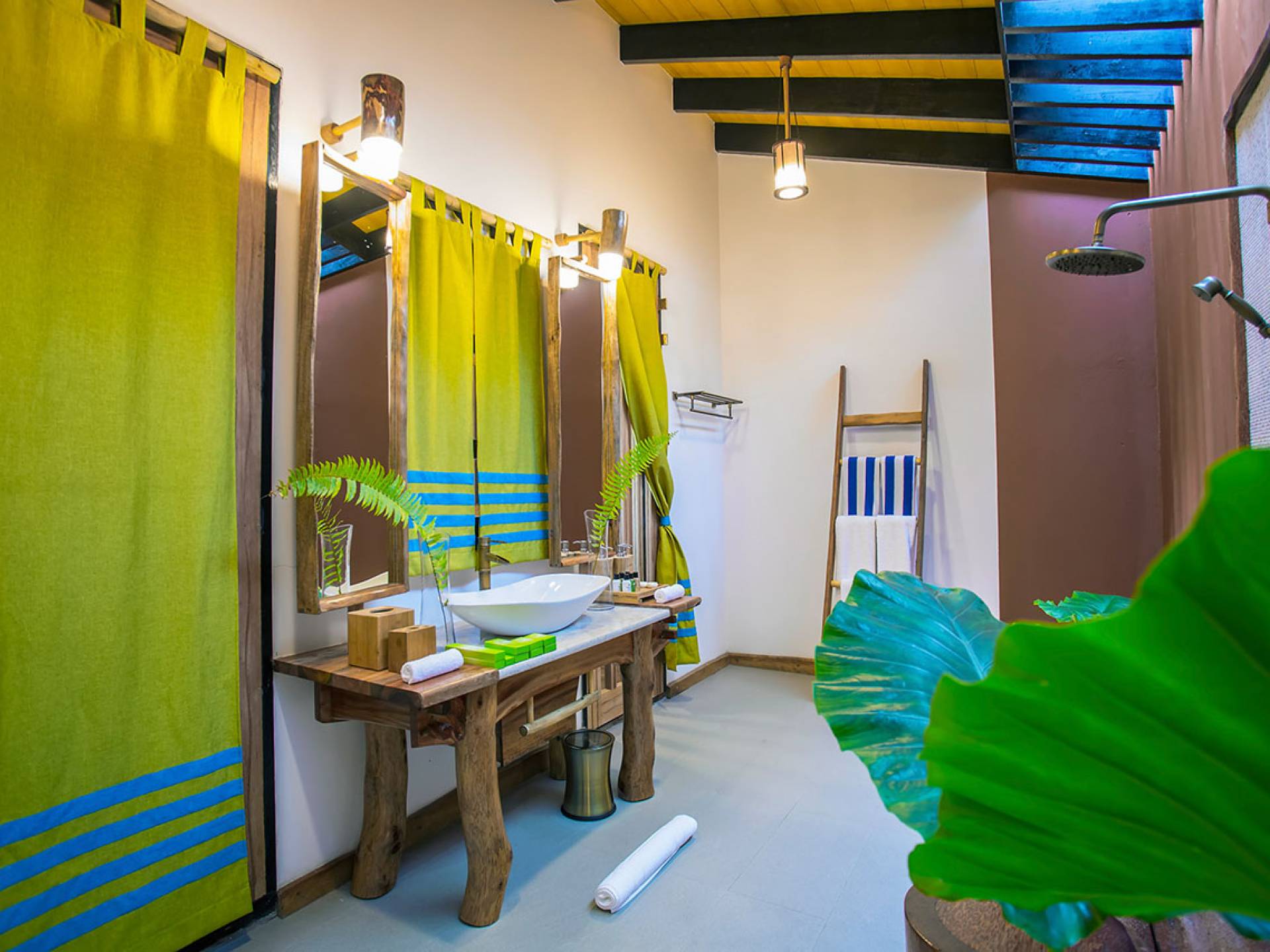 Deux grandes chambres familiales spacieuses sont disponibles avec une grande terrasse extérieure pour la famille. Ces chambres sont également communicantes si nécessaire. Cela offre la possibilité aux familles nombreuses qui souhaitent rester ensemble. Avec un style moderne plus contemporain, les intérieurs des chambres sont plus spacieux - avec un espace douche extérieur. Les environs sont clôturés avec des arbres pour donner un maximum d'intimité. Ces chambres disposent également d'une balançoire locale privée fabriquée à partir des meilleurs bois locaux, dont la plupart provenaient des arbres de l'île elle-même. Kotari Kolhu est une affaire pour ceux qui voyagent avec des familles ou qui veulent plus d'espace à l'intérieur de la chambre. Il y a des toilettes et une salle de bain semi-ouvertes avec un espace spacieux pour que toute la famille puisse utiliser les équipements à l'intérieur.