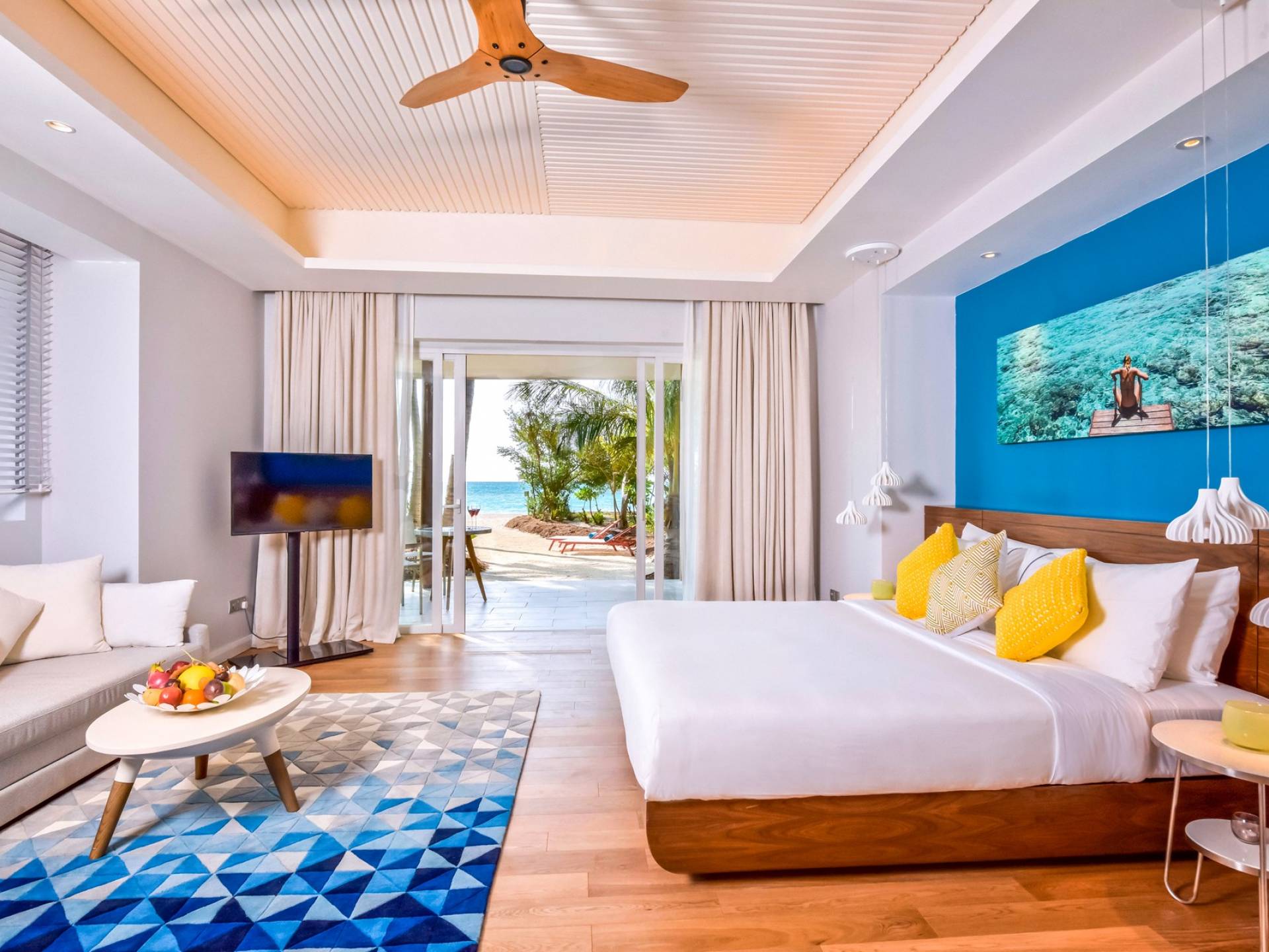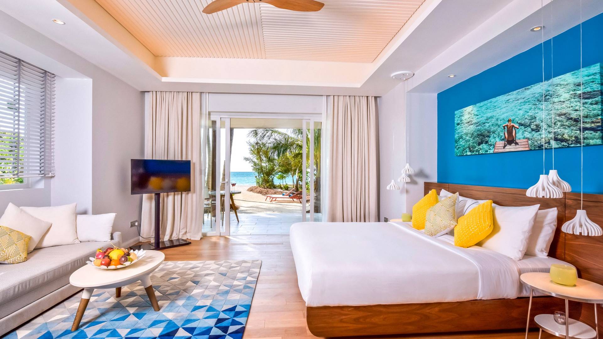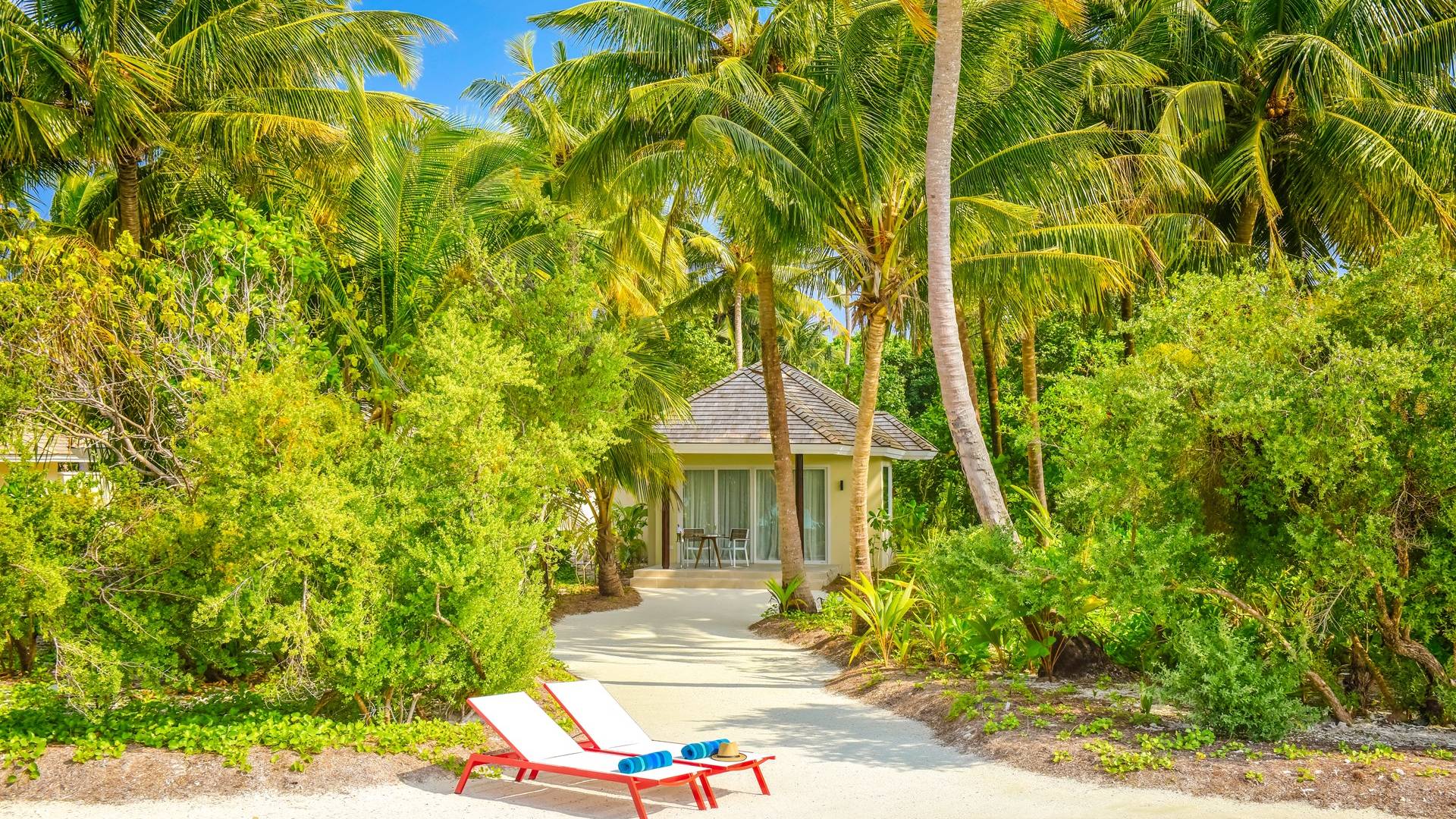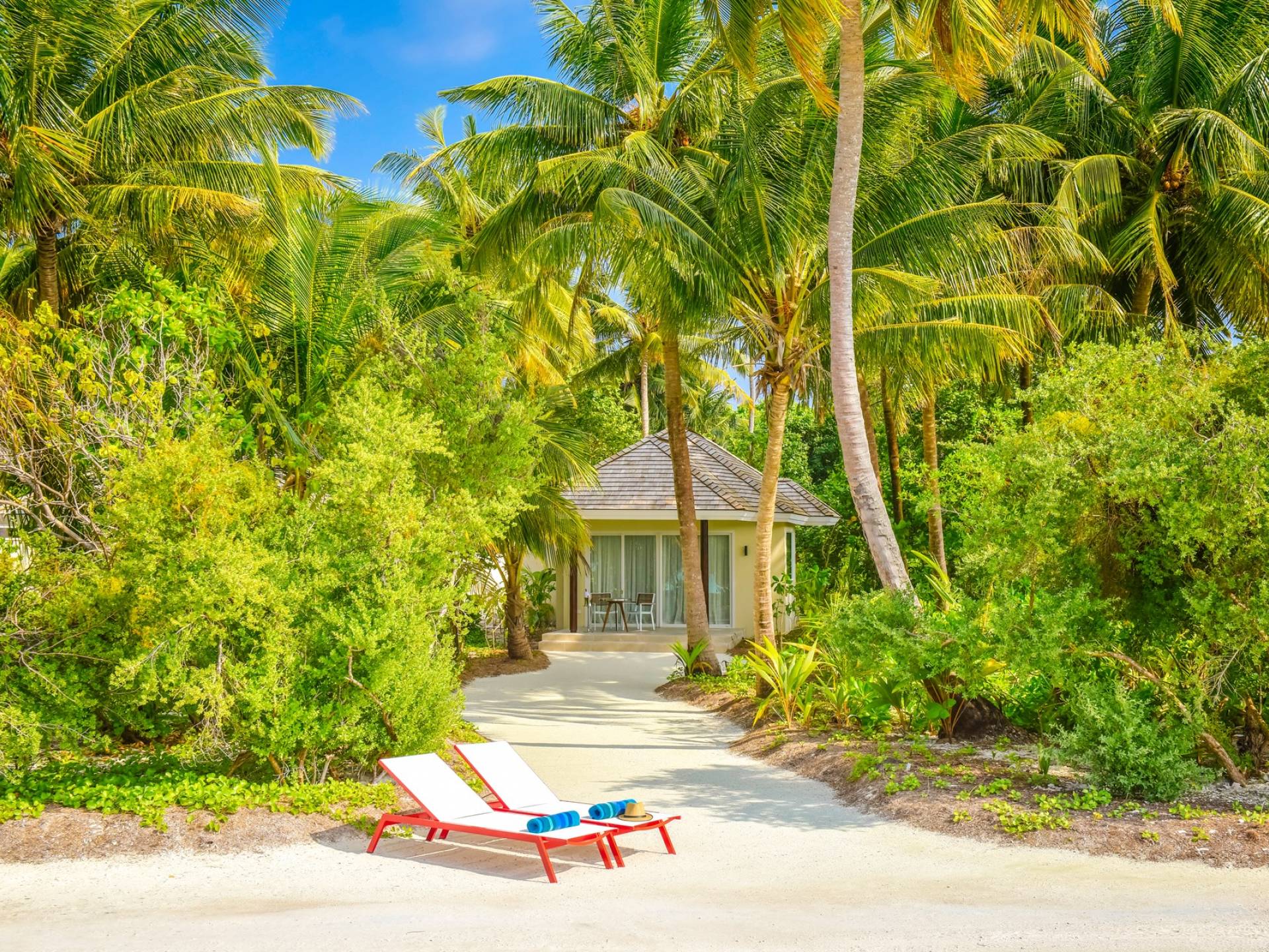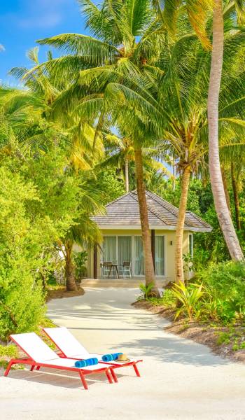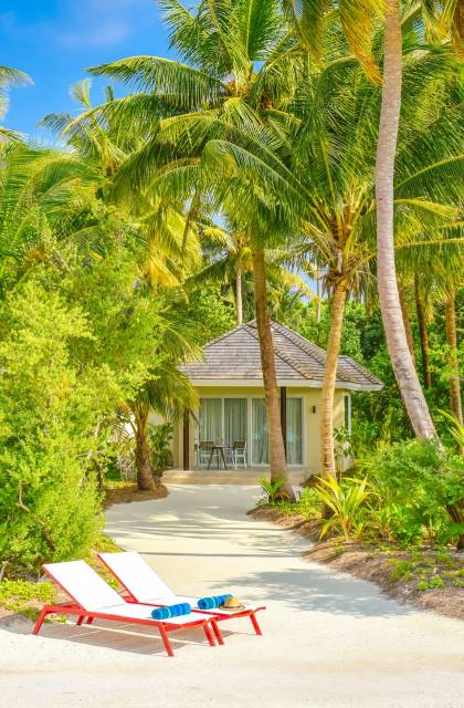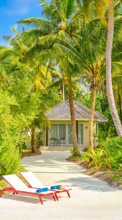 Situées sur le front de mer, ces villas spacieuses sont parfaites pour profiter de la sensation de sable. Ces villas font face au lagon cristallin de l'île et disposent d'un lit king-size, d'un canapé-lit, de terrasses en bois à l'avant avec des chaises longues et de leur propre jacuzzi.