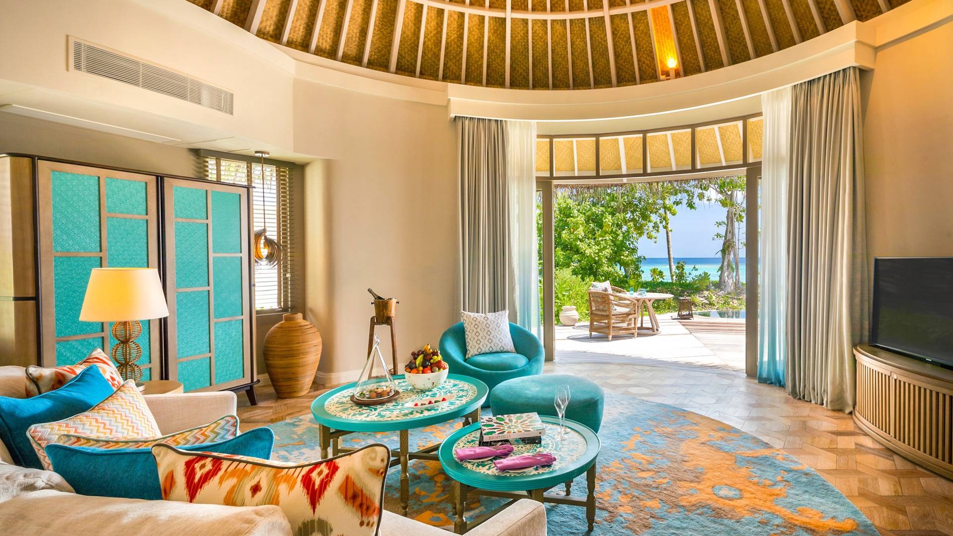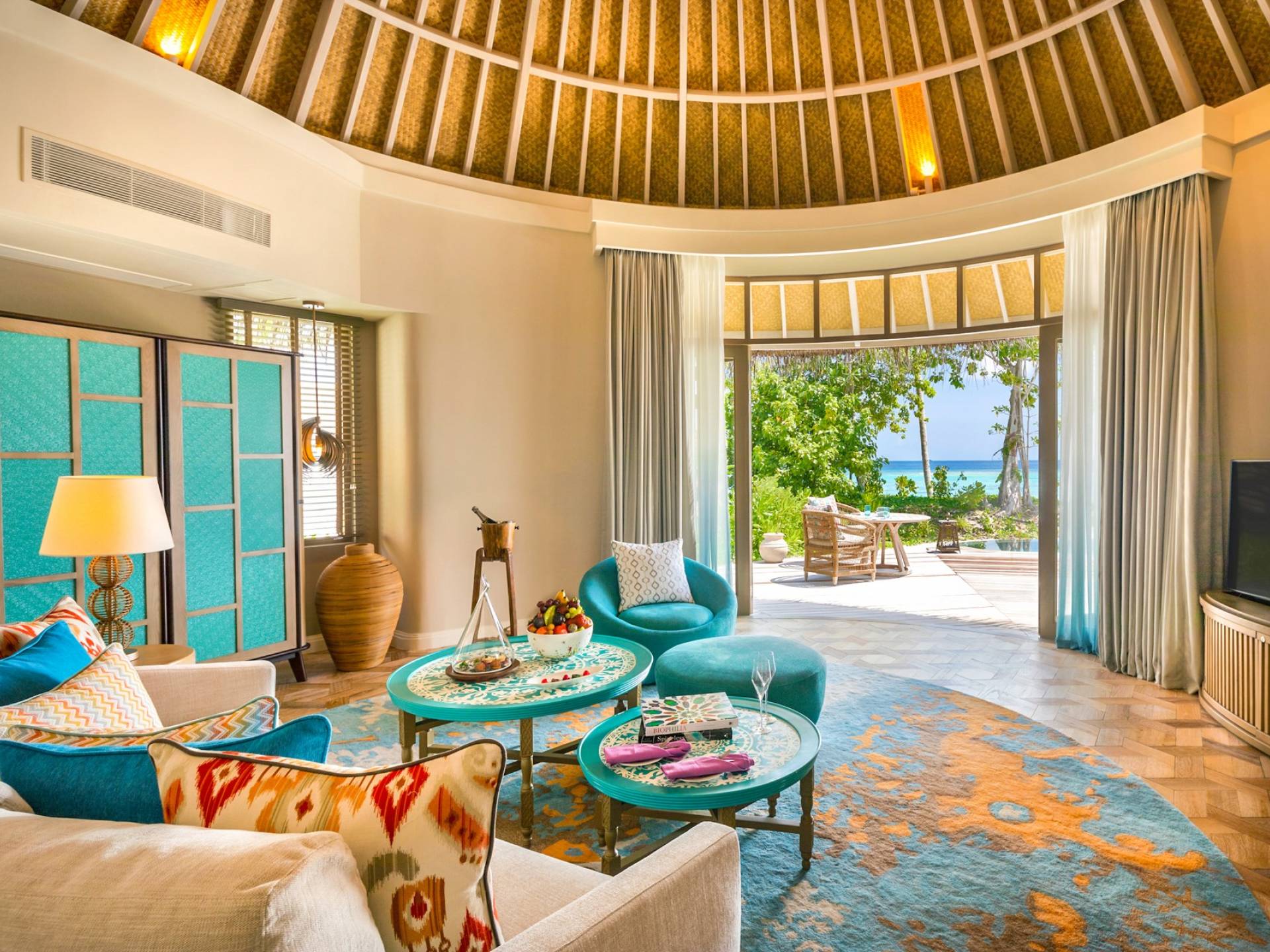 Ligne élégante de Beach House sur des rivages argentés, à quelques pas de la mer. Beach House dispose d'une chambre ovale et d'un salon attenant qui s'ouvre sur une large terrasse privée, abritée par des jardins bien entretenus, surplombant la plage.