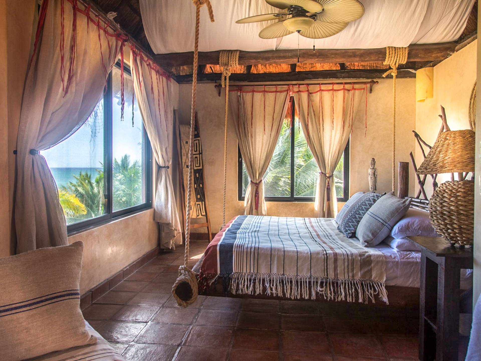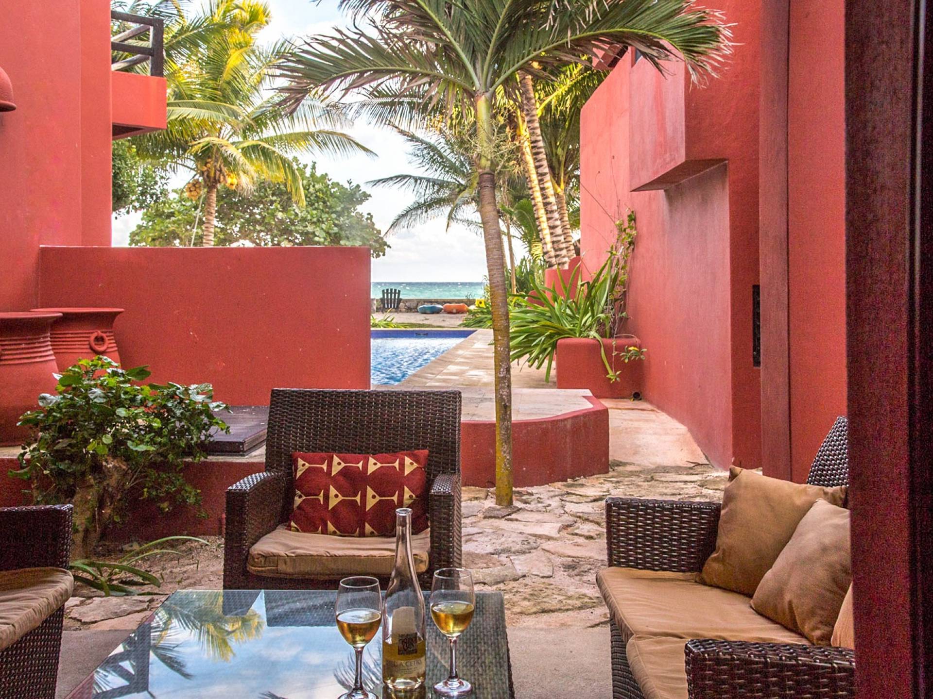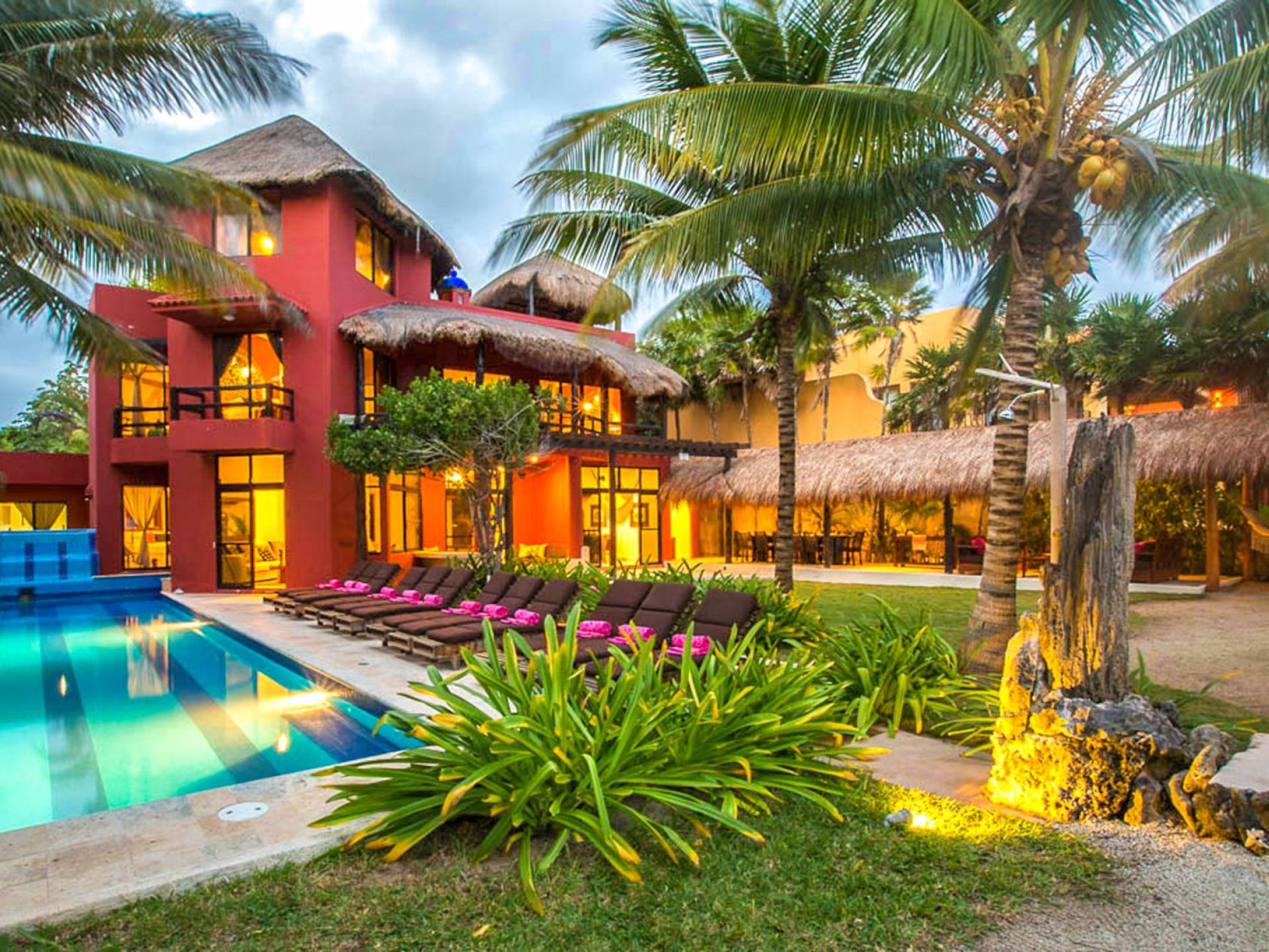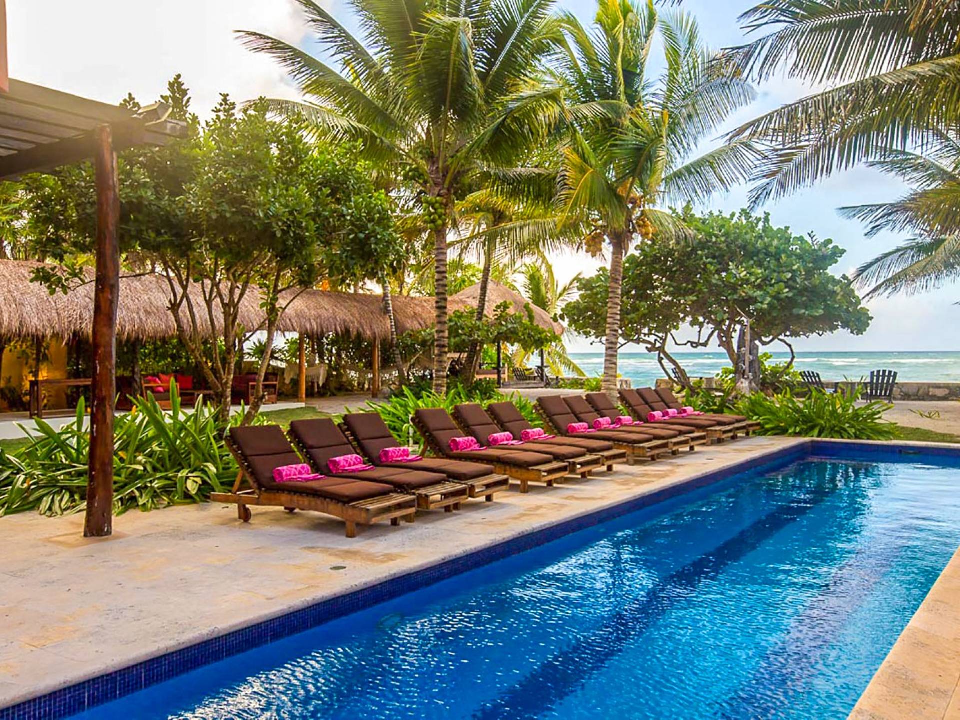 La piscine, la terrasse ensoleillée, la plage et la mer vous invitent au soleil, au bronzage et aux incroyables activités de plein air de la Riviera Maya. Faites des longueurs ou jouez avec votre famille et vos amis dans la piscine. Sortez les deux kayaks de mer doubles et un simple pour une sortie calme au-dessus du récif de corail - gratuit pour nos clients. Des planches à pagaie sont disponibles moyennant un petit supplément. Huit chambres luxueuses sont toutes climatisées, chacune avec sa salle de bain attenante et son balcon privé - sept avec une vue directe sur la mer des Caraïbes. Il y a six chambres dans la villa principale - une au premier niveau, quatre au deuxième étage et une suite penthouse. Deux chambres supplémentaires sont des pièces d'entrée privées indépendantes dans le domaine clos.